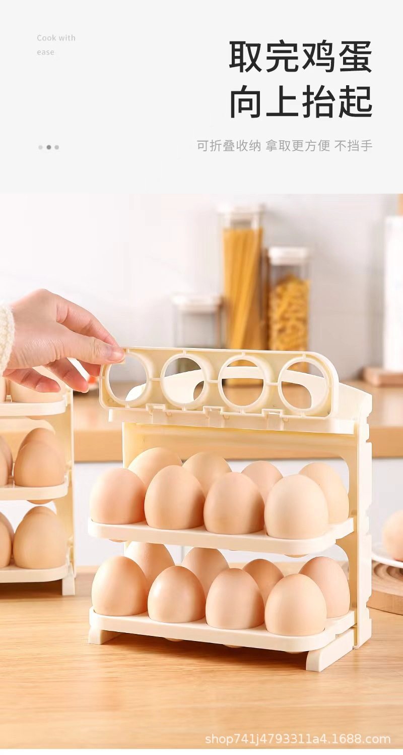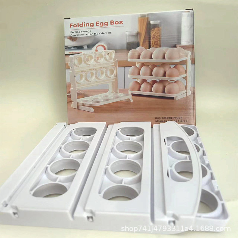 Folding Egg Carton Refrigerator Side Door Storage Rack Kitchen-Specific Egg Tray Multi-Layer Anti-Fall Egg Storage Rack for Home Use
