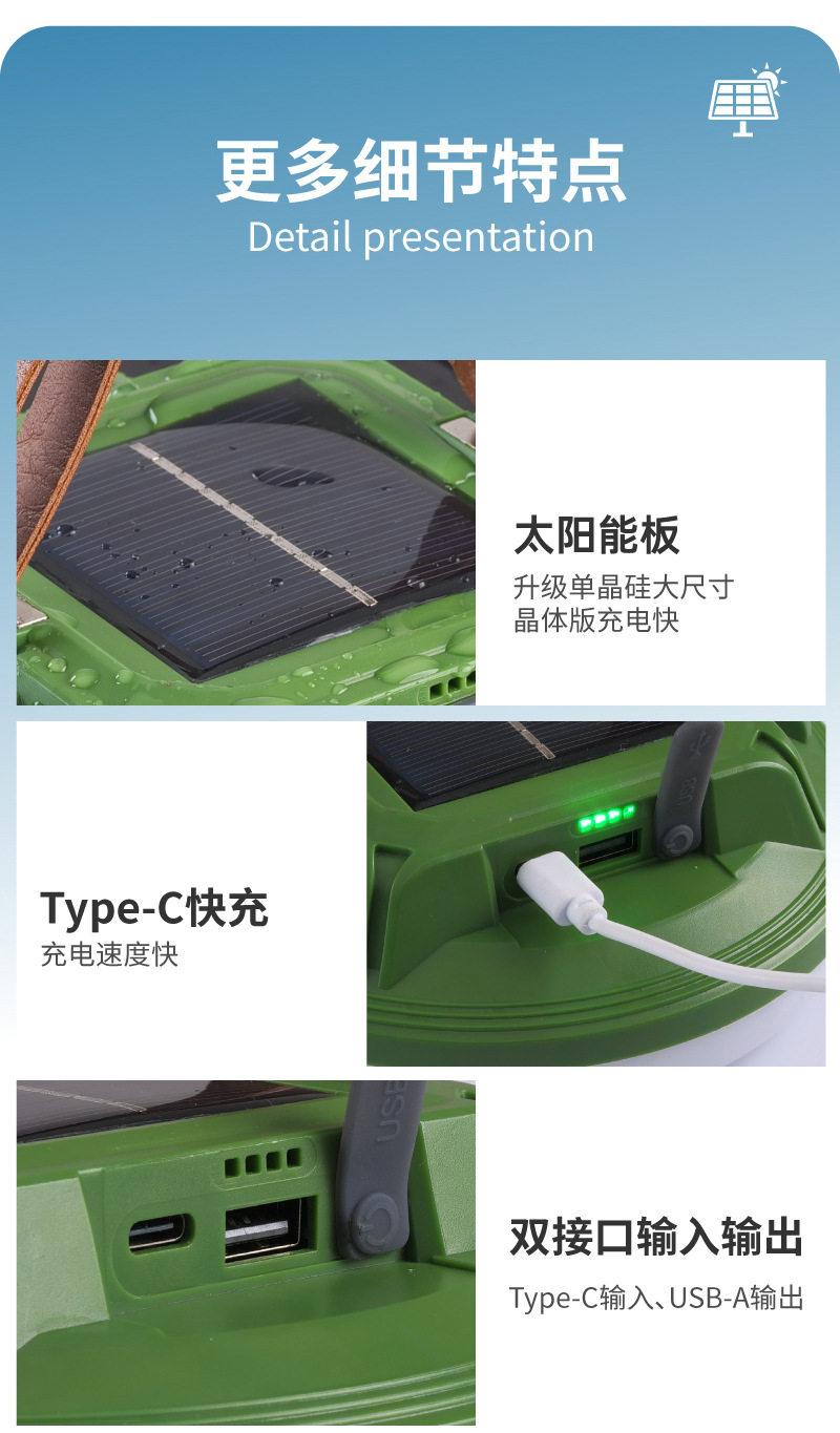 Cross-Border Multifunctional Solar Portable Lamp Lanyard Camping Lamp Waterproof Solar Flying Saucer Lamp Led Camping Lamp