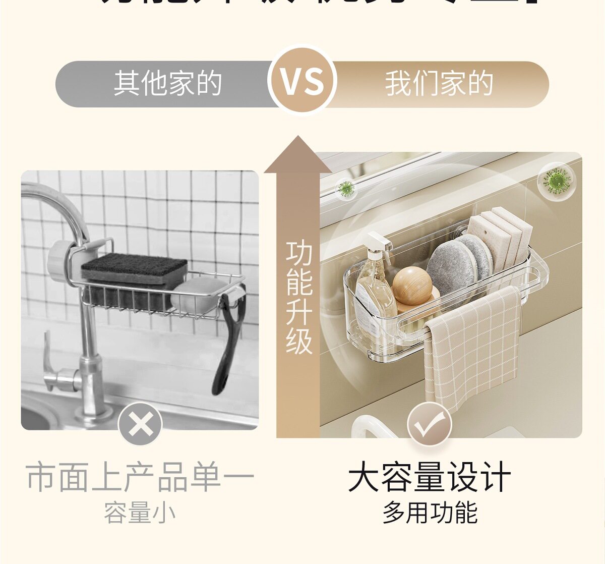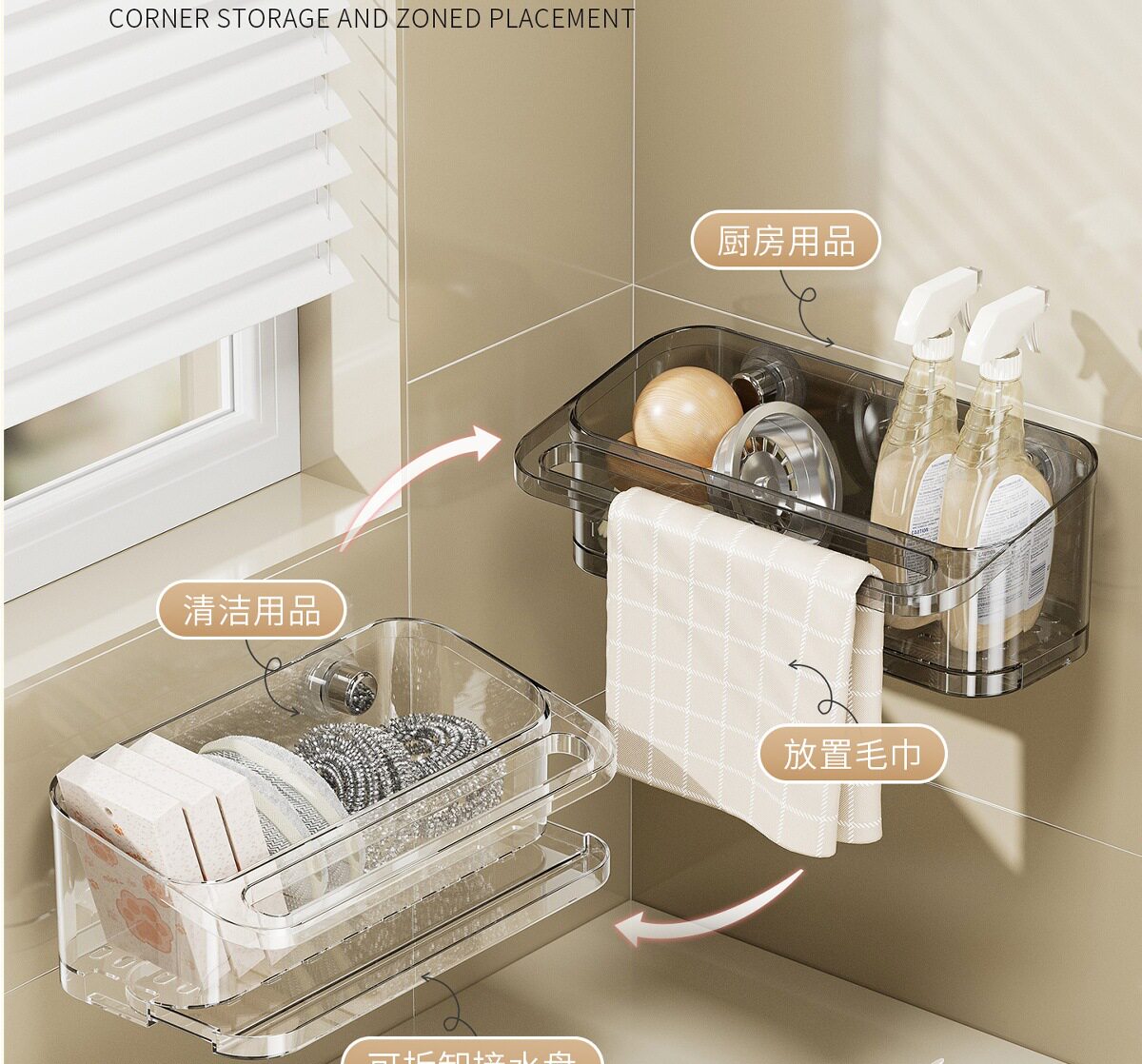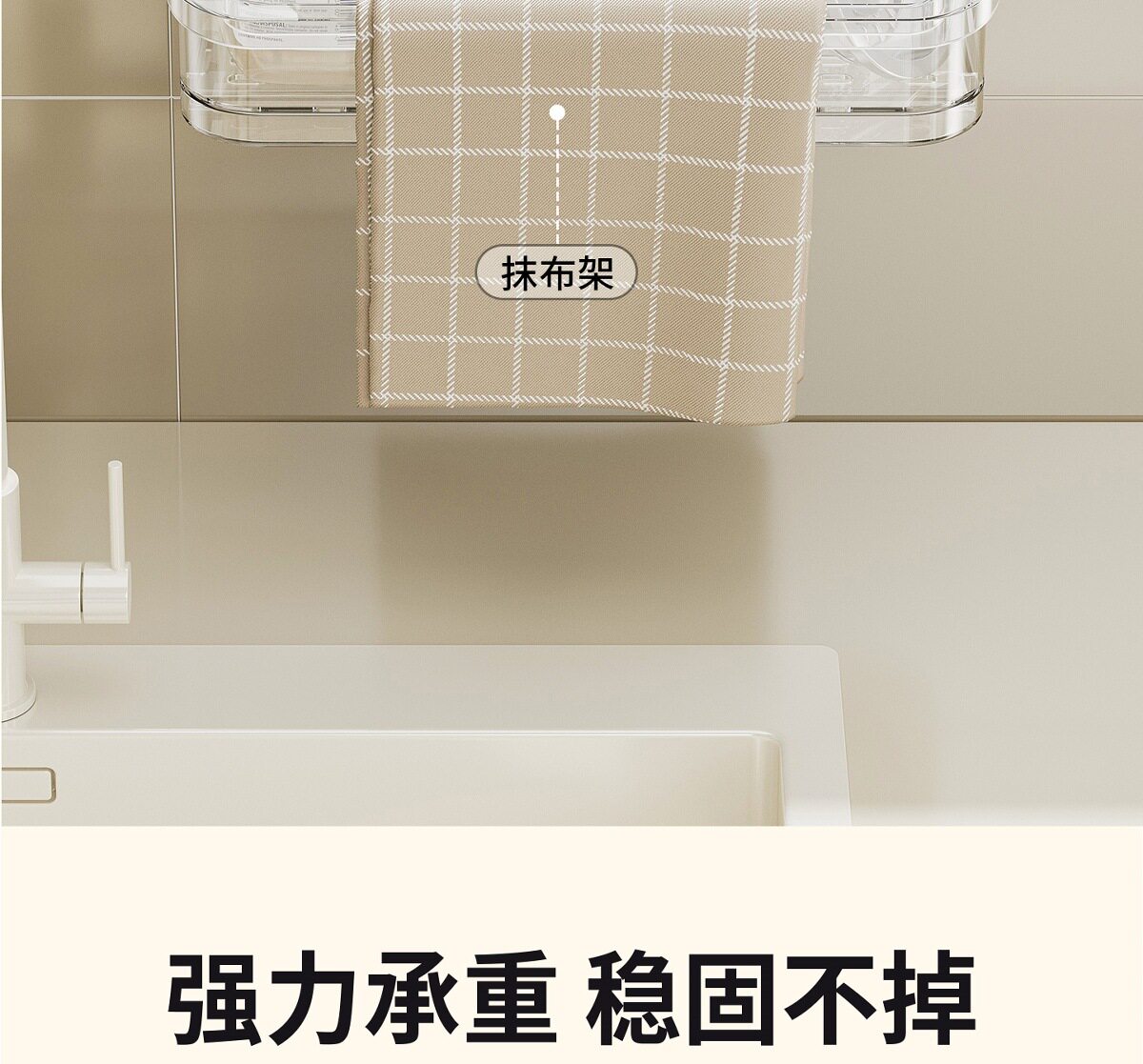 Suction Cup Kitchen Rack Rack Drain Hole-free Sink with Hanging Rod Multifunctional Dishwashing Sponge Storage Artifact