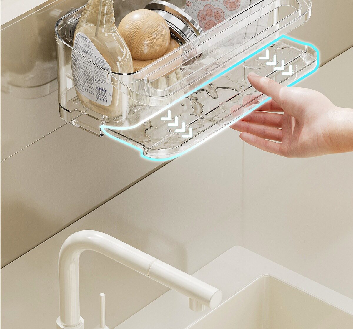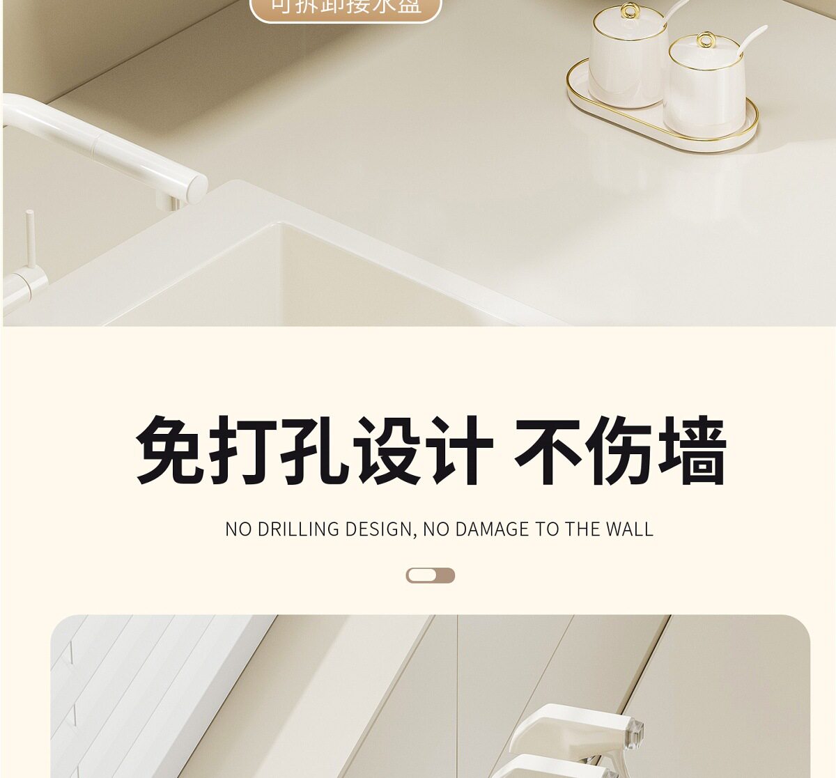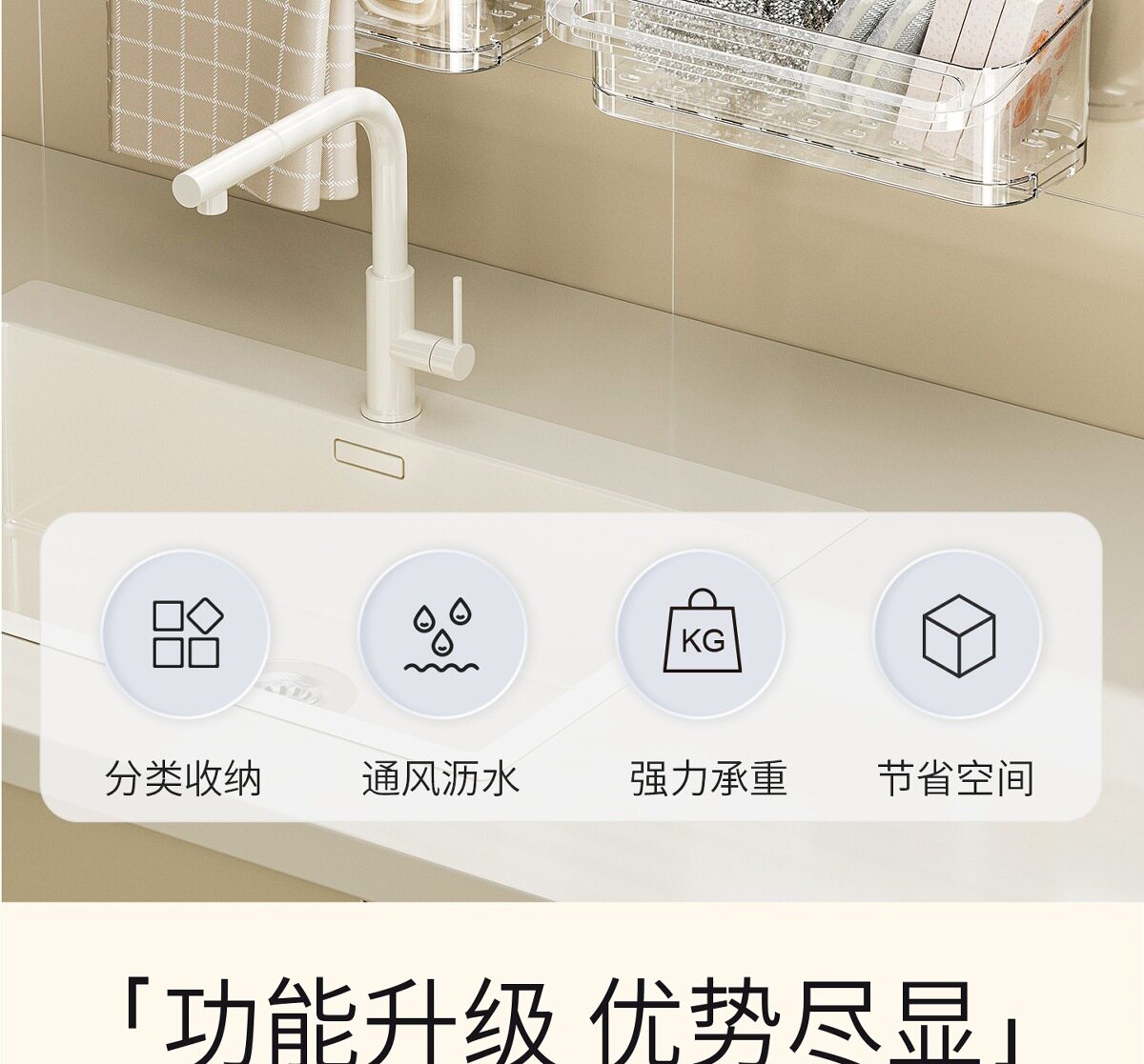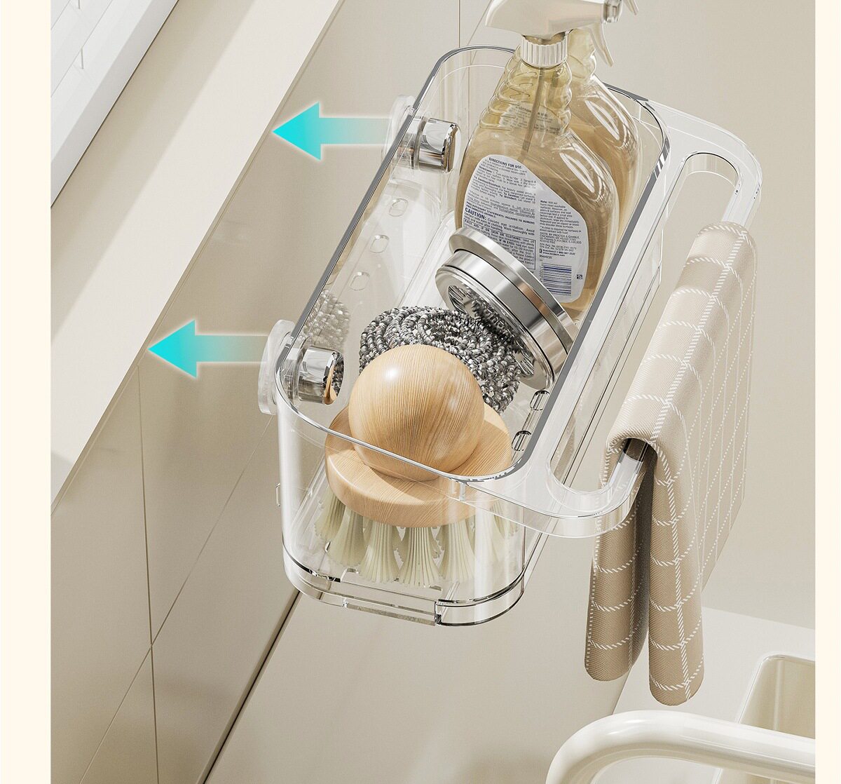Suction Cup Kitchen Rack Rack Drain Hole-free Sink with Hanging Rod Multifunctional Dishwashing Sponge Storage Artifact