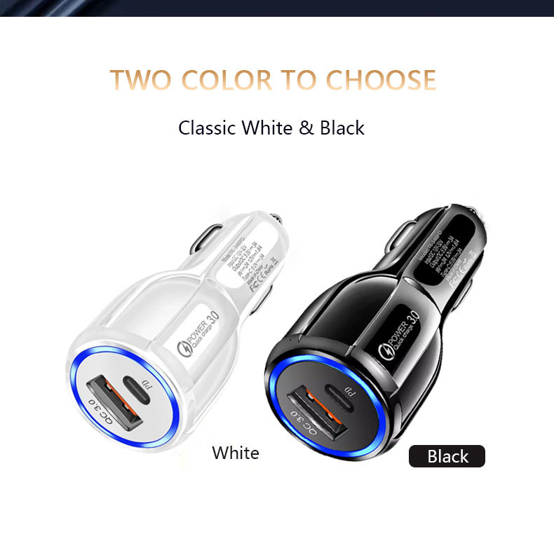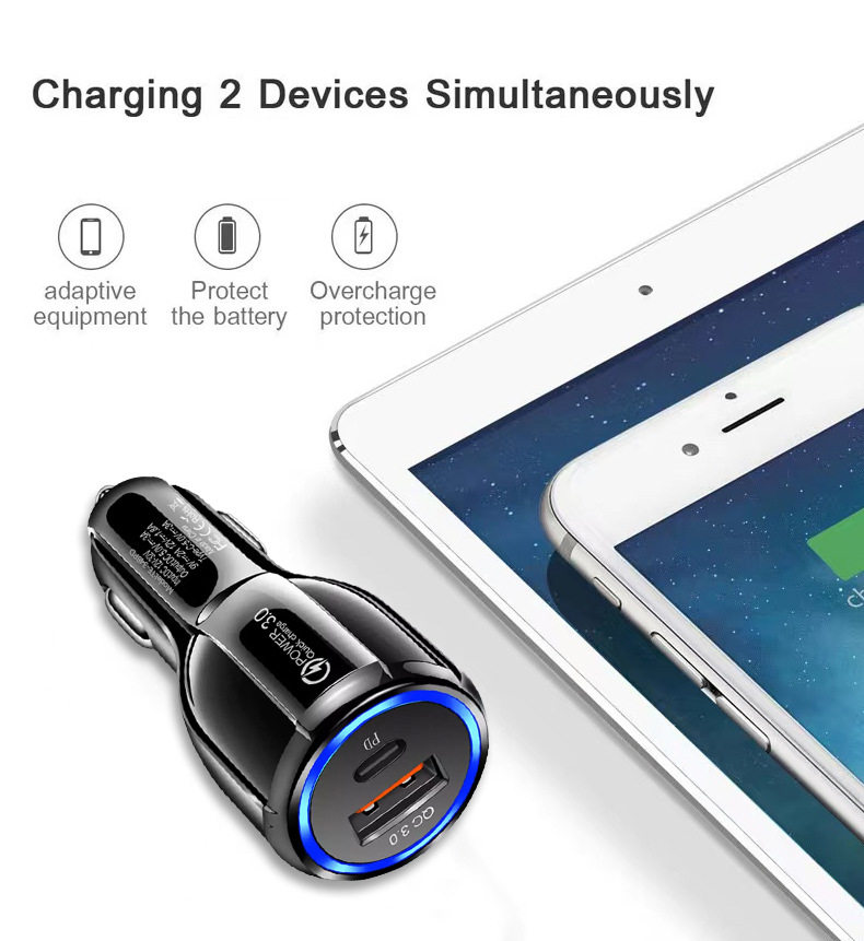 Car Charger Mobile Phone Fast Charging Head Qc3.0+Pd Car Converter Car Charger Fast Charging One to Two Cross-Border New Model