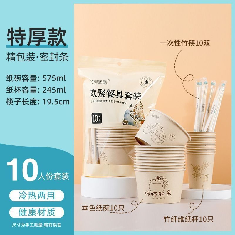 Penguin Tuan Tuan disposable bowl chopsticks portable disposable paper cup paper bowl chopsticks 10 person camping meal