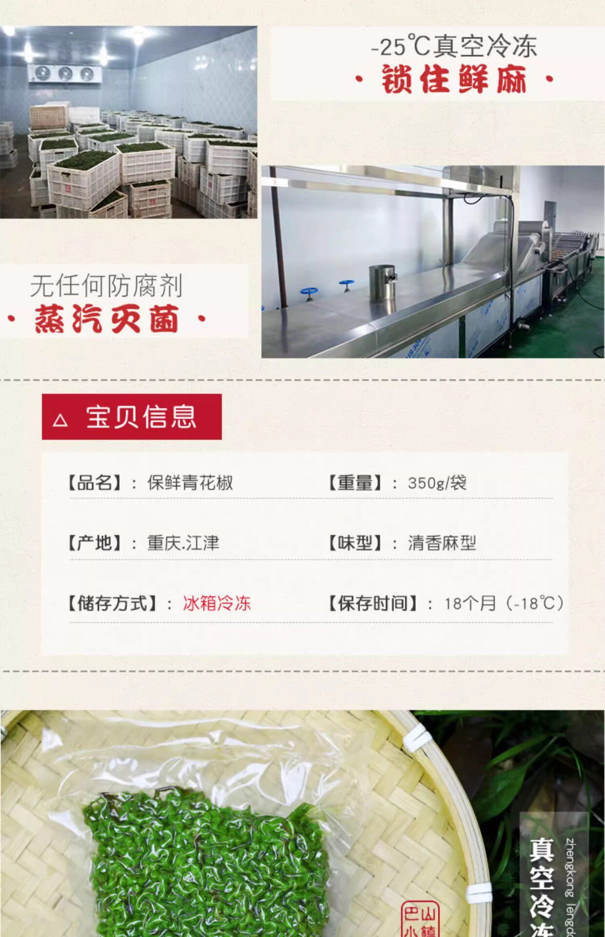 | Packaging specifications | 350g/bag |