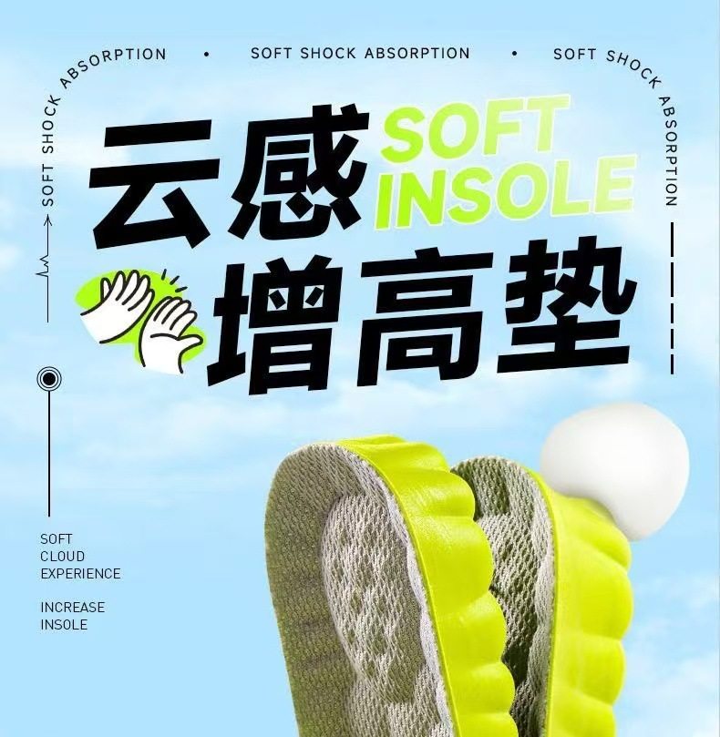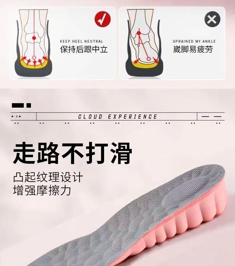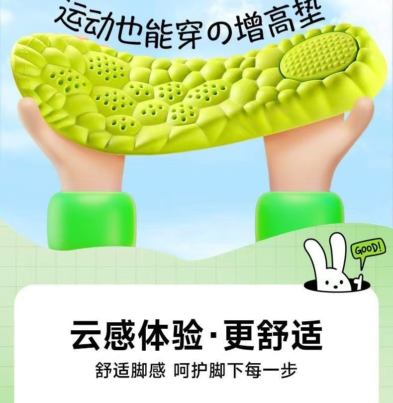 Inner Height Increasing Insoles for Men and Women Not Tired Feet Sweat Absorption Deodorant Sports Shock Absorption Height Increasing Insoles Invisible Inner Height Increasing Artifact