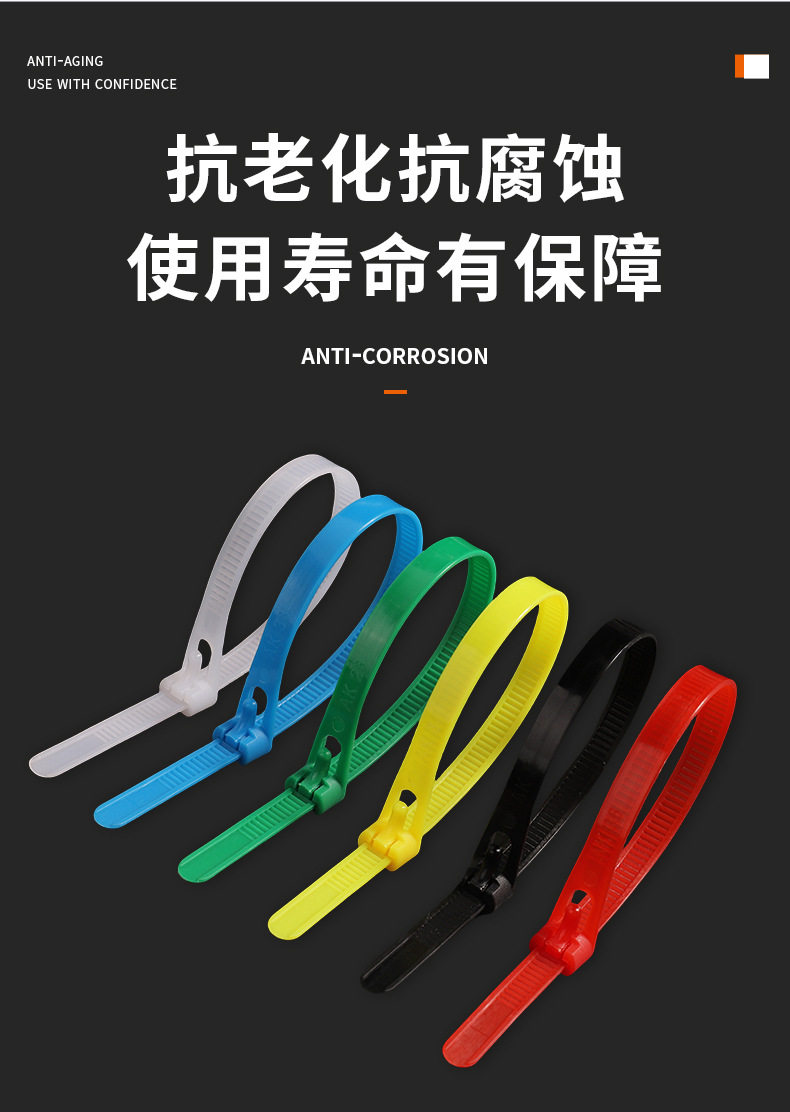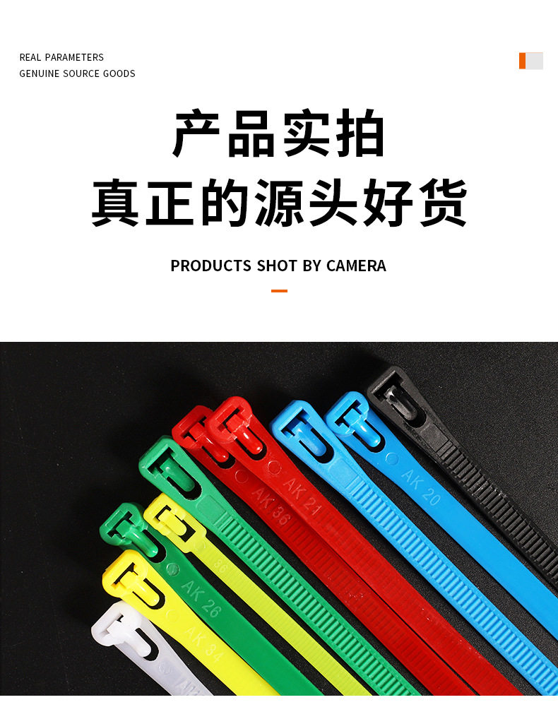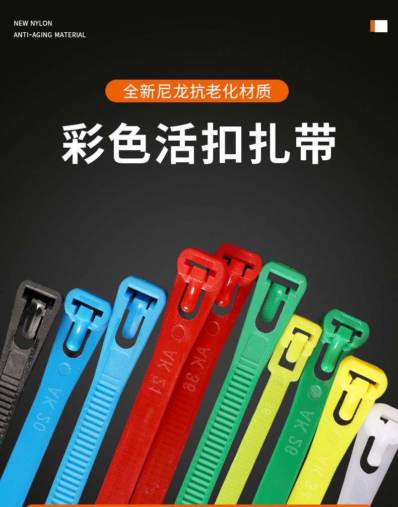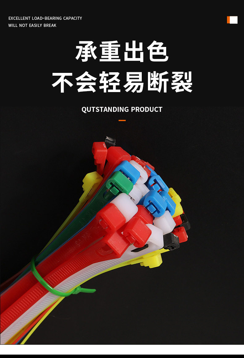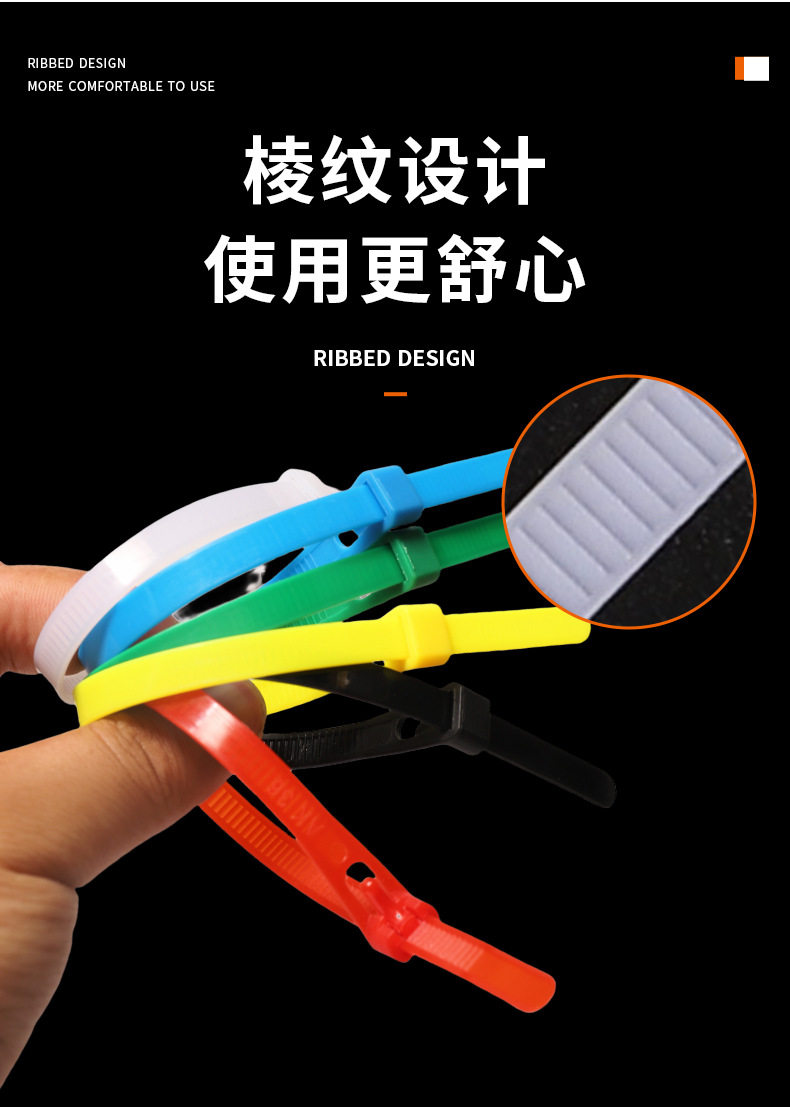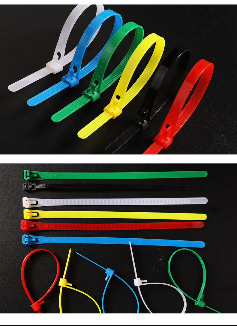 Removable Nylon Cable Ties Plastic Packaging Black and White Colorful Removable Reusable Cable Ties
