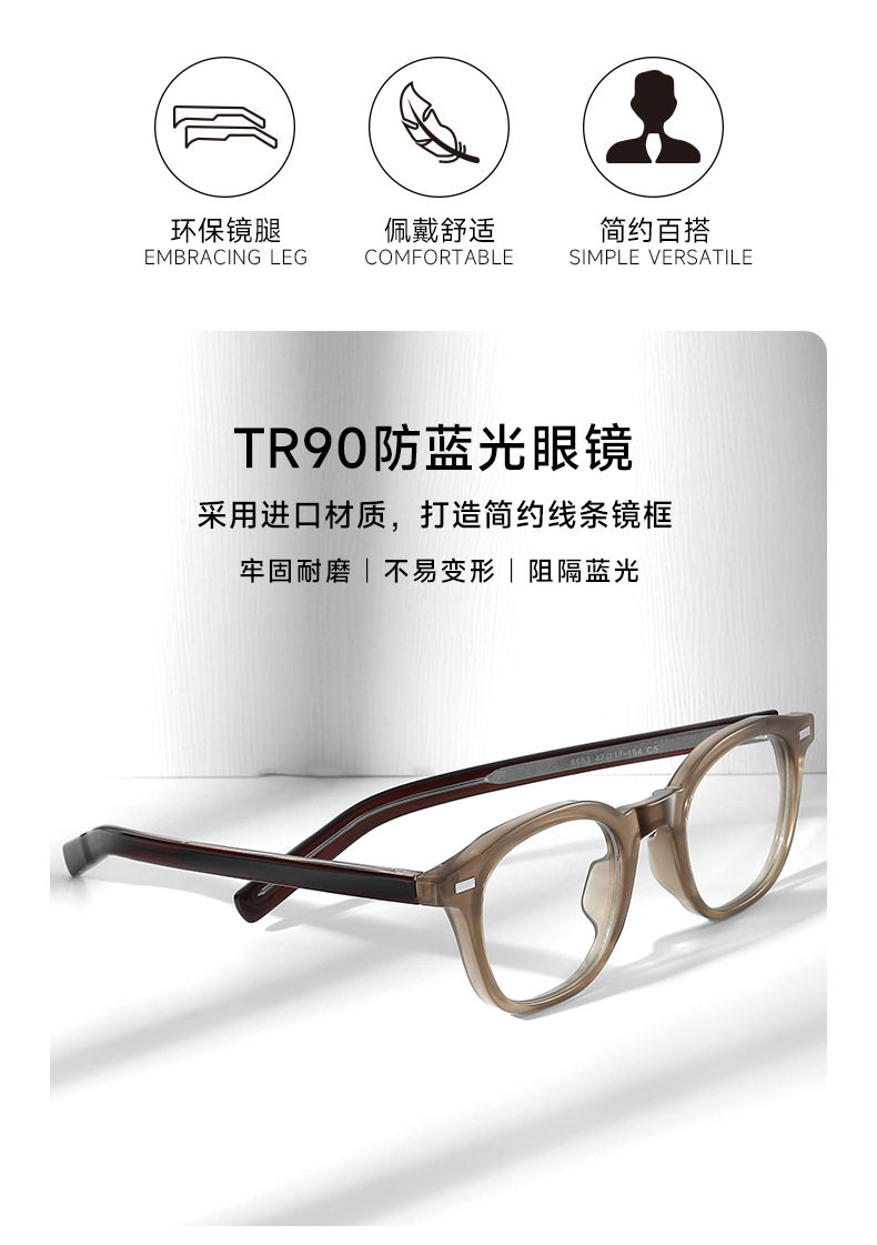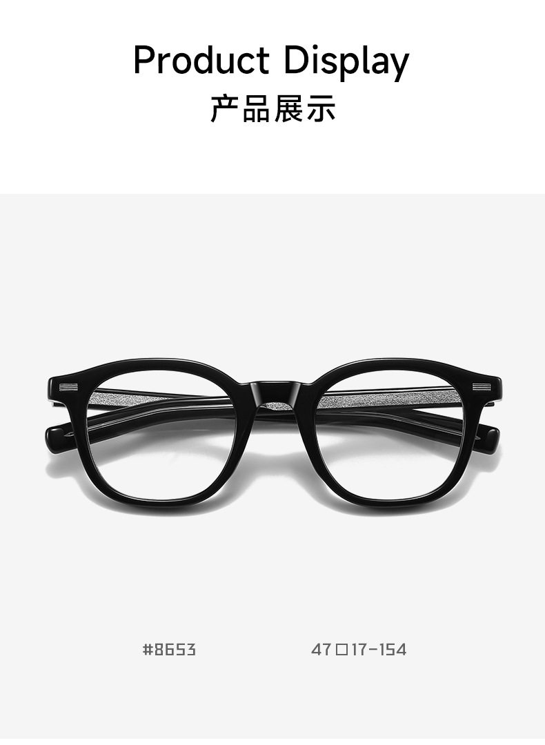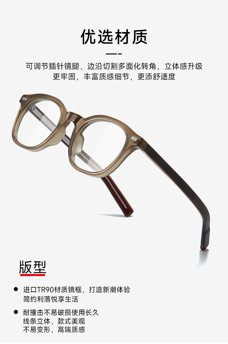 Tr90 Retro Personalized Rivet Myopia Glasses Frame for Men and Women 8653 Simple and Fashionable Pin Anti-Blue Light Flat Glasses