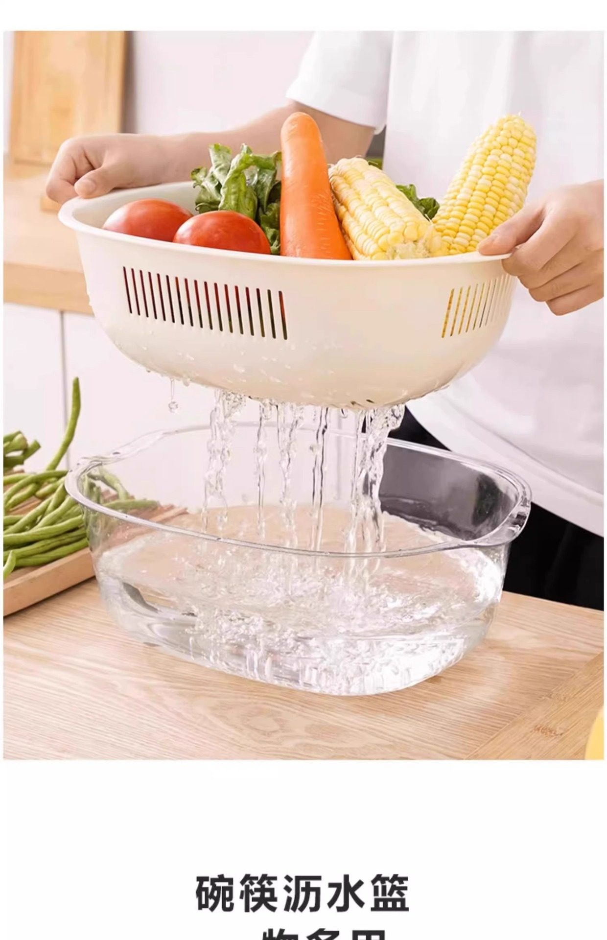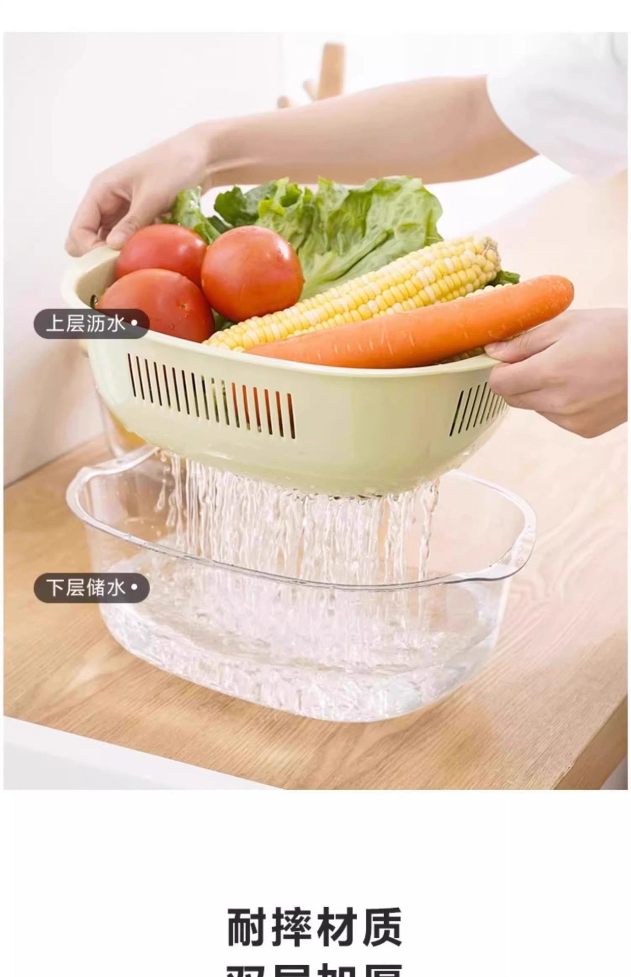 Double-Layer Hollow Fruit Basin, Fruit Washing and Draining Basket, Household Fruit Basket, Creative Plastic Vegetable Washing Basket, Kitchen Vegetable Washing Basin