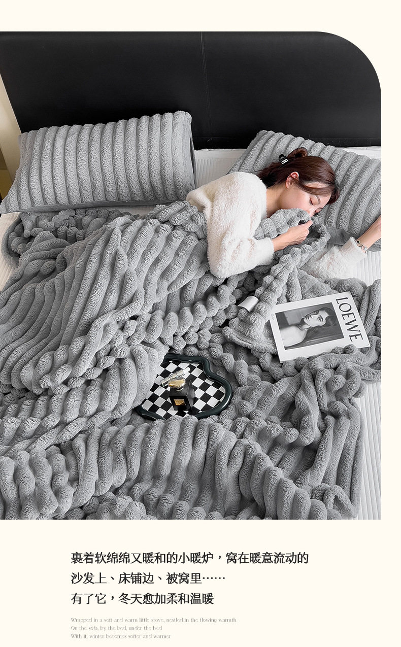 Cross-border foreign trade popular imitation rabbit plush blanket, flannel blanket, thickened coral fleece blanket, office nap blanket