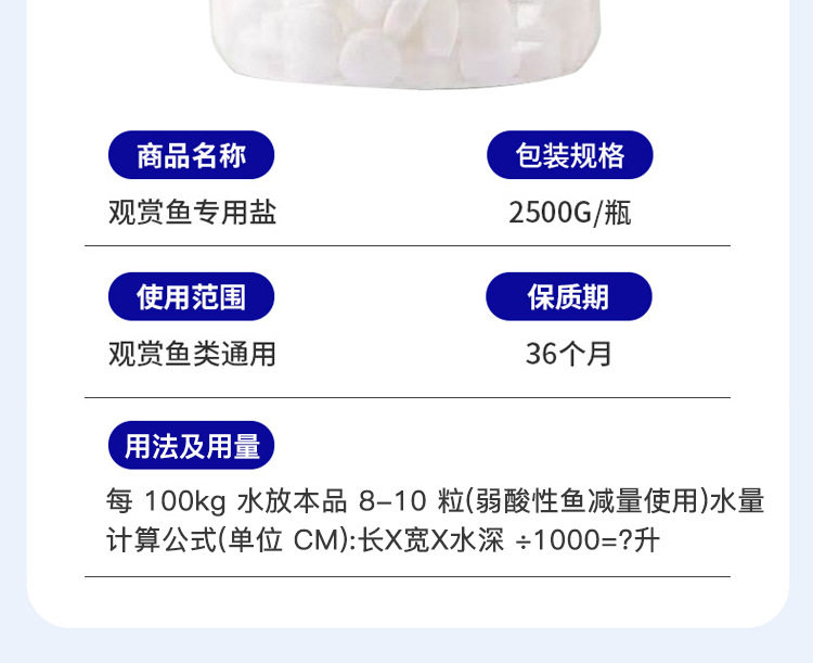 | Specification | Fish salt bottle 2500g,Fish salt bottle 1500g,Fish salt bottle 1000g,(bag) special salt for ornamental fish 200g |