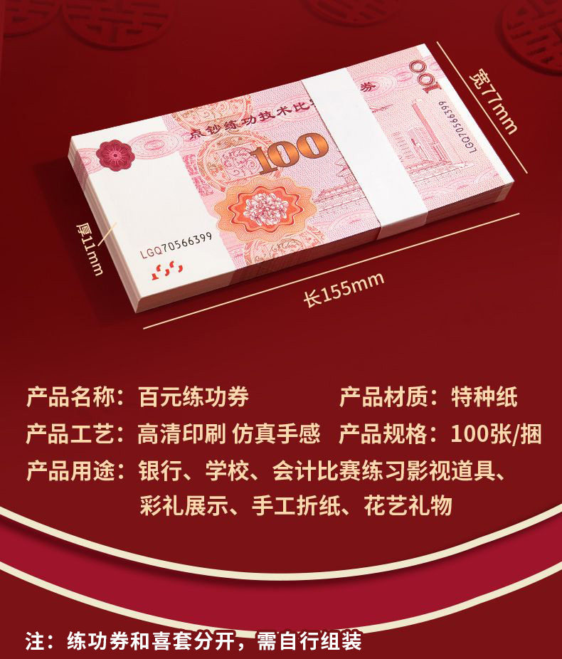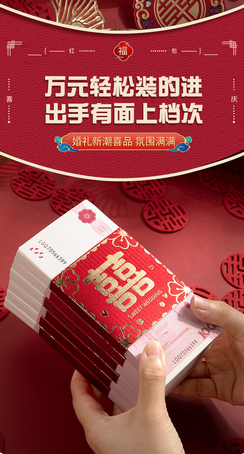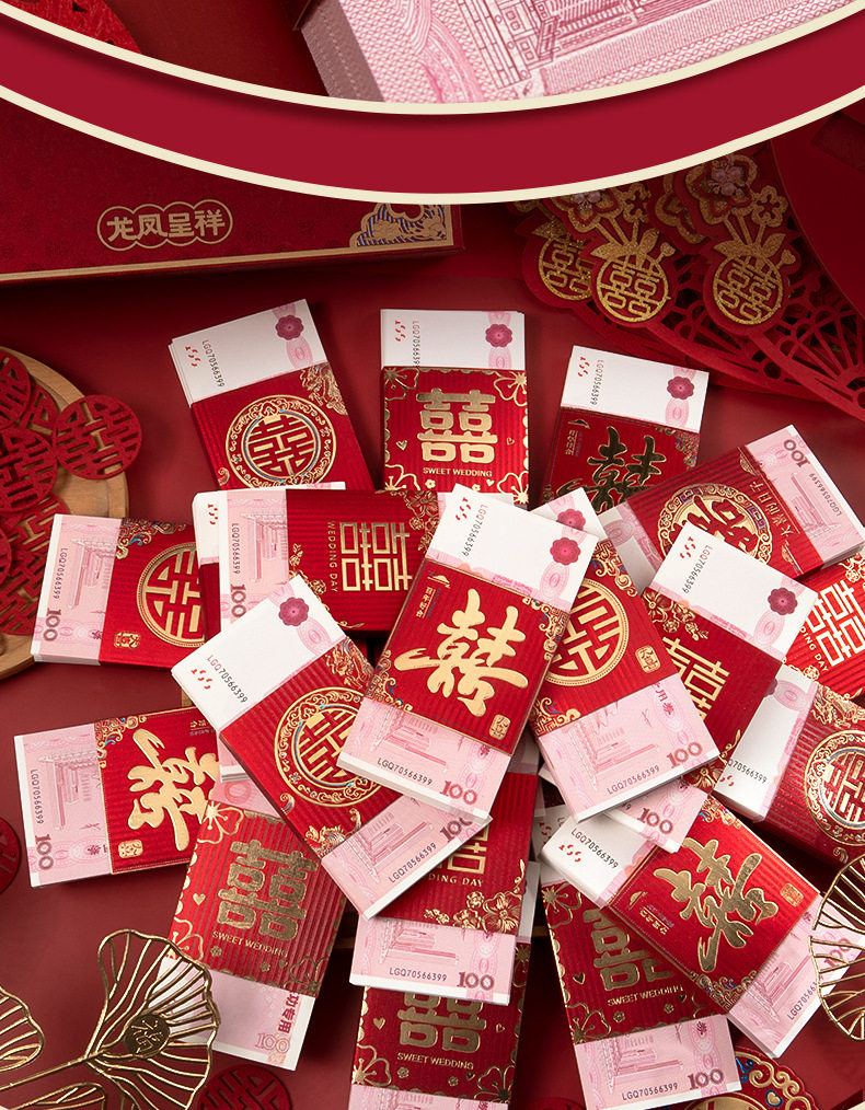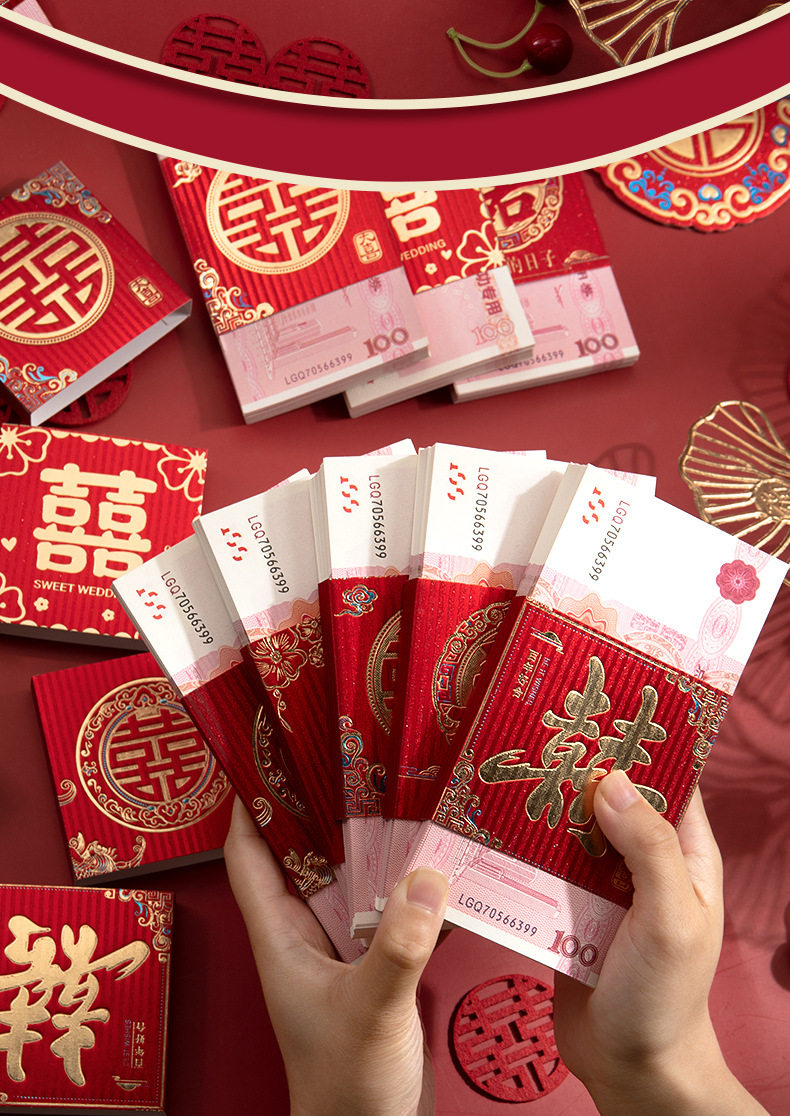 Gift Cash Seal with One Hundred Thousand Yuan of Simulated Banknotes, Money Set with Happy Words, Red Envelope, Engagement Gift Set, Practice Banknotes, Happy Money
