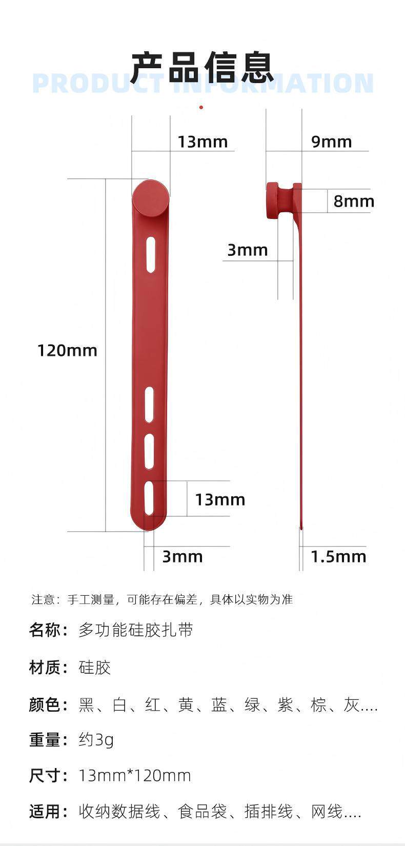 | Specifications and models | 12mmx120mm; white; tie,12mmx120mm; black; tie,12mmx120mm; light gray; tie,12mmx120mm; blue; tie,12mmx120mm; gray green; tie,12mmx120mm; pink; tie,12mmx120mm; purple; tie,12mmx120mm; dark blue; tie,12mmx120mm; sky blue; tie,12mmx120mm; orange; tie,12mmx120mm; mix and match combination; tie,12mmx120mm; customized colors shipped after 72 hours; cable ties |