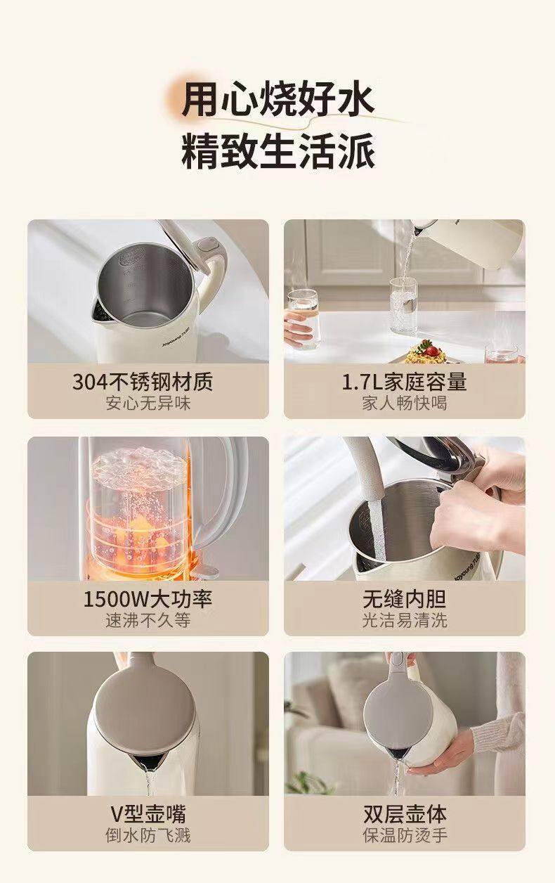 Suitable for Joyoung Electric Water Kettle K17Fd-W160 Electric Water Kettle 1.7L Double-Layer Anti-Scalding 304 Stainless Steel Water Kettle