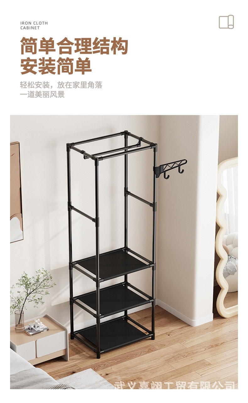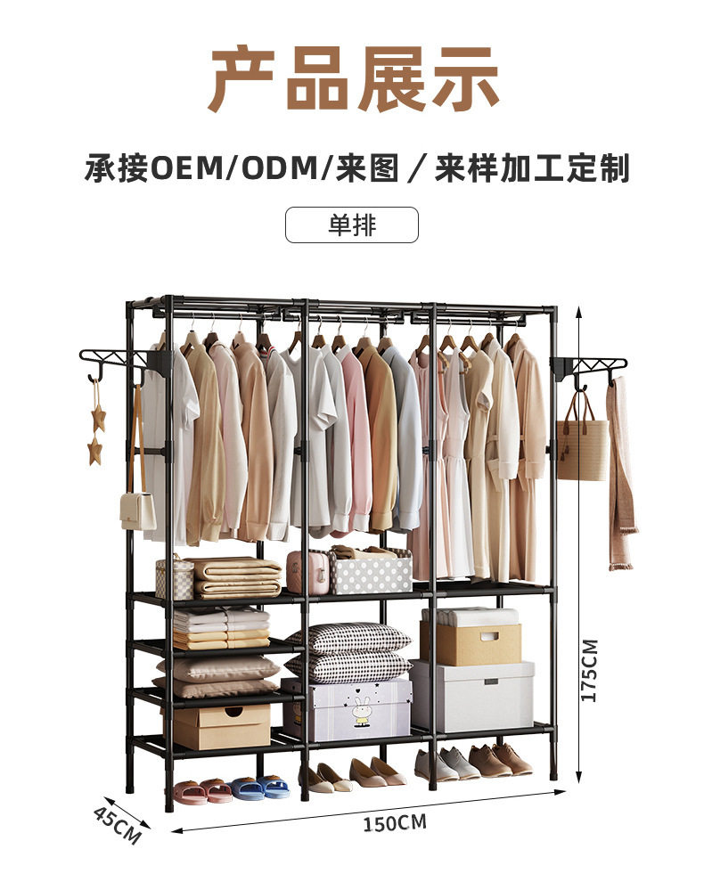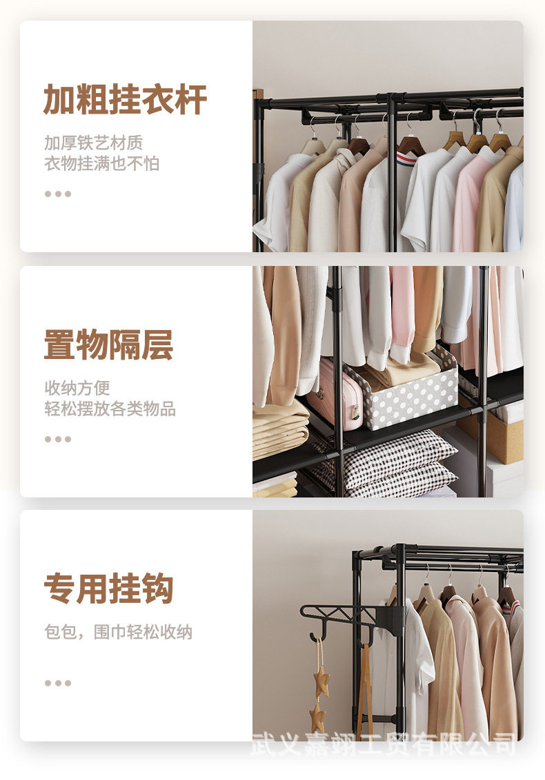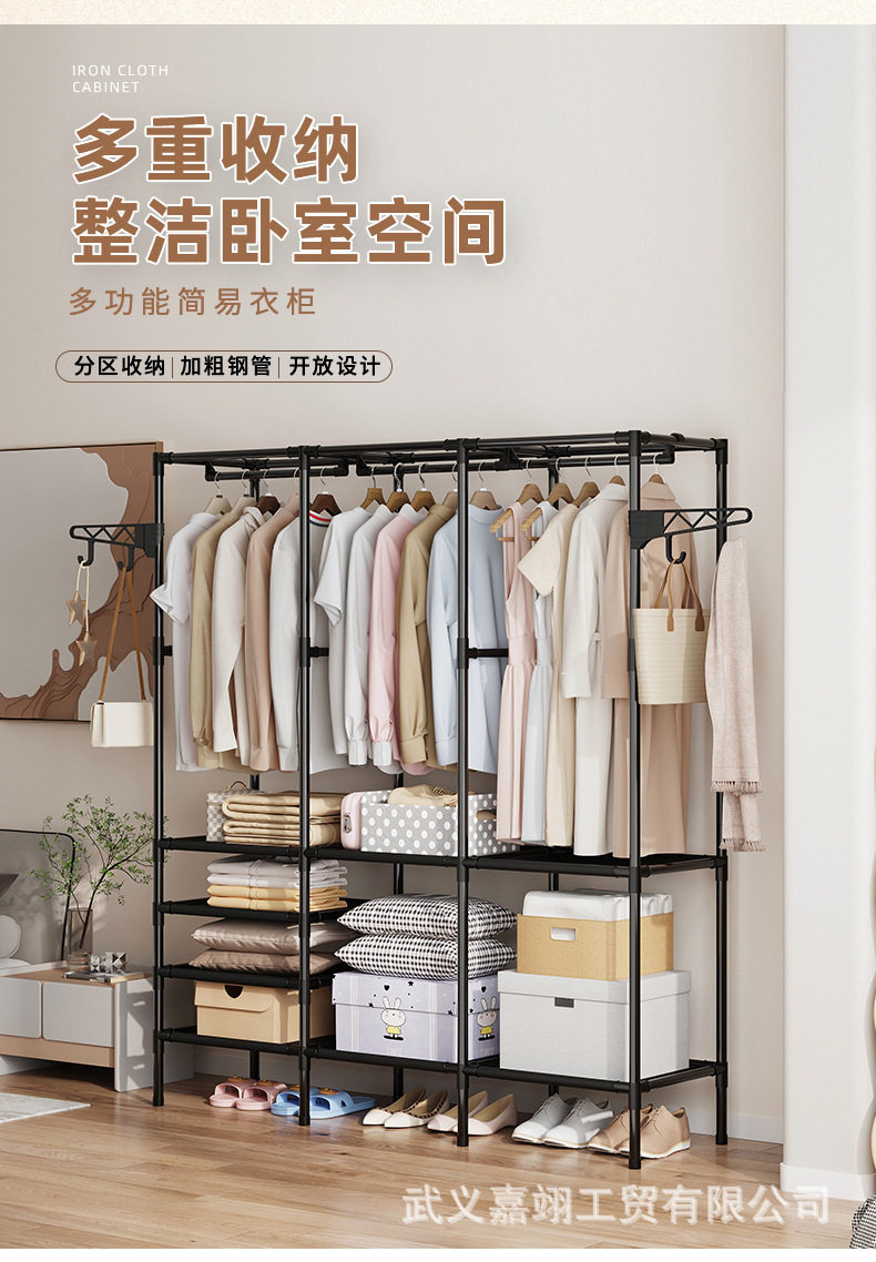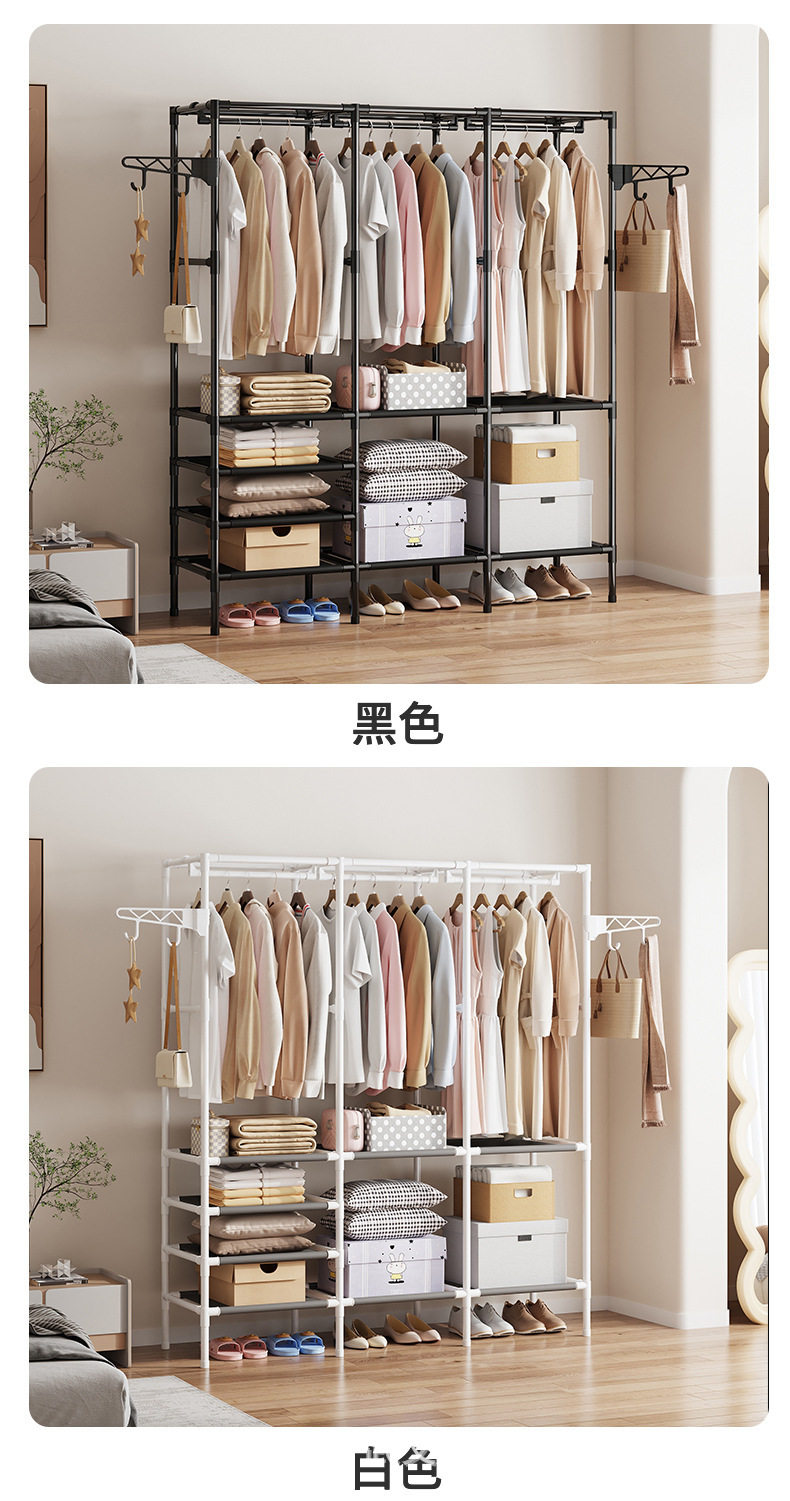Foreign Trade Cross-border Hot Selling Simple Three-row Multi-function Storage Hanger Household Bedroom Floor Rack Coat Rack