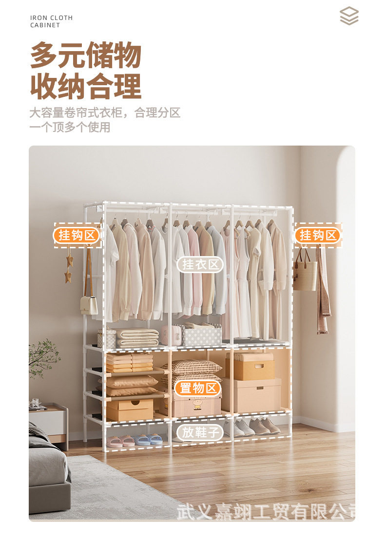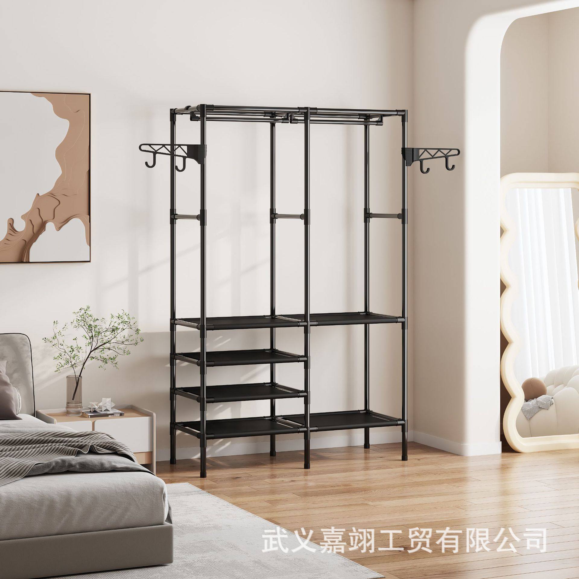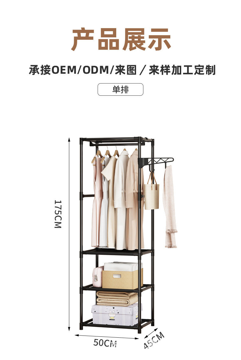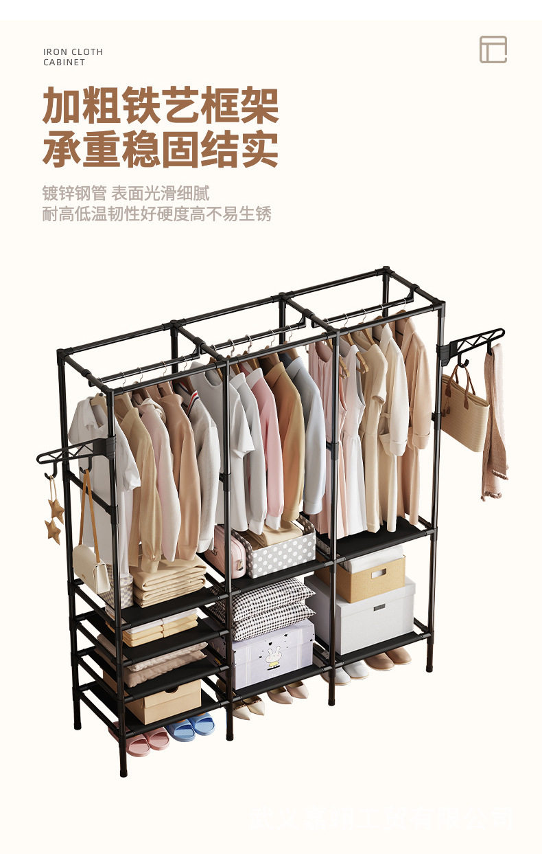 Foreign Trade Cross-border Hot Selling Simple Three-row Multi-function Storage Hanger Household Bedroom Floor Rack Coat Rack