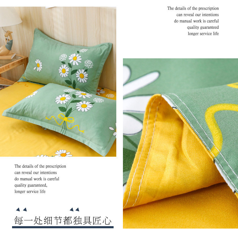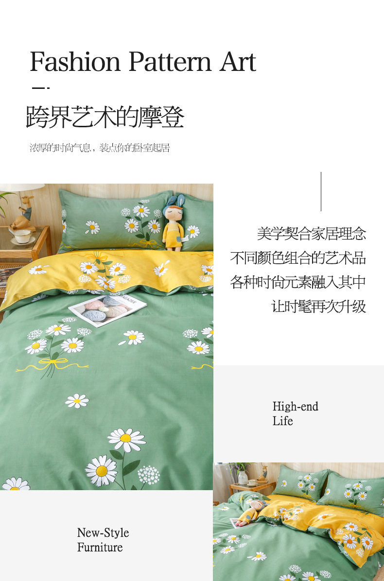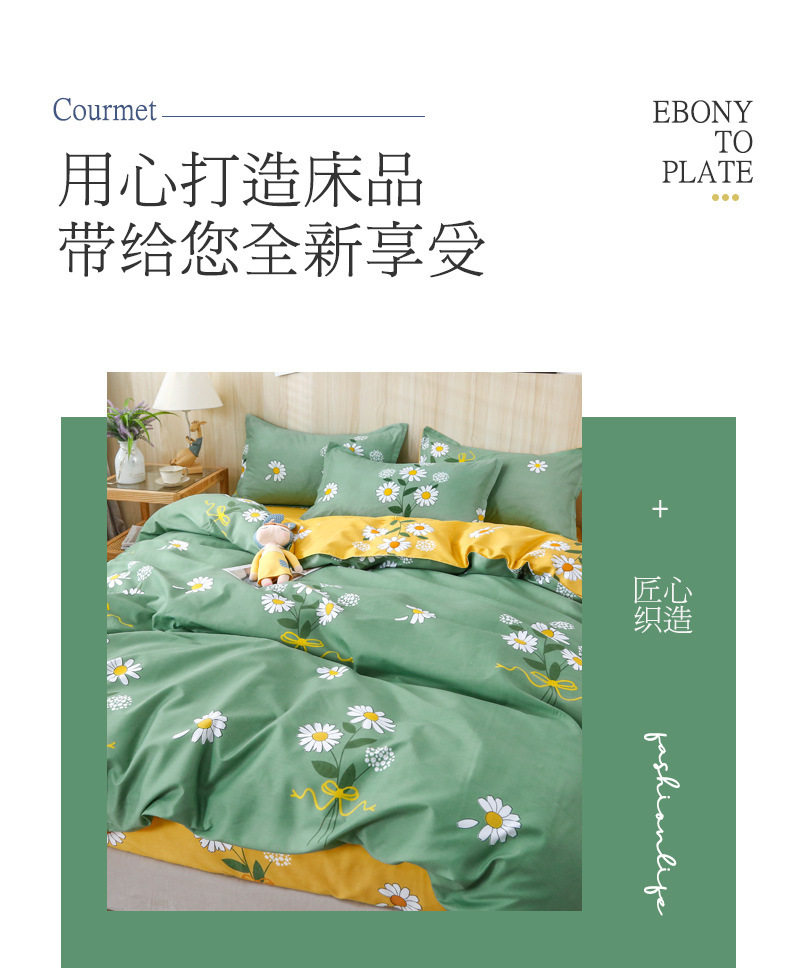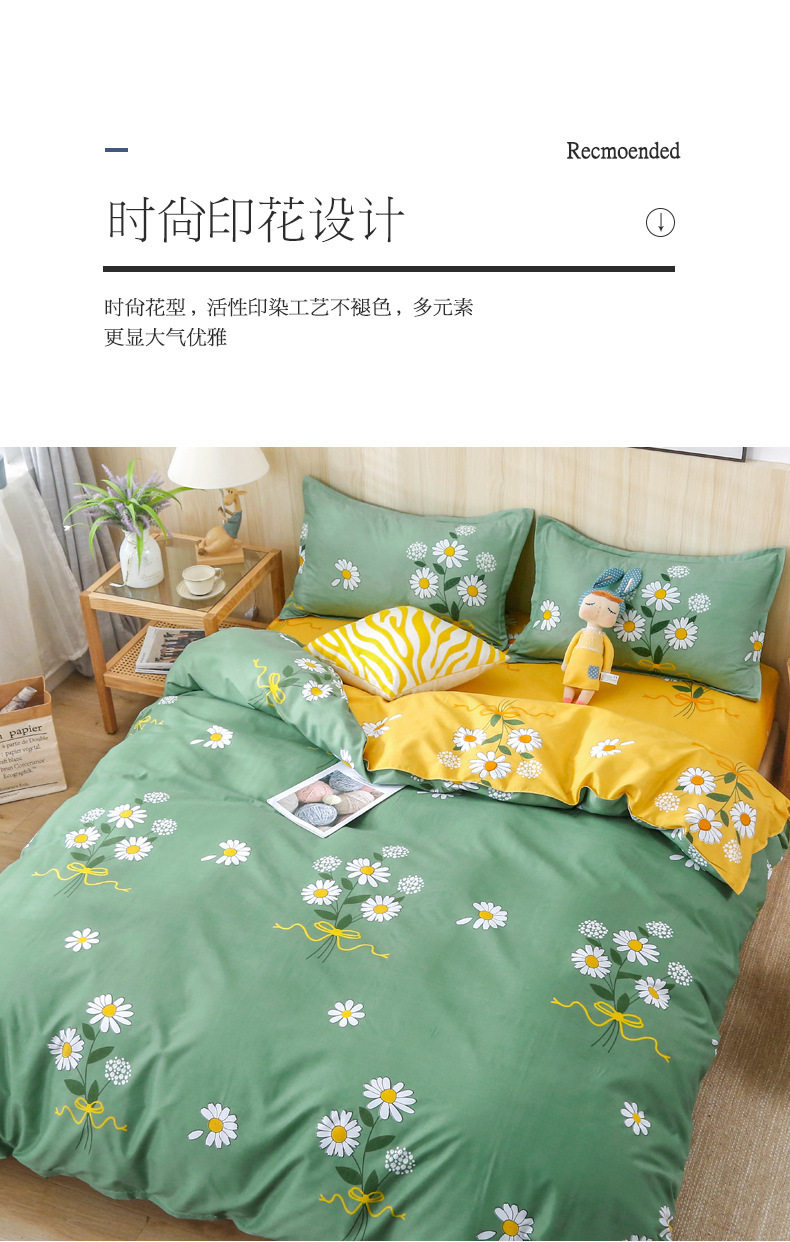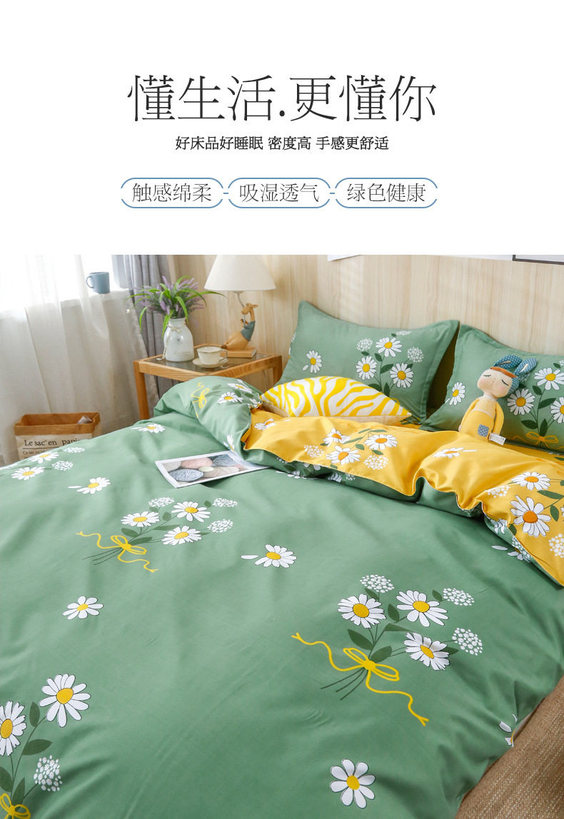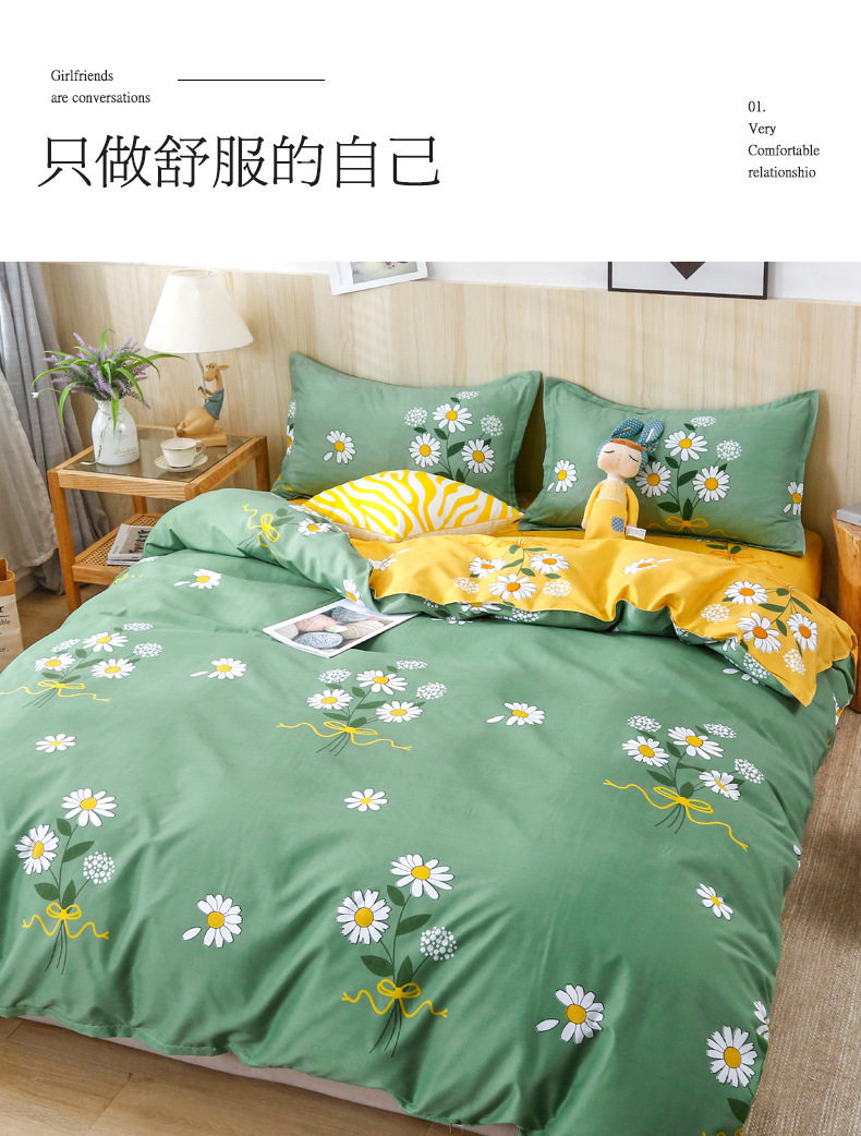 Ins small fresh four-piece bedding skin-friendly wash cotton sanding student bed sheets quilt cover three-piece wholesale