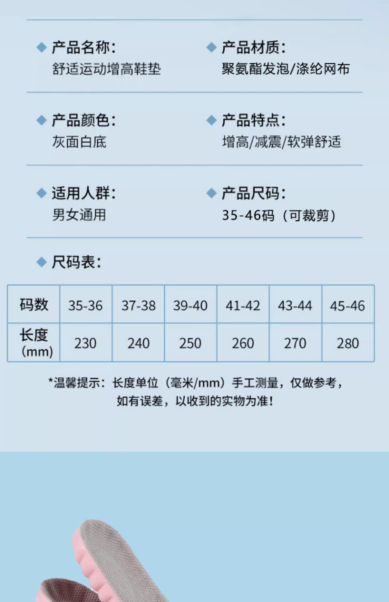 | Insole size | 35,36,39,38,40,41,42,43,44,45,46,37 |