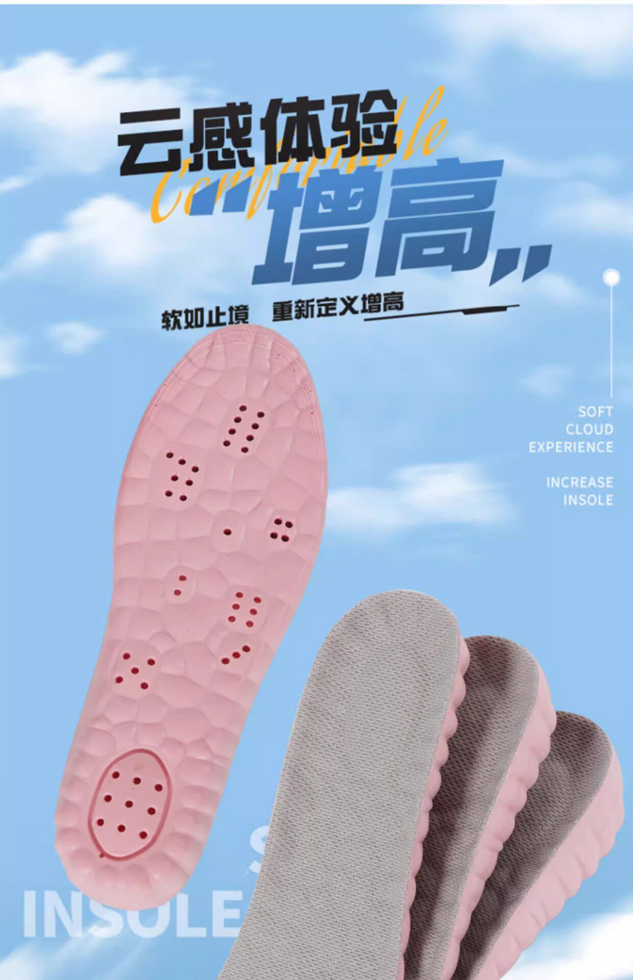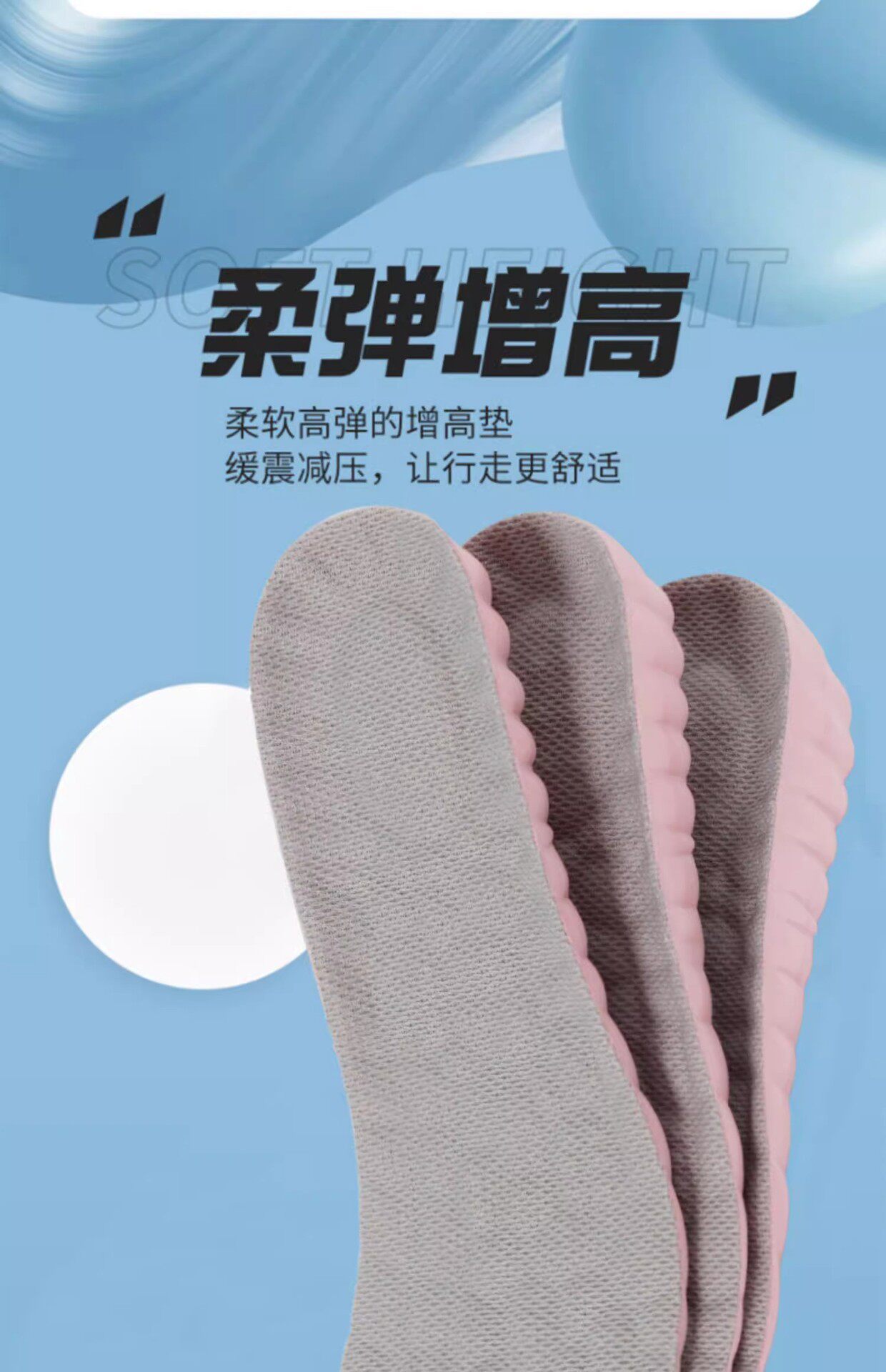 Extremely Fast Delivery of Cloud Heightening Men's and Women's Insoles, Breathable, Sweat-Absorbent, Deodorant, Sports Shock-Absorbing Latex Inner Heightening Insoles