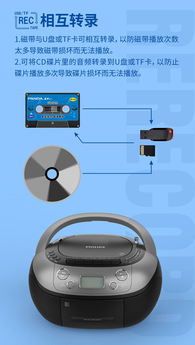 Philips Az5368 Cd Tape All-In-One Machine Review U Disk Tape Transcription Home Teaching Examination Speaker