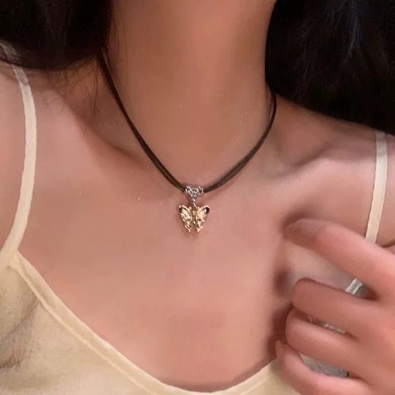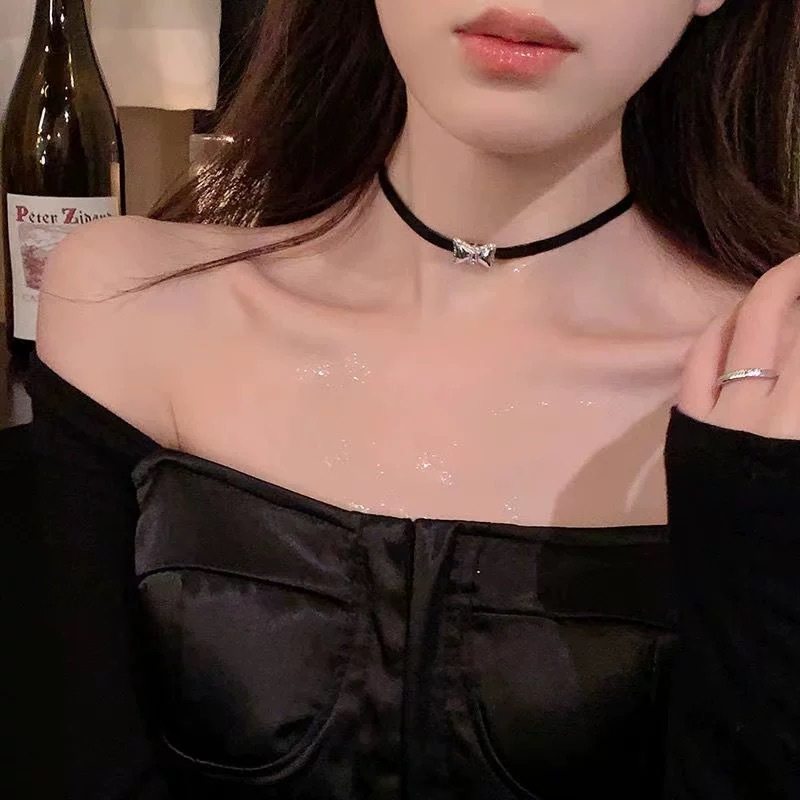 Pure Lust Black Leather Rope Choker Sexy Necklace Women's Niche Elegant Neck Accessories Clavicle Chain Necklace