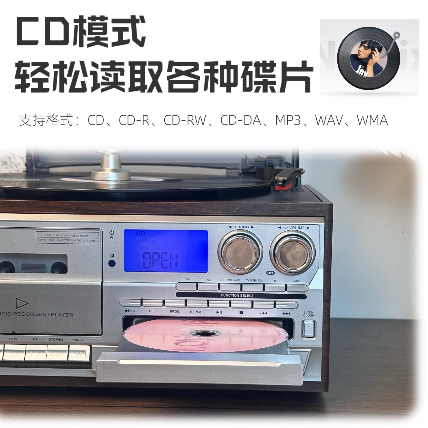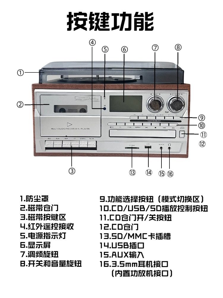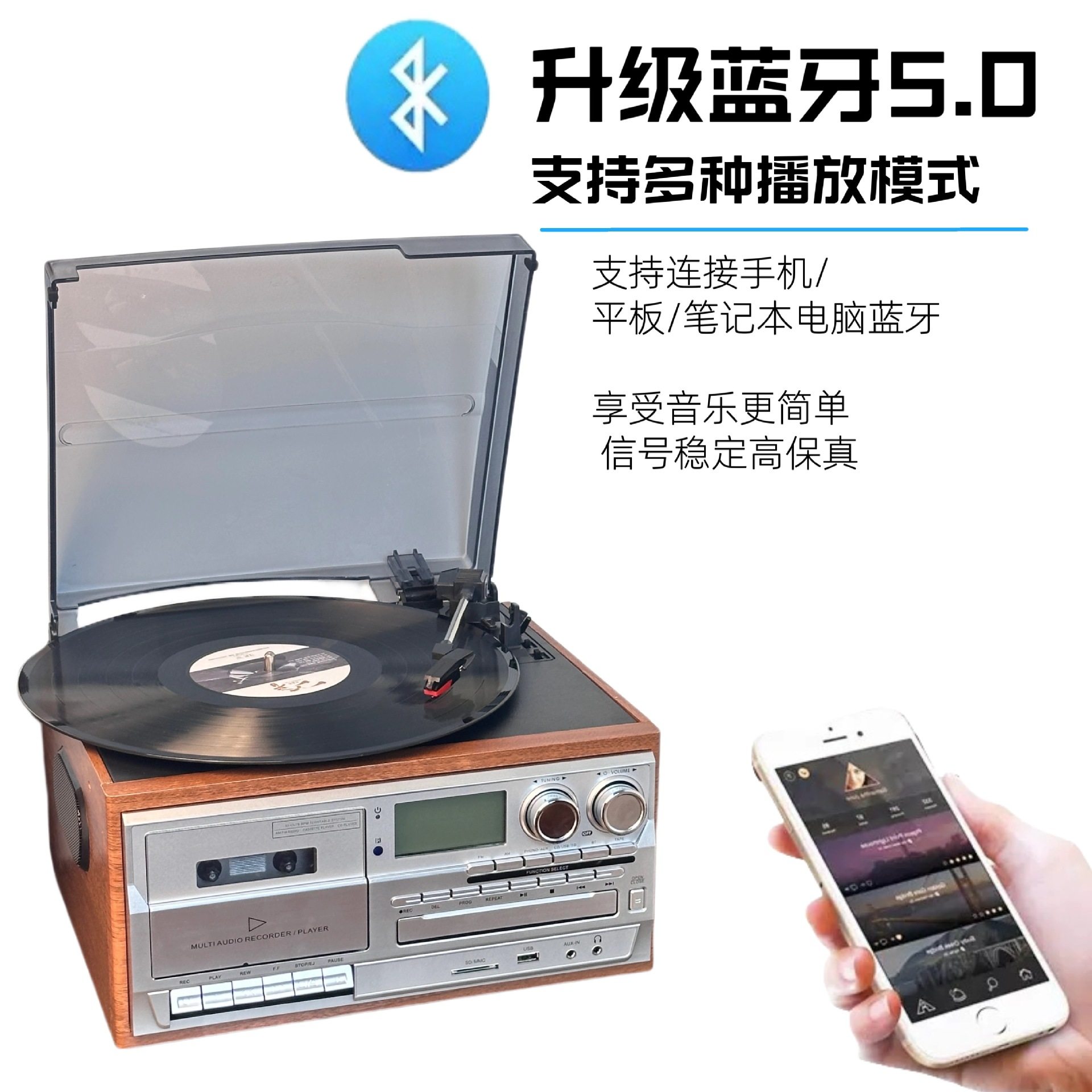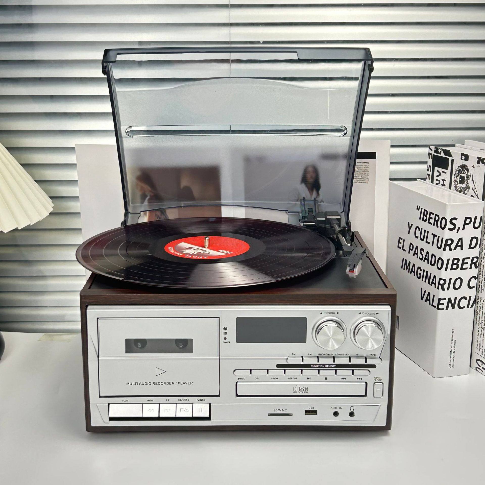 Retro Vinyl Record Player Cd Player Old-Fashioned Tape Player Fmam Radio Desktop Bluetooth Speaker Amazon Export