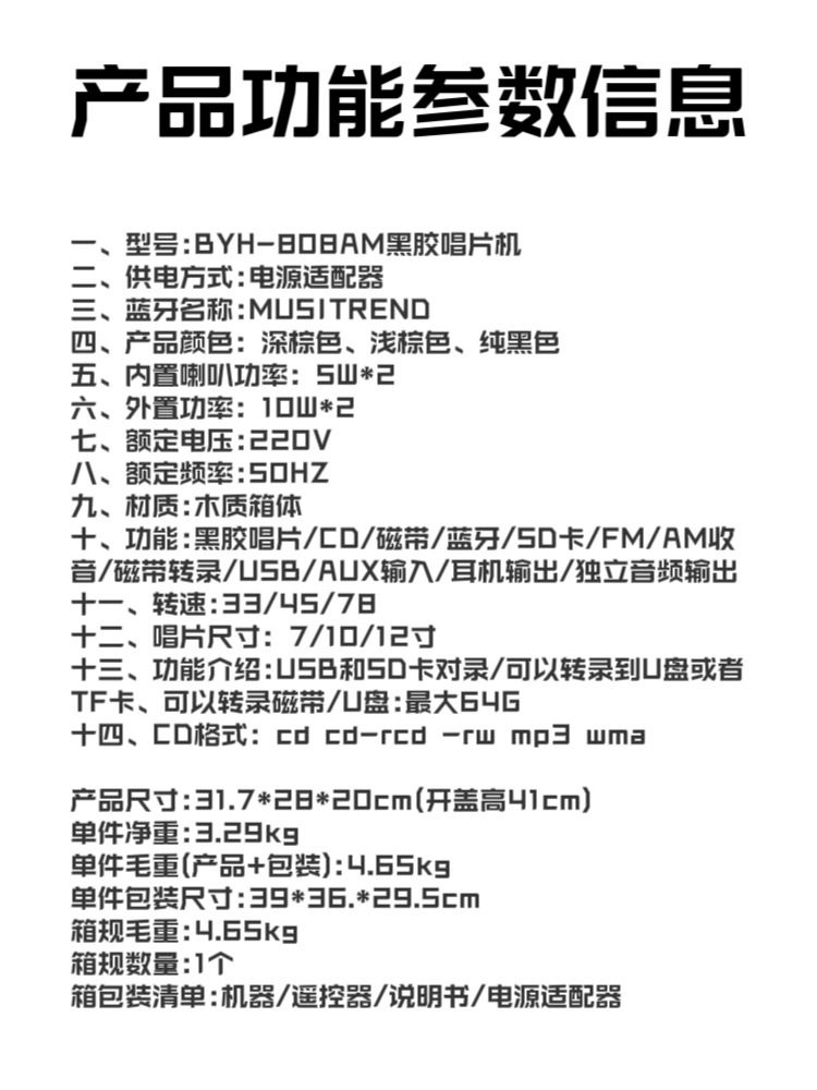 | Specification | Accessories: main unit *1, remote control *1, user manual *1, power cord *1 |