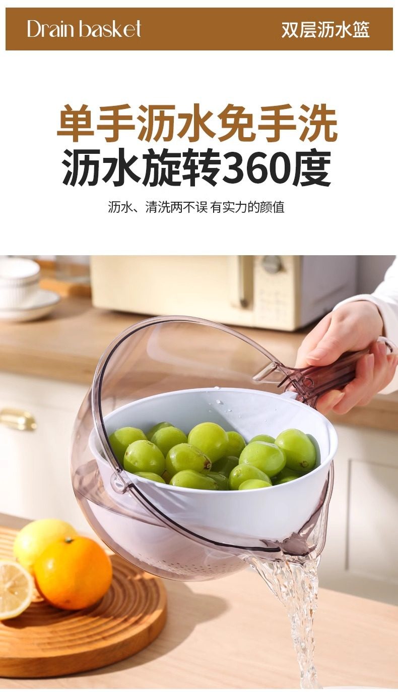 Taomi's New Kitchen Multi-Functional Vegetable Washing and Rice Washing Handle-Free Rice Washing Sieve Vegetable Washing Fruit Basin Drain Basket