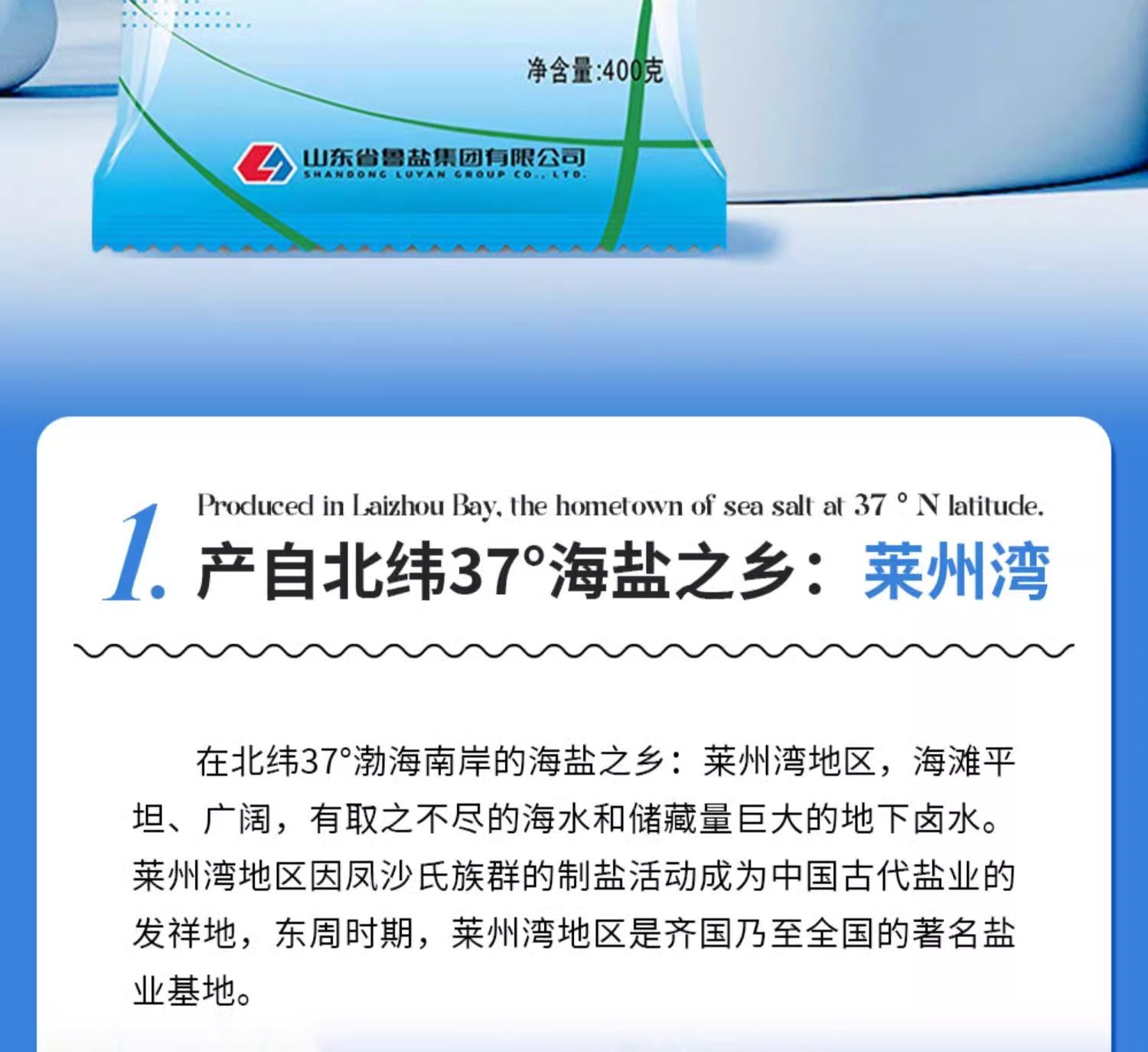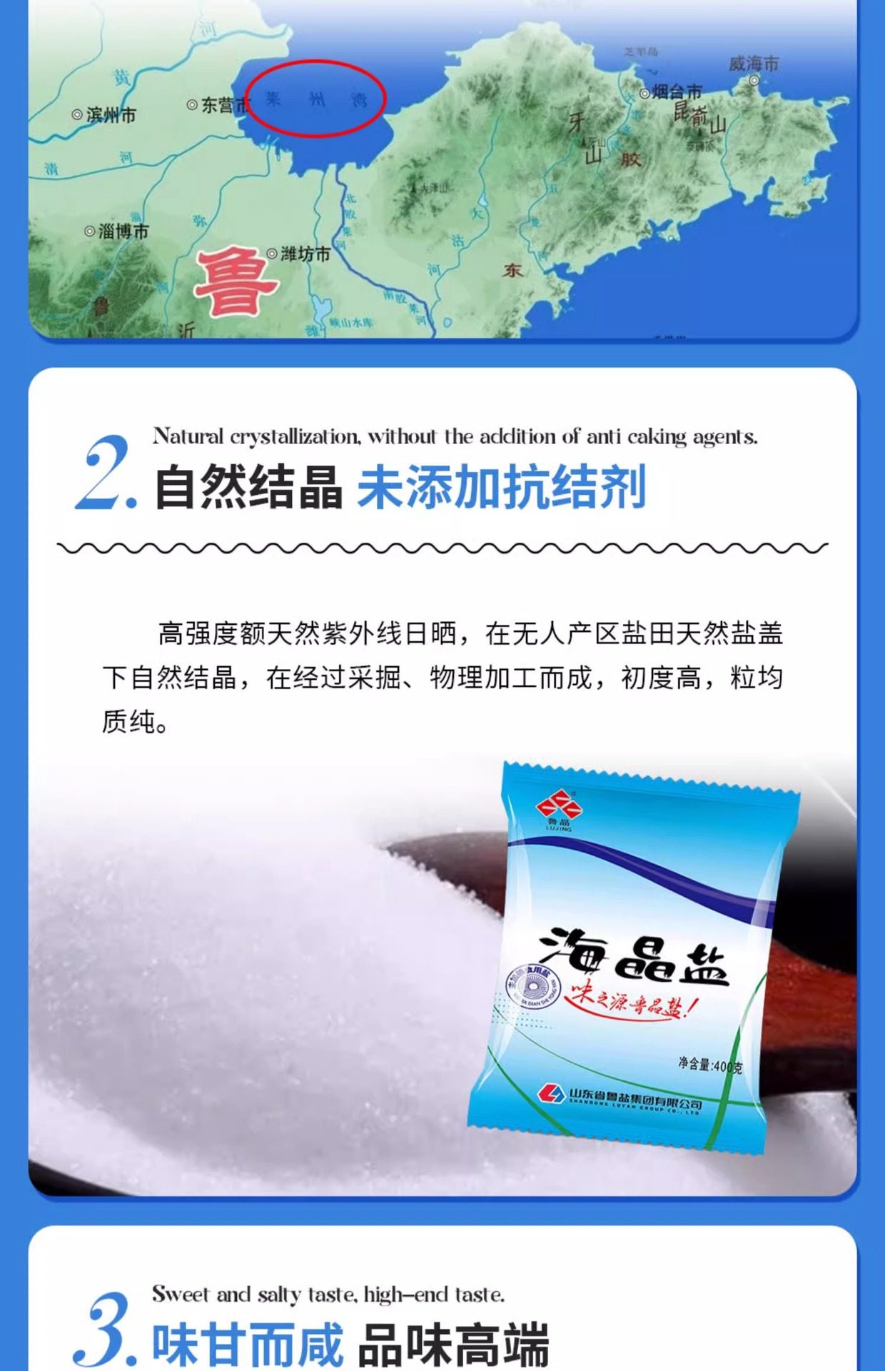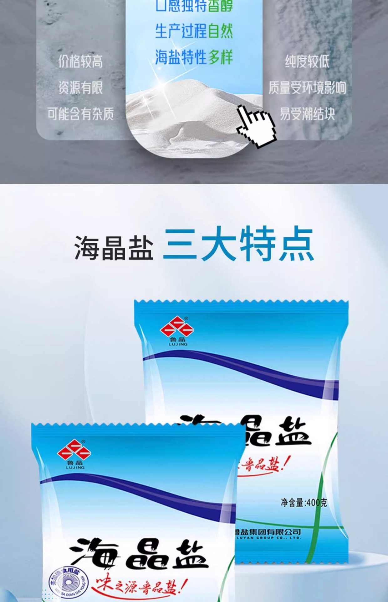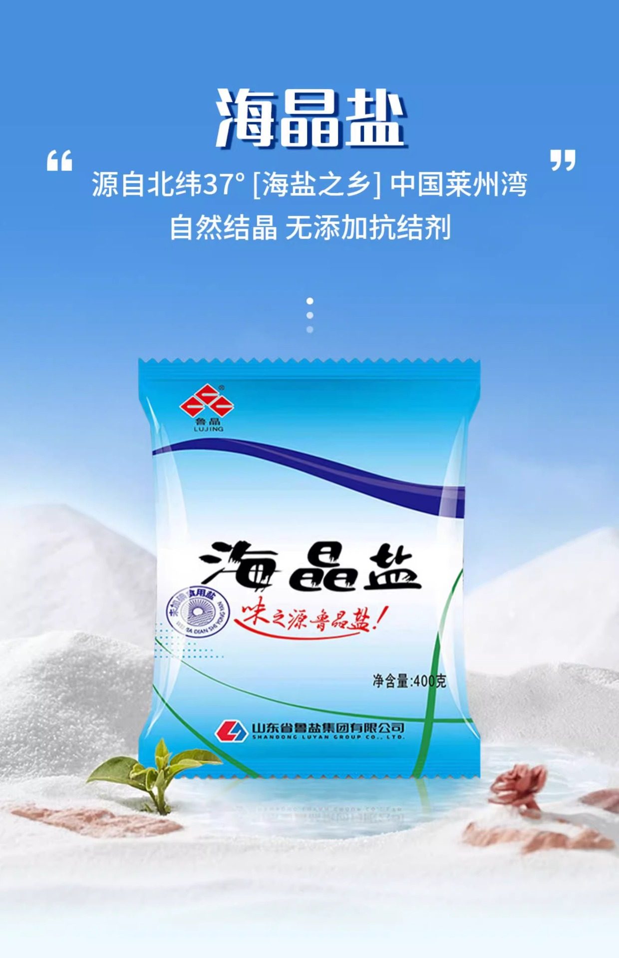 State-Owned Enterprise Produces Lu Jing Sea Salt, Iodine-Free Edible Salt 400g, Does Not Contain Anti-Caking Agent, Natural Sun-Dried Sea Salt Seasoning