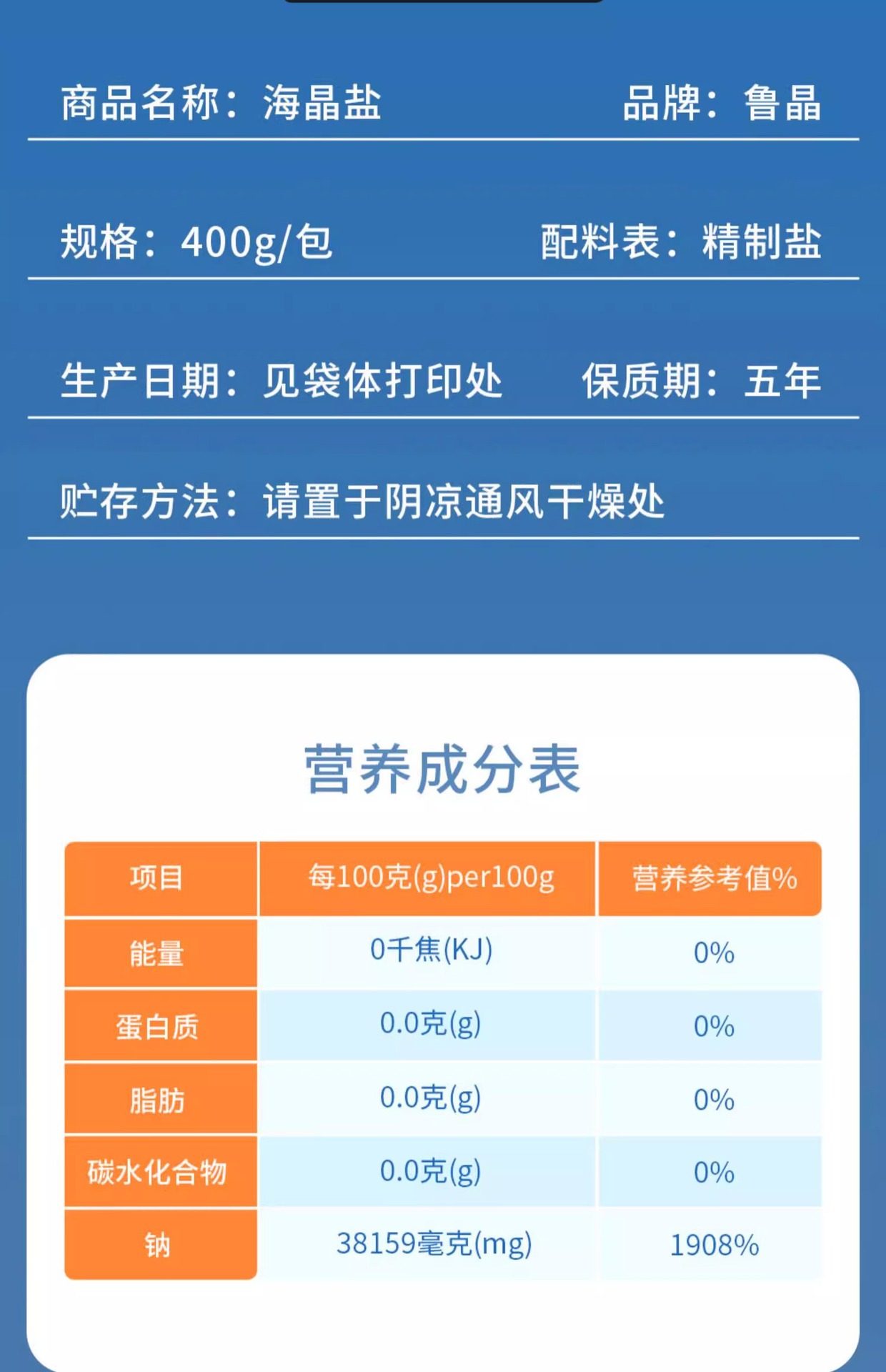 | Raw materials and ingredients | Refined salt |