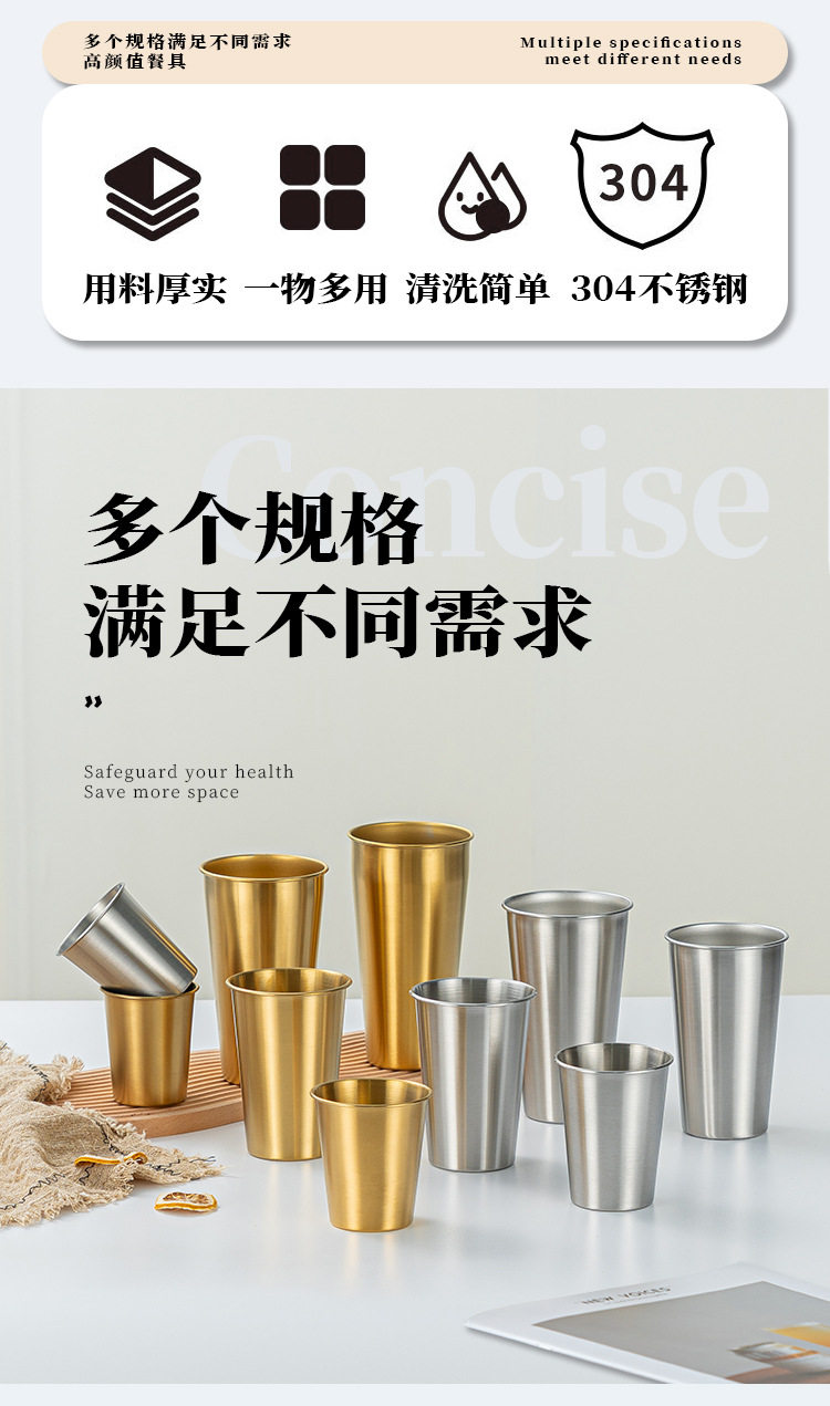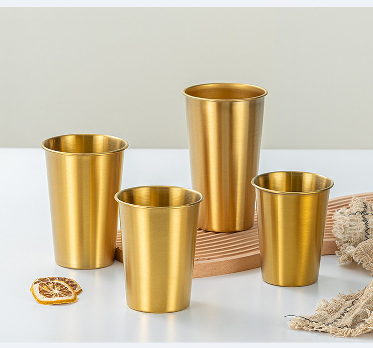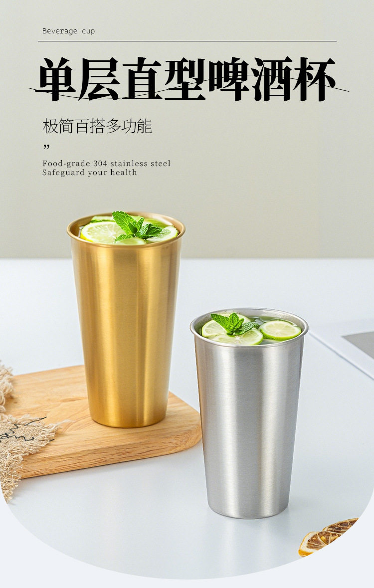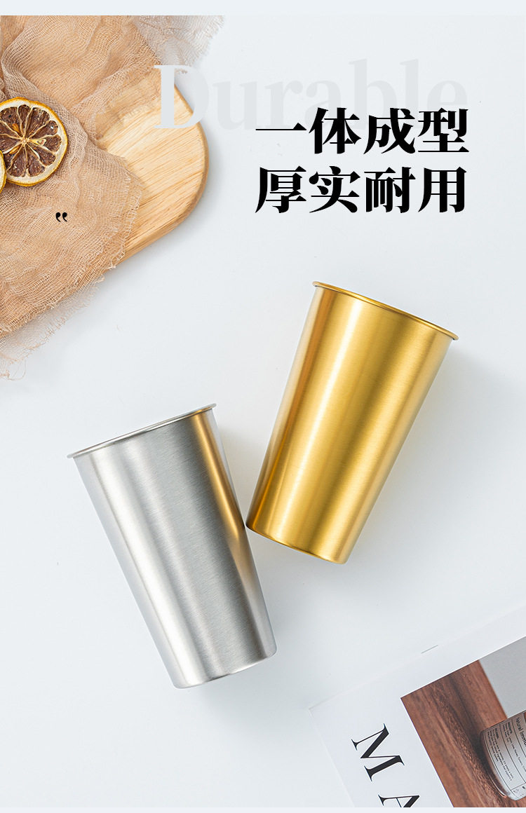 304 Stainless Steel Beer Mug, Anti-Fall Juice and Cold Drink Cup, Outdoor Camping Restaurant Single-Layer Water Cup, Coffee Cup, Gold Color