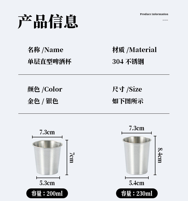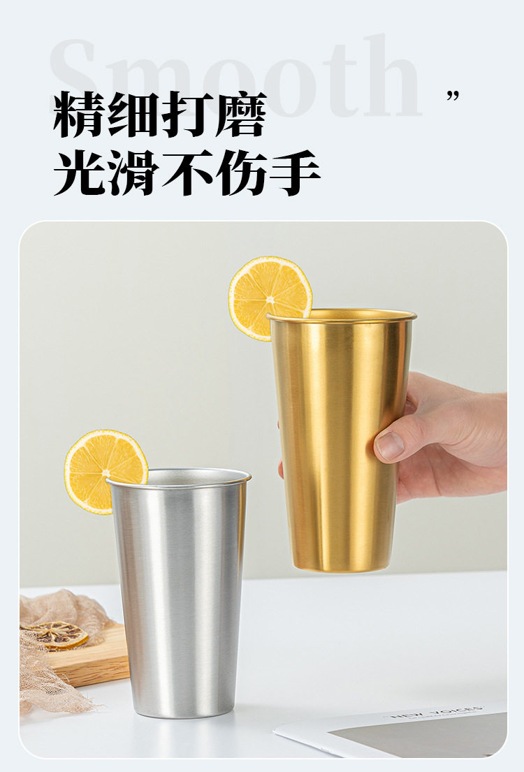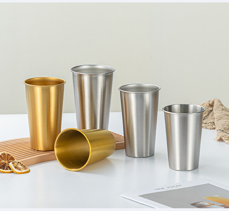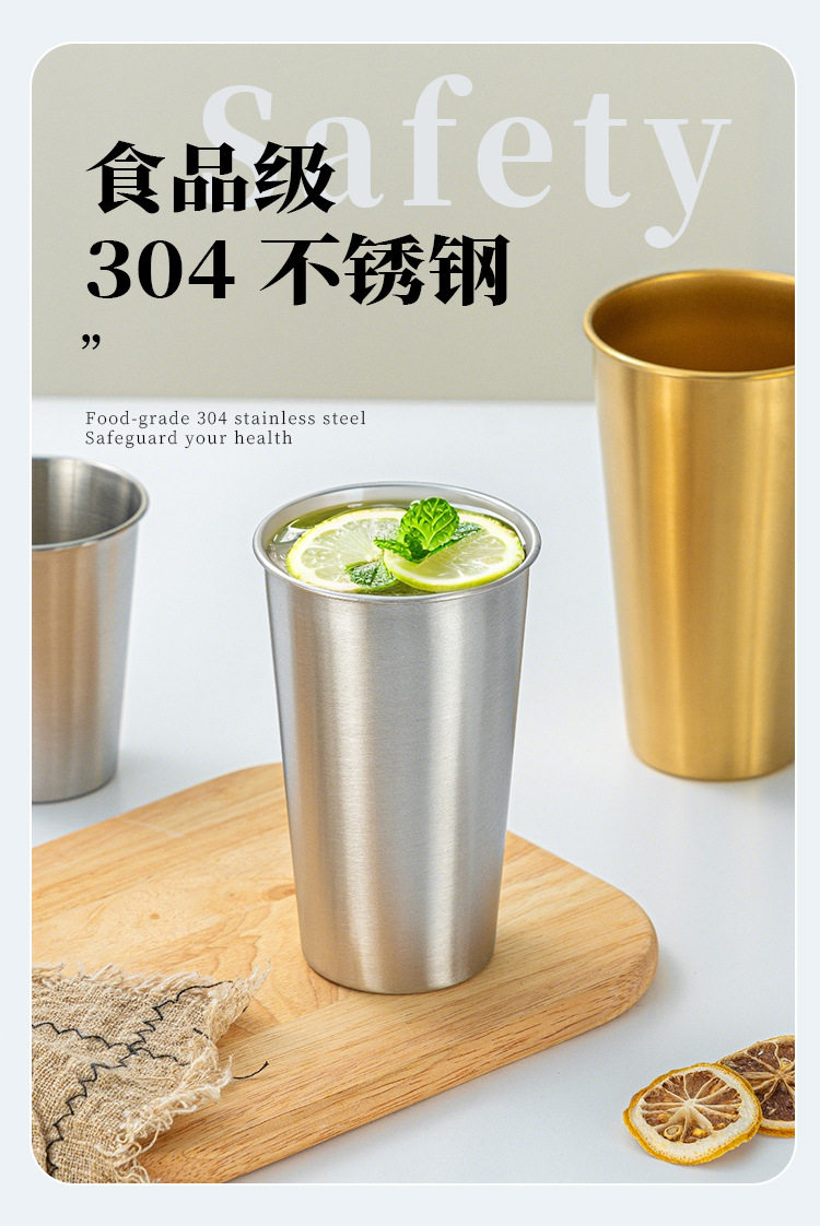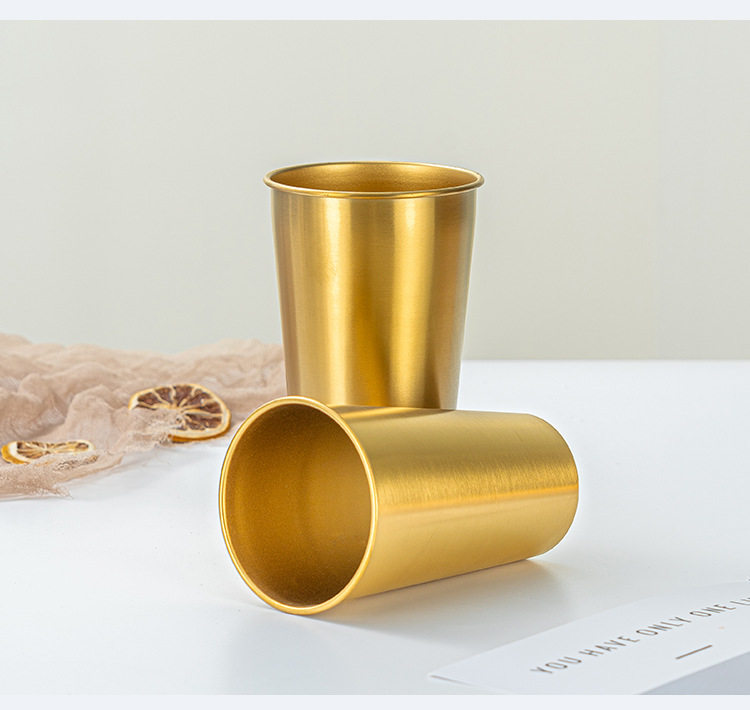 304 Stainless Steel Beer Mug, Anti-Fall Juice and Cold Drink Cup, Outdoor Camping Restaurant Single-Layer Water Cup, Coffee Cup, Gold Color