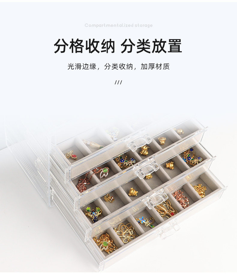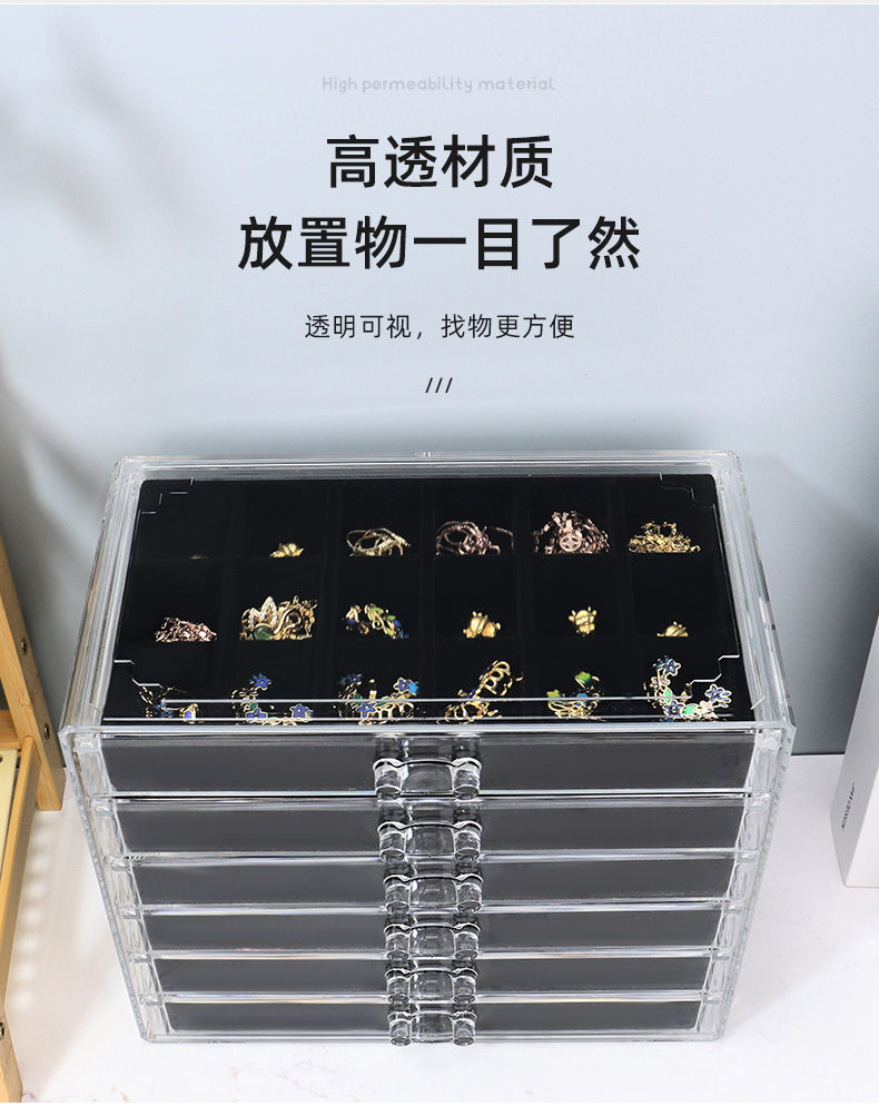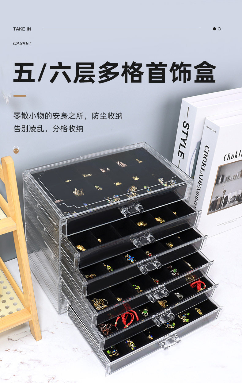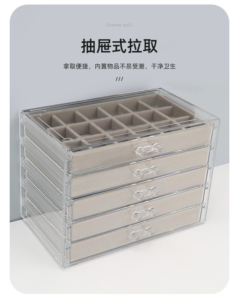 5/6-Layer Multi-Grids Plastic Velvet Storage Box Transparent Drawer-Type Jewelry Jewelry Earrings Ring Jewelry Storage