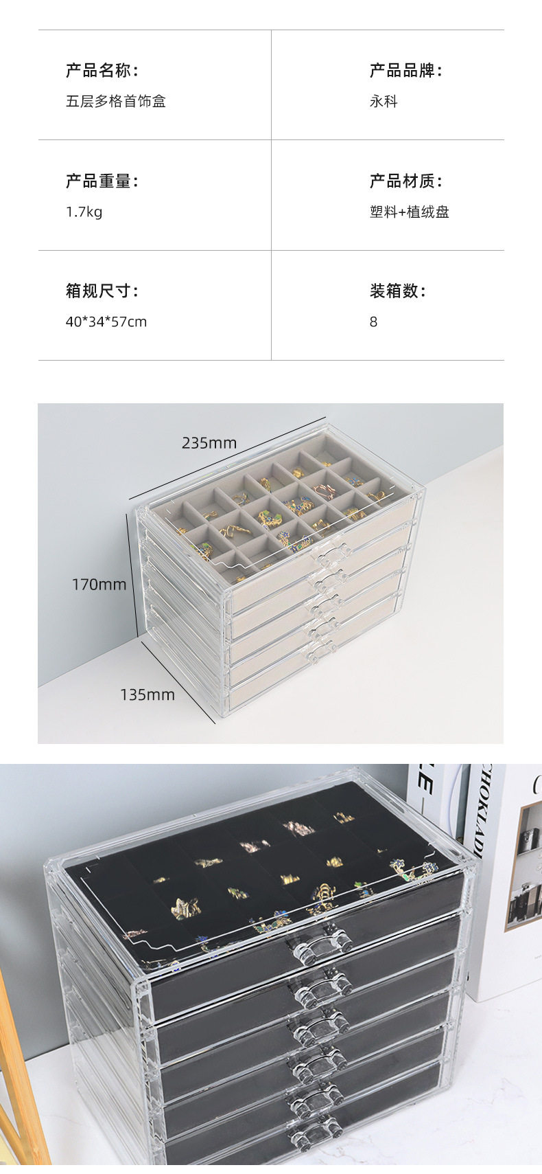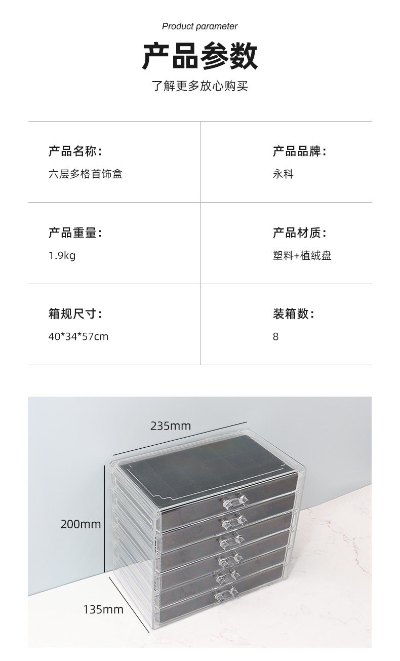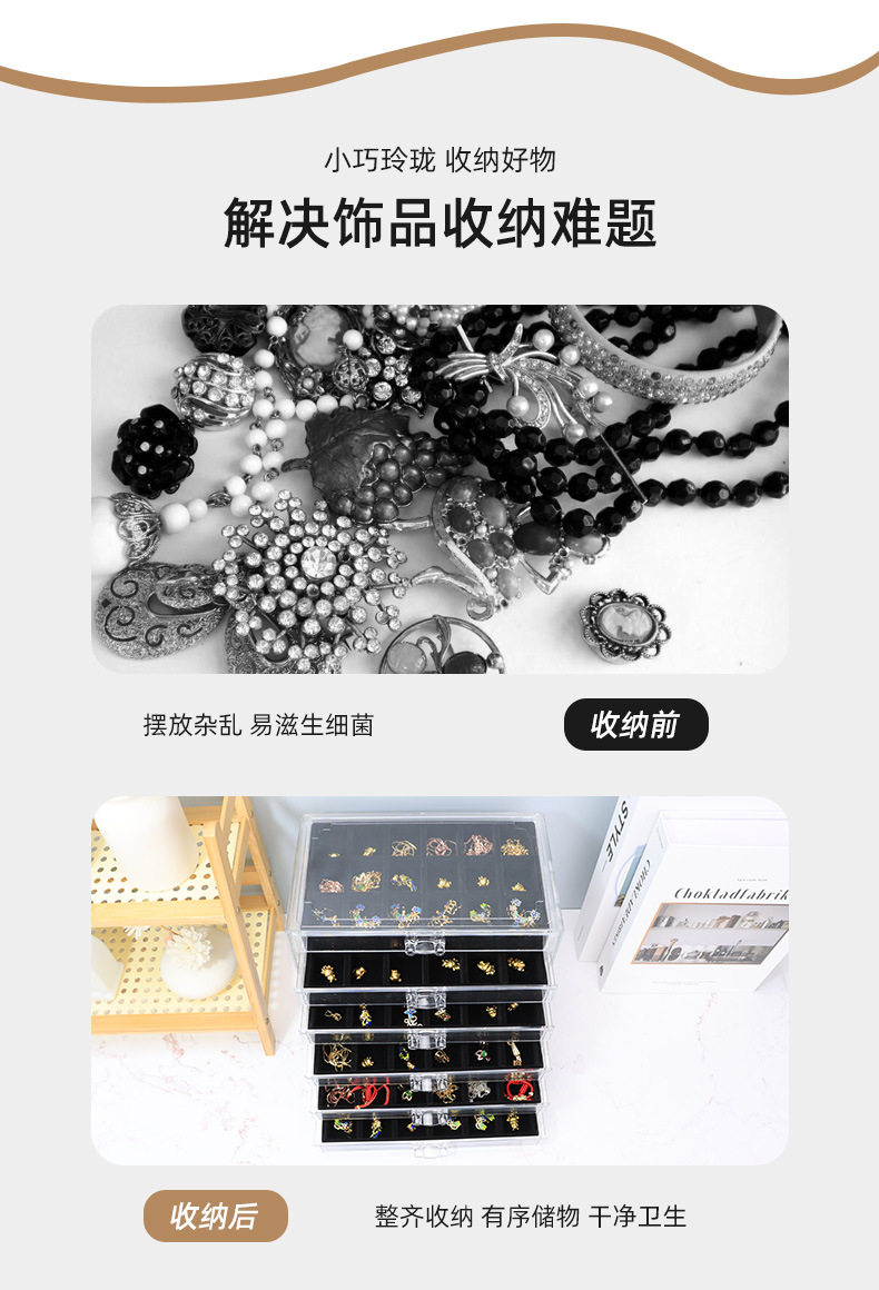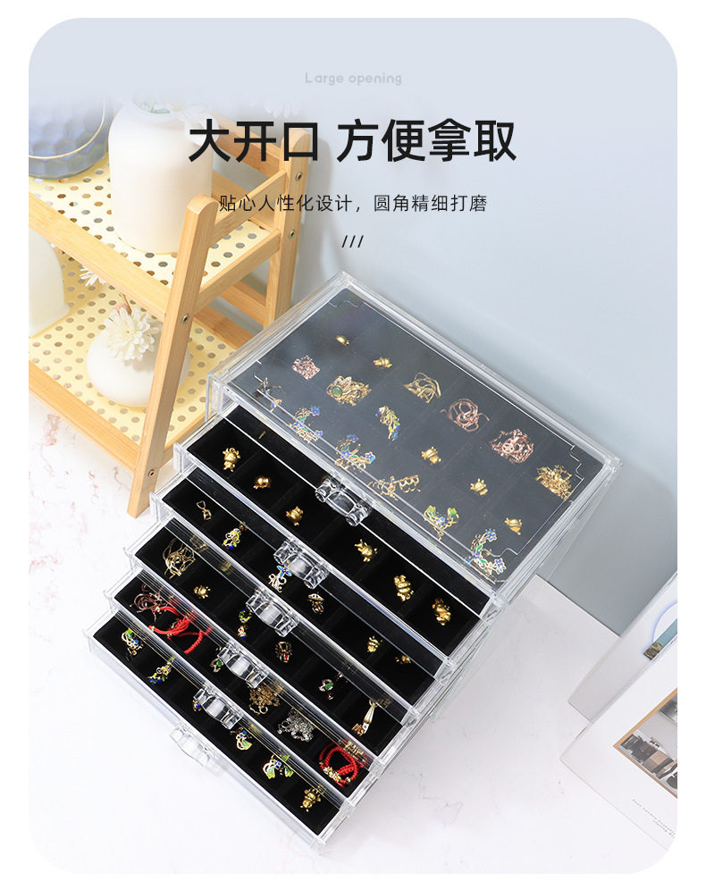 5/6-Layer Multi-Grids Plastic Velvet Storage Box Transparent Drawer-Type Jewelry Jewelry Earrings Ring Jewelry Storage