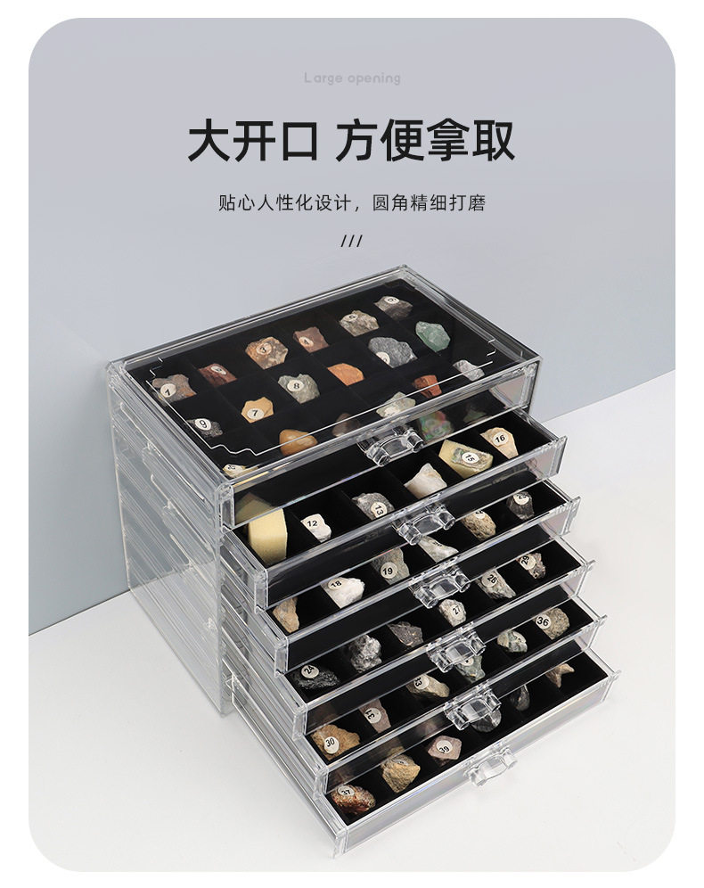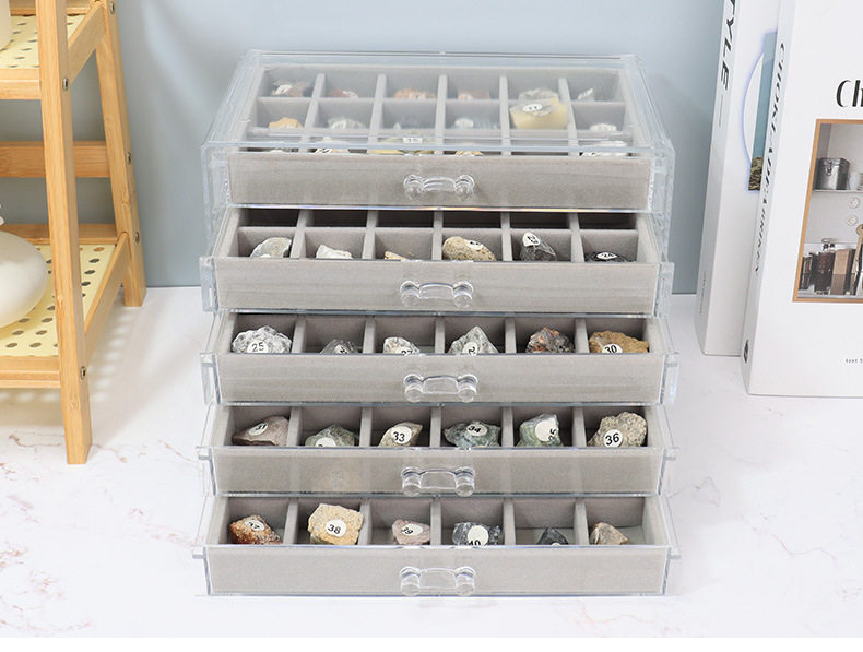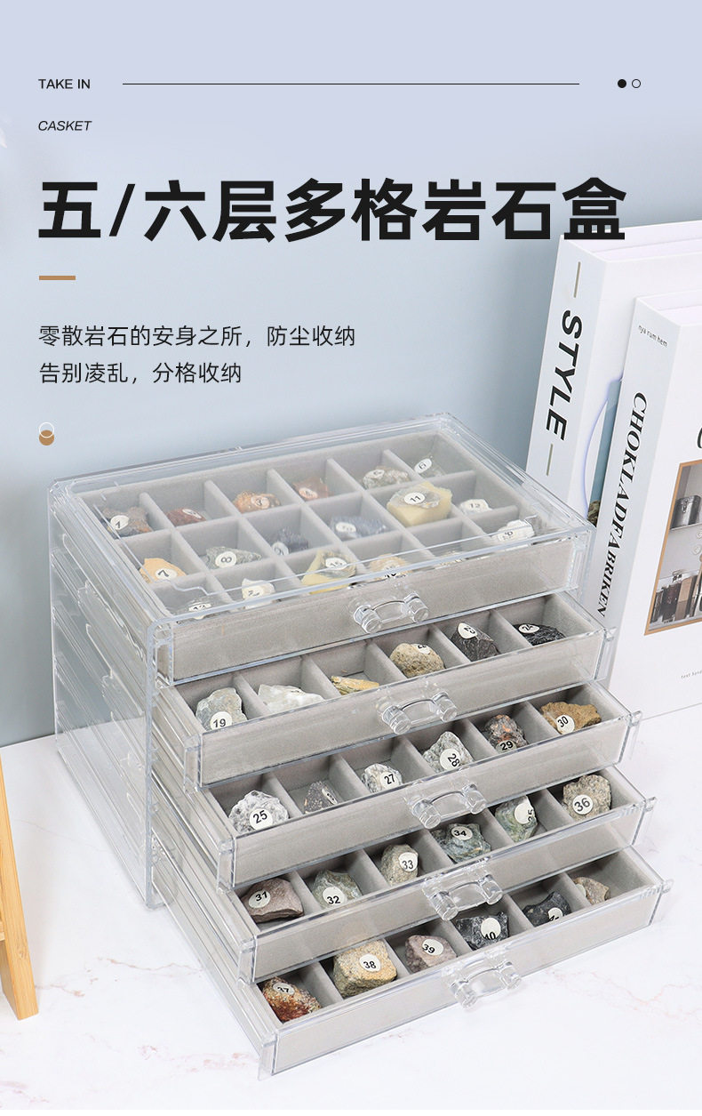5/6-Layer Drawer-Type Multi-Grids Rock Collection Display Box Crystal Stone Jewelry Display Storage Box
