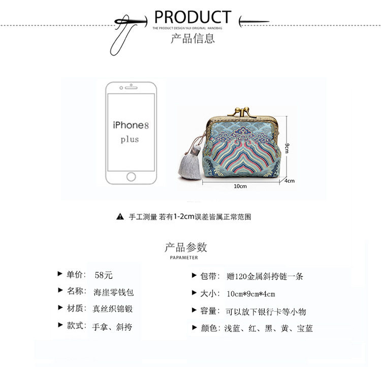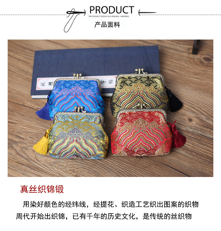 Holiday Gift Retro Chinese Style Women's Silk Brocade Forged Double-Layer Tassel Coin Purse Coin Bag Storage Bag