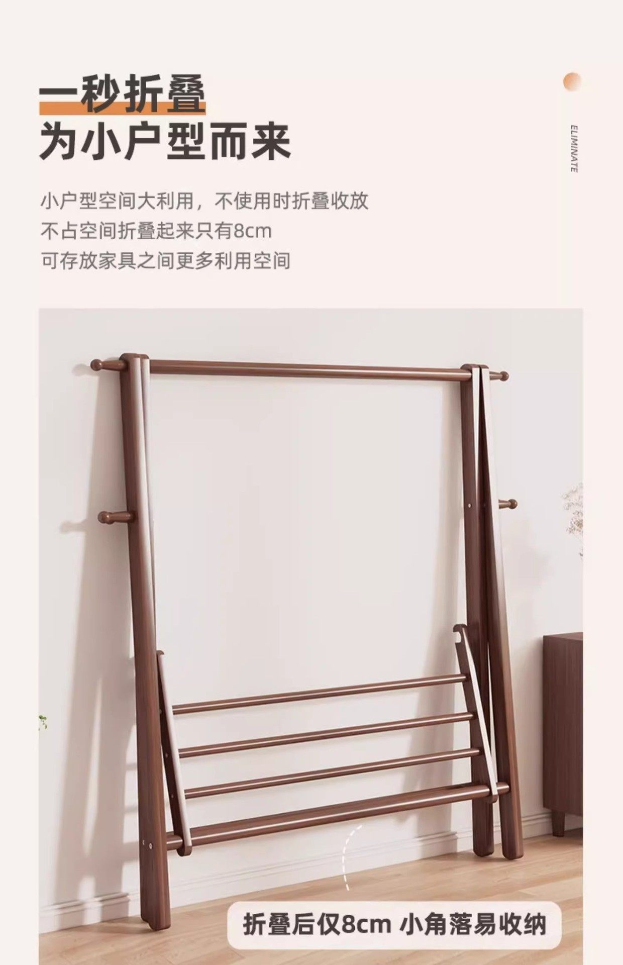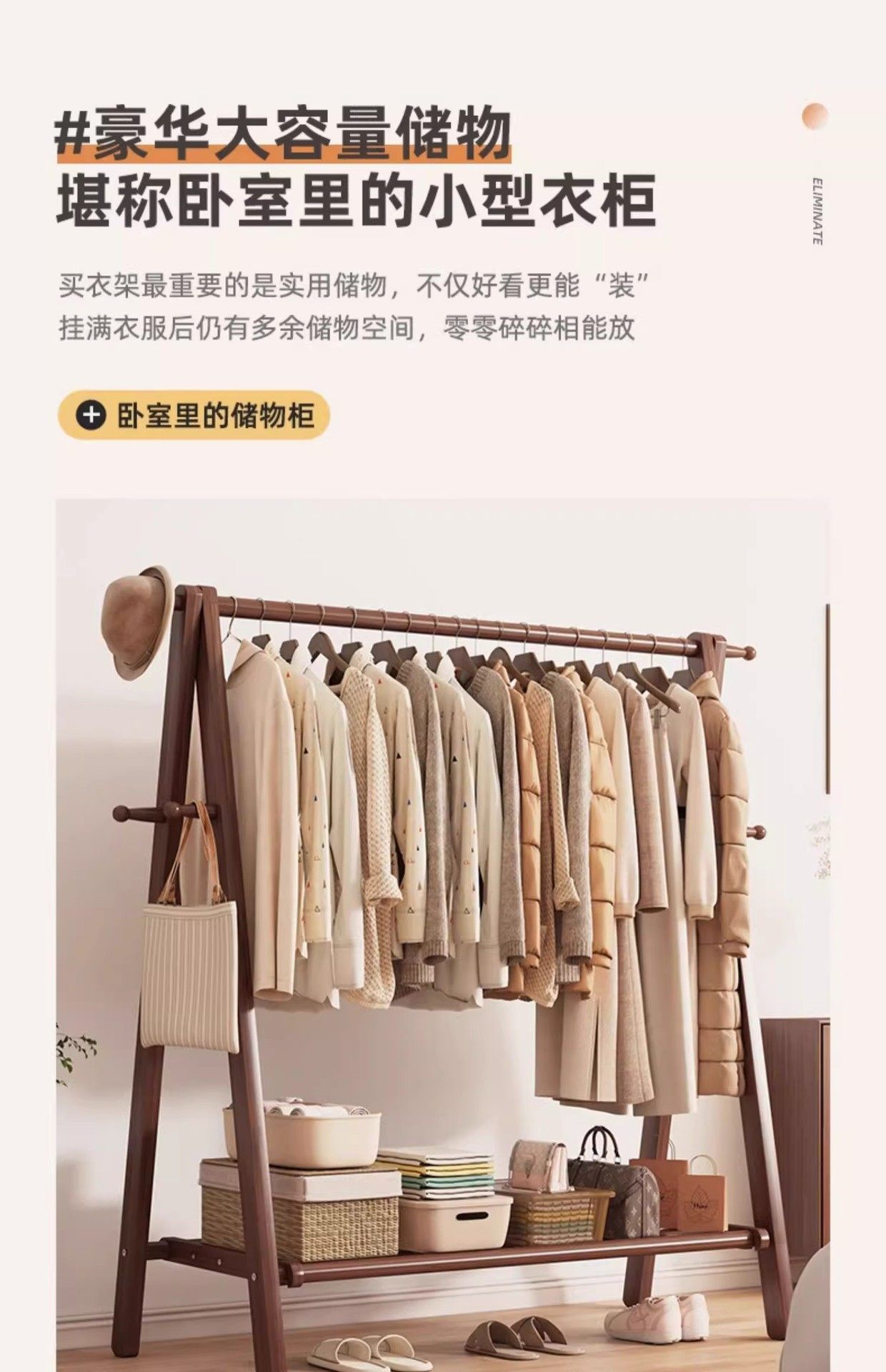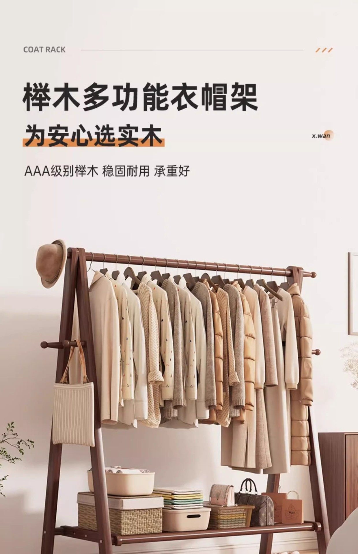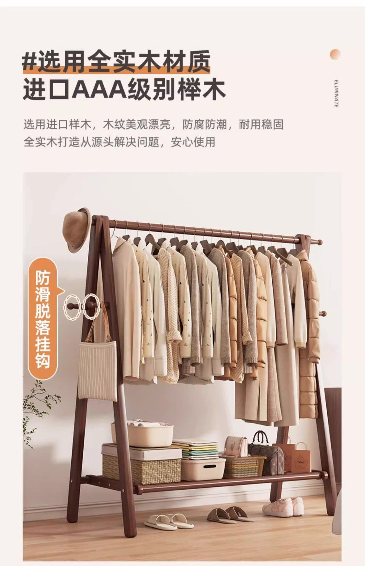 Solid Wood Clothes Hanger Floor-Standing Bedroom Coat Rack Household Clothes Drying Rack Indoor Clothes Storage Rack Wooden Clothes Hanger