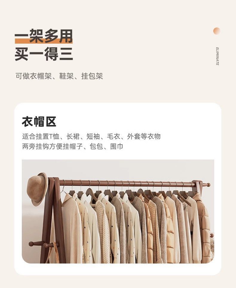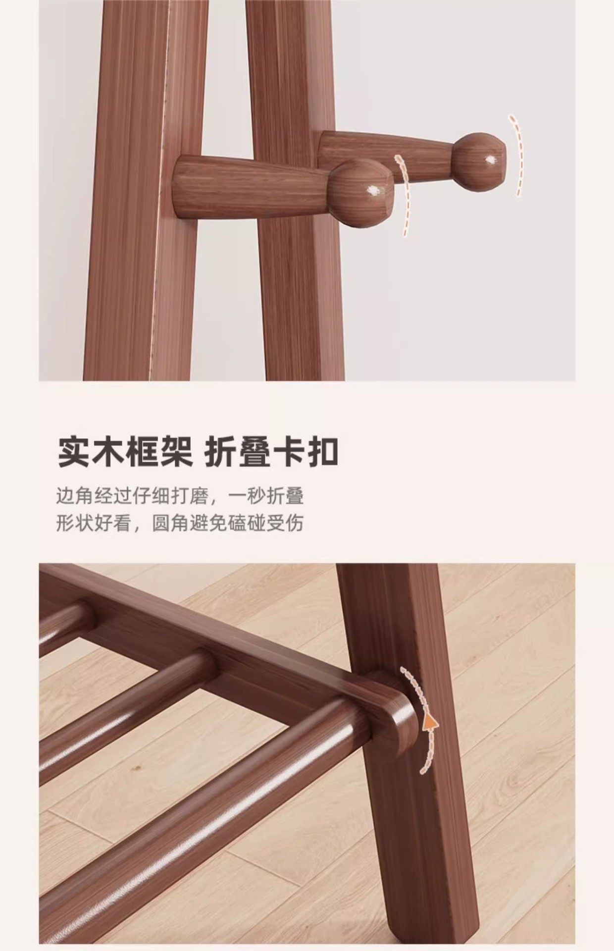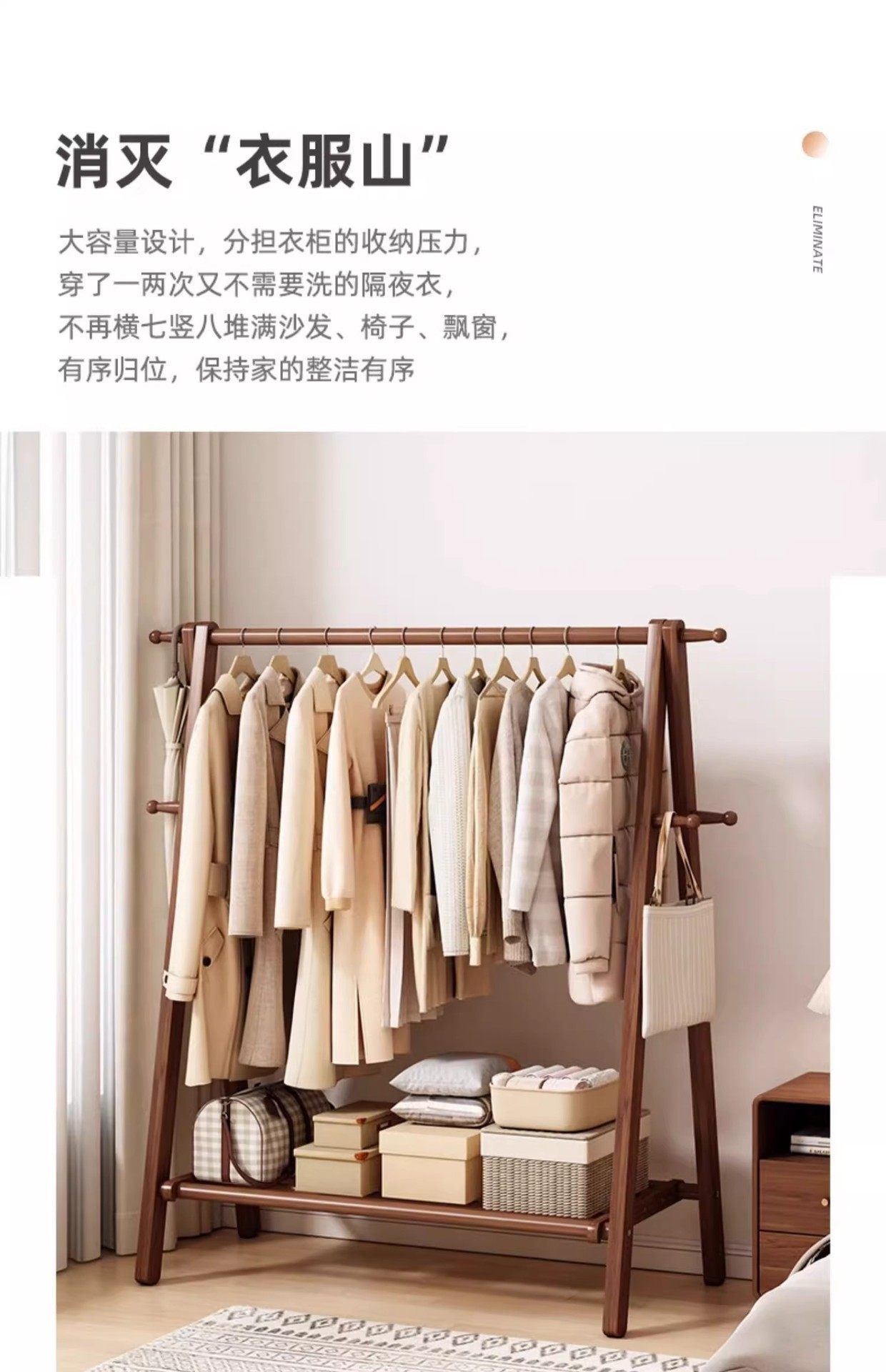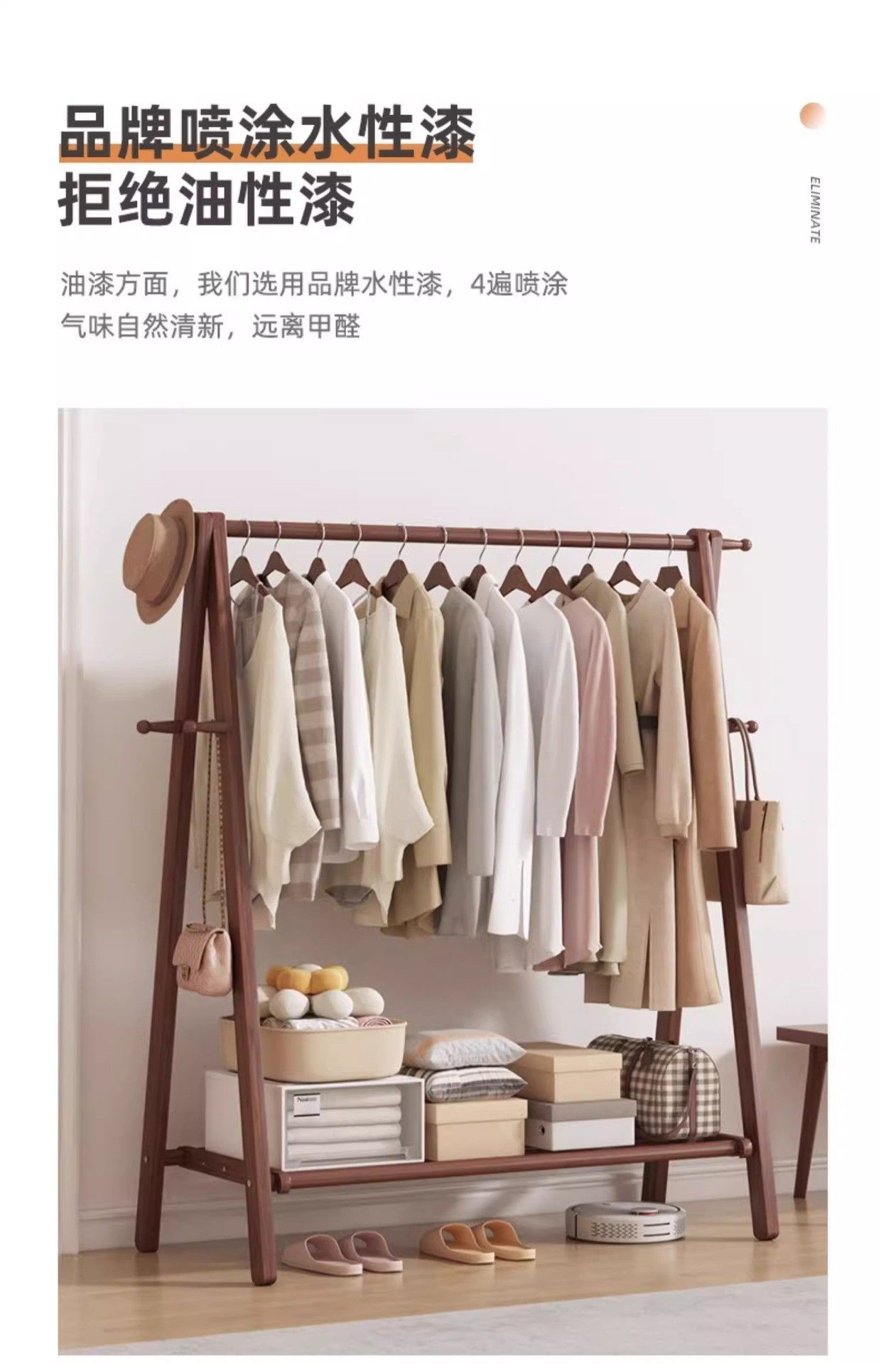 Solid Wood Clothes Hanger Floor-Standing Bedroom Coat Rack Household Clothes Drying Rack Indoor Clothes Storage Rack Wooden Clothes Hanger