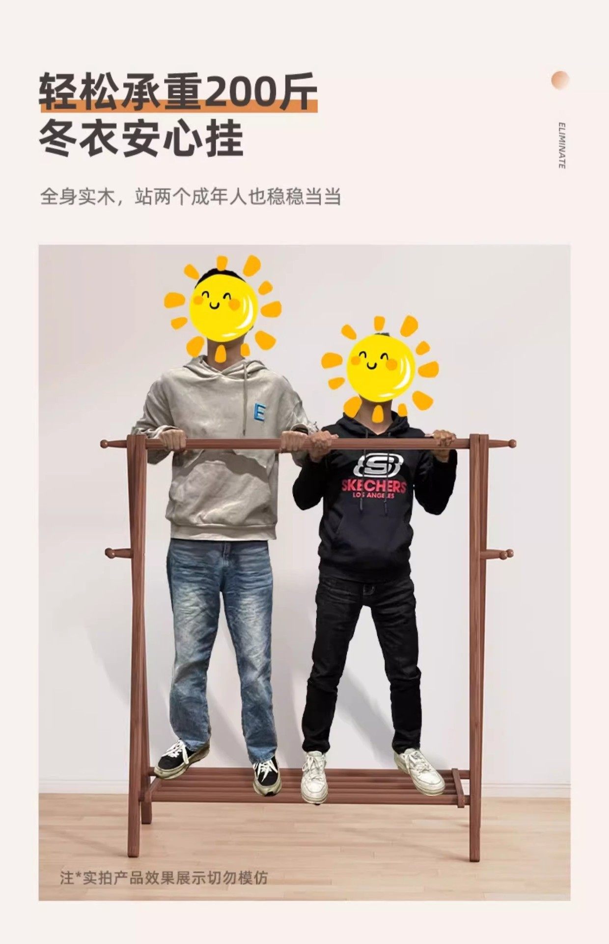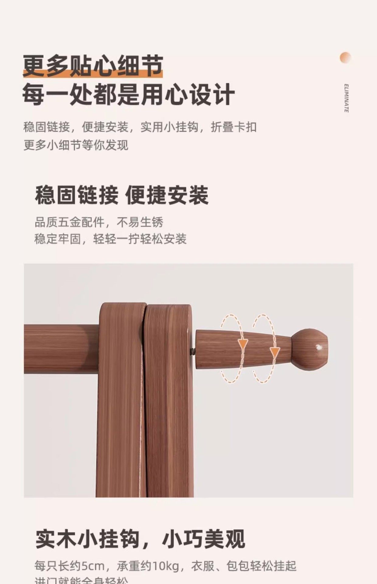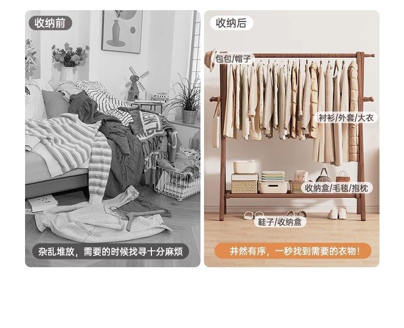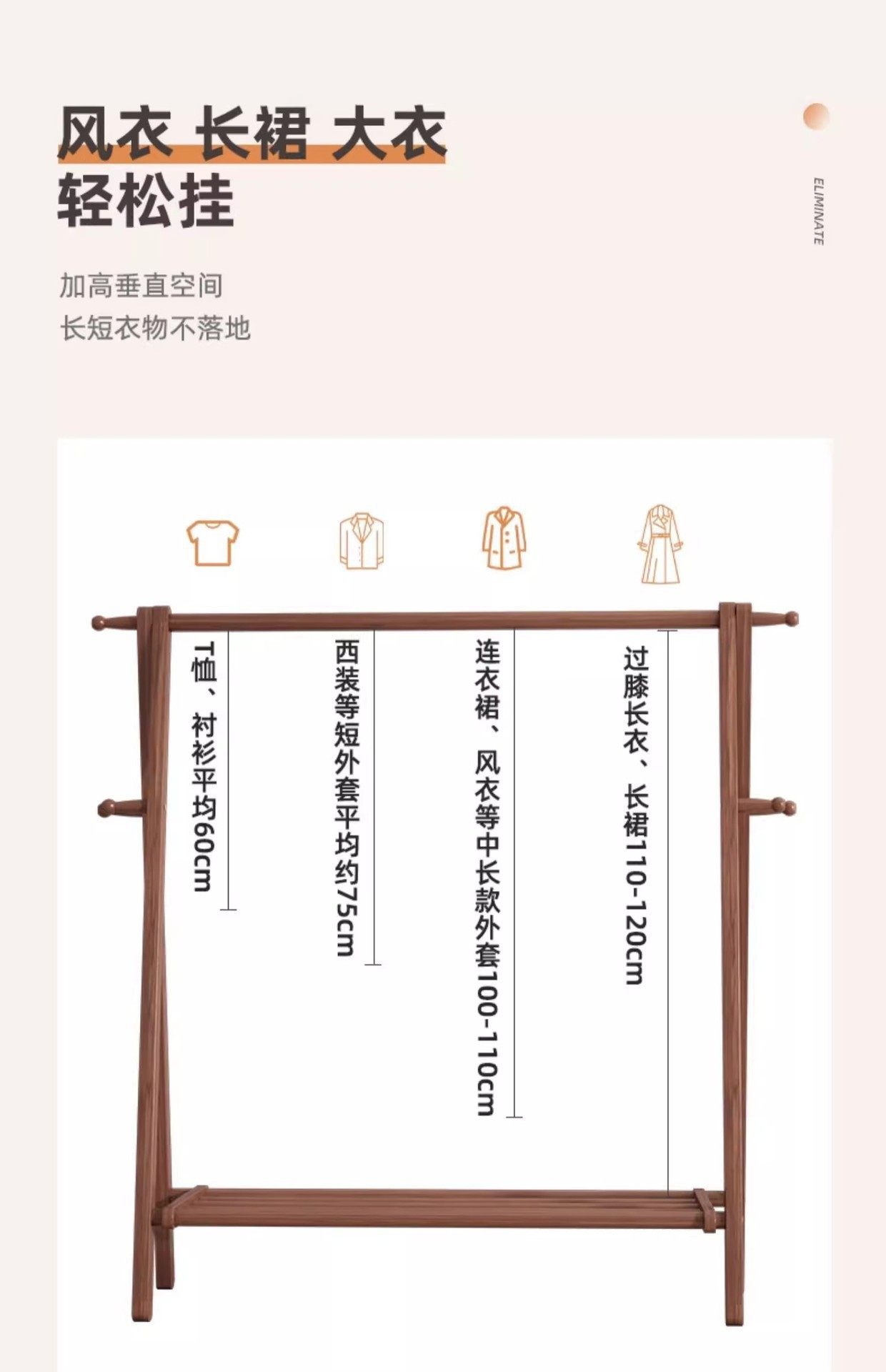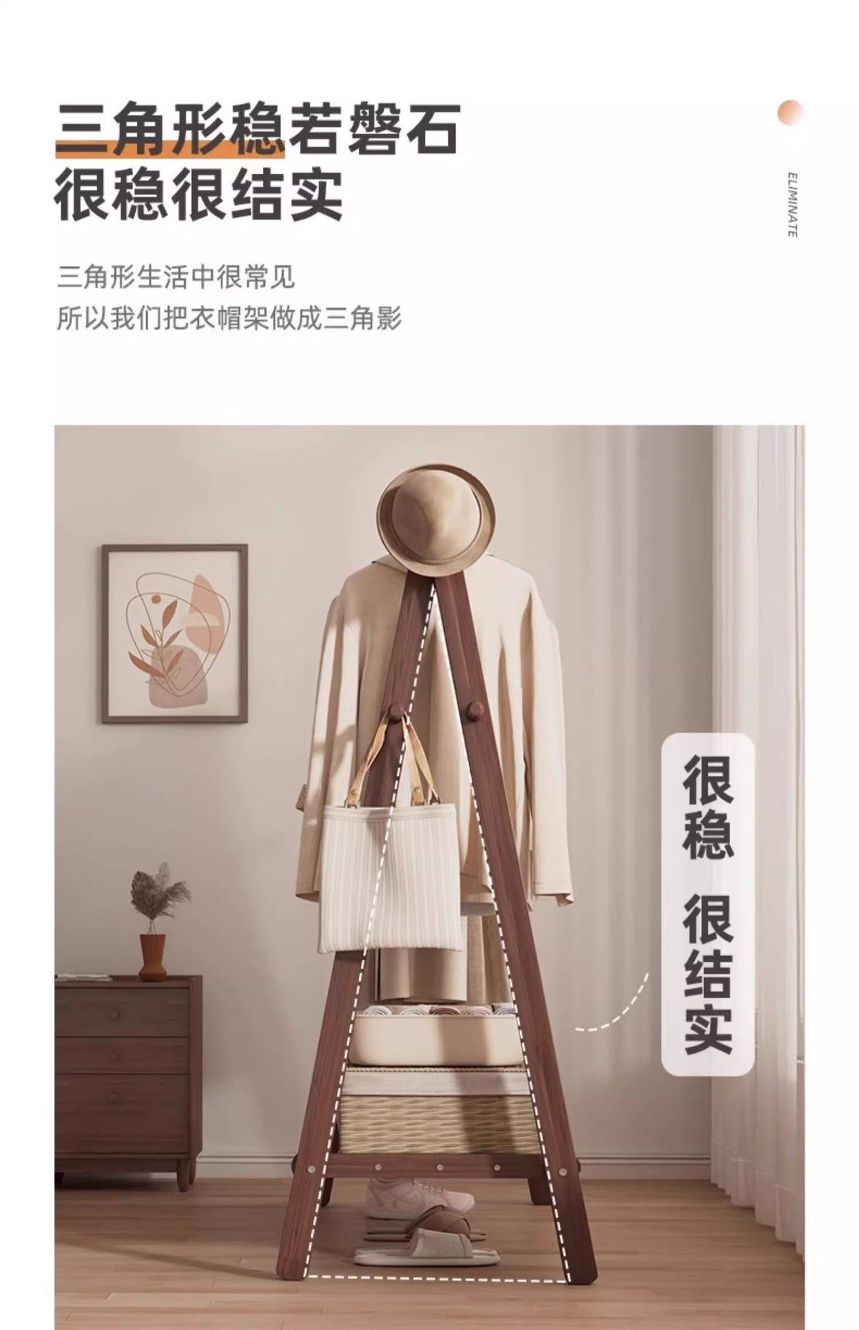 Solid Wood Clothes Hanger Floor-Standing Bedroom Coat Rack Household Clothes Drying Rack Indoor Clothes Storage Rack Wooden Clothes Hanger