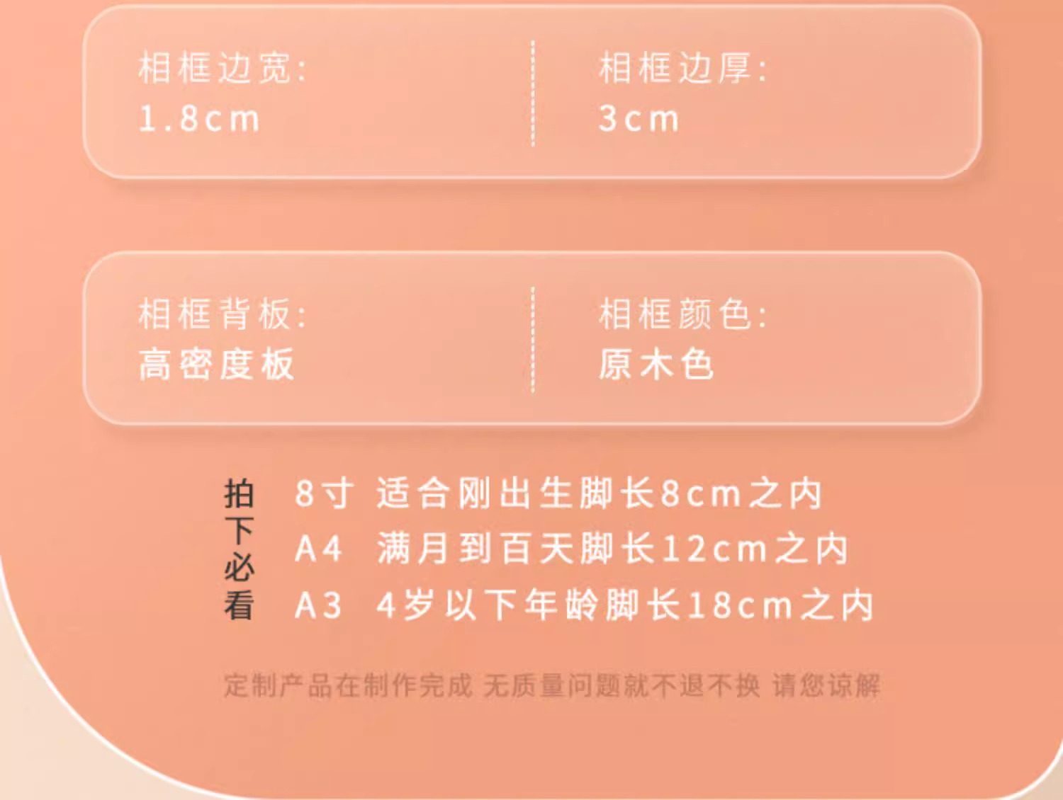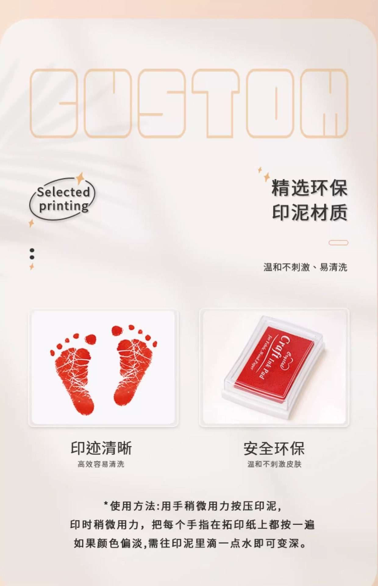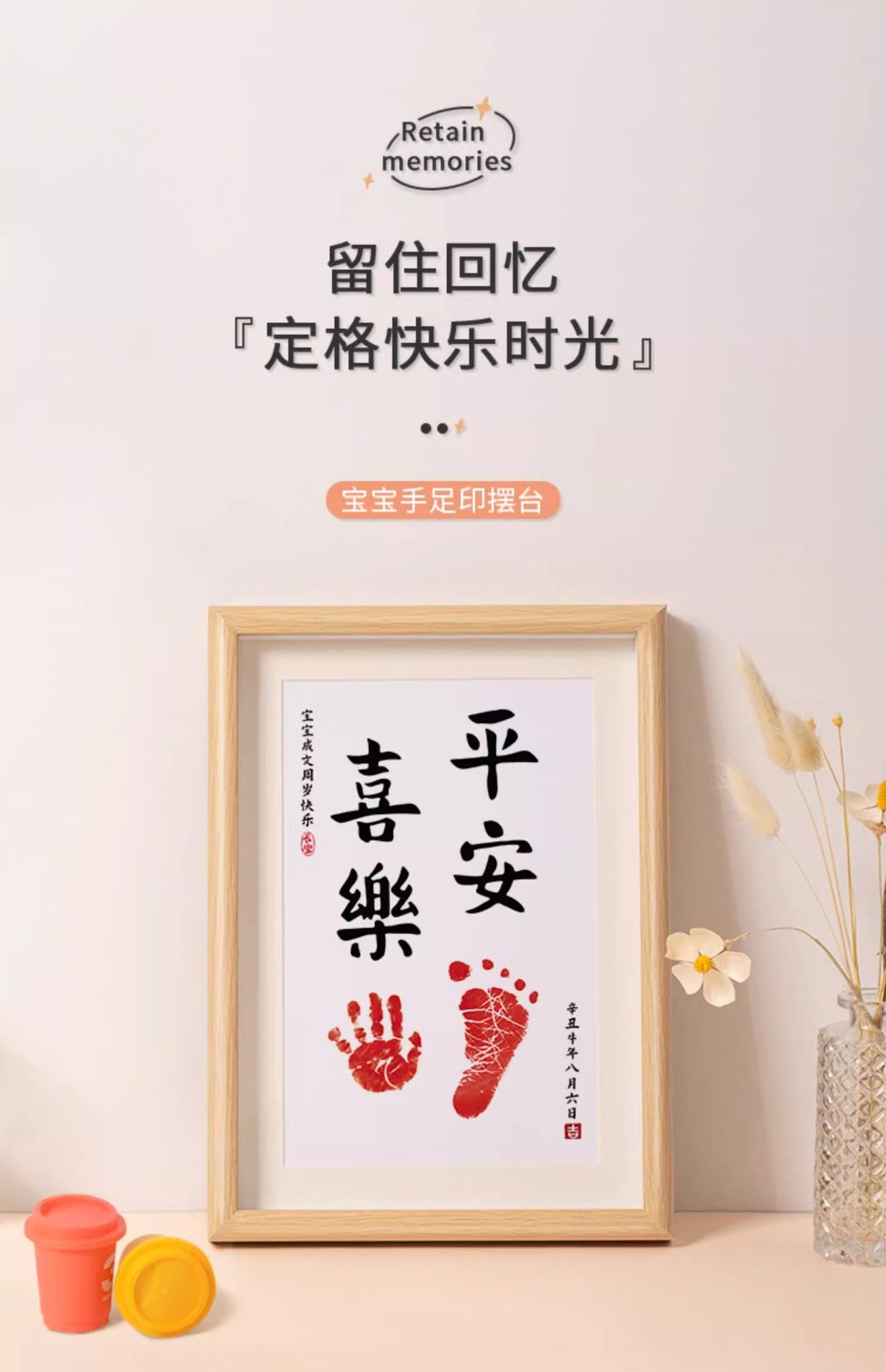 One-Year-Old Hand and Foot Print Photo Frame, 100-Day Full Moon Baby Ritual Souvenir, Baby Contentment and Happiness Calligraphy and Painting