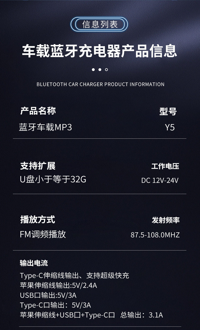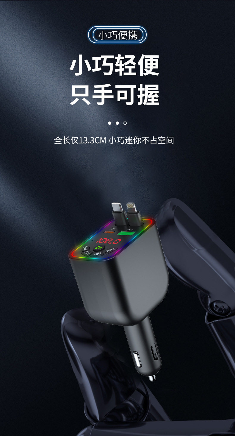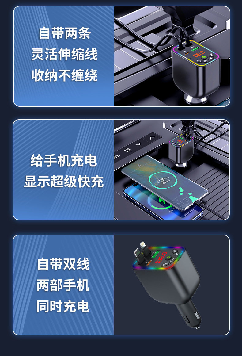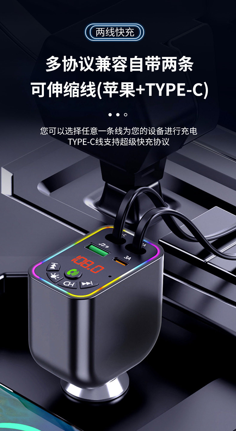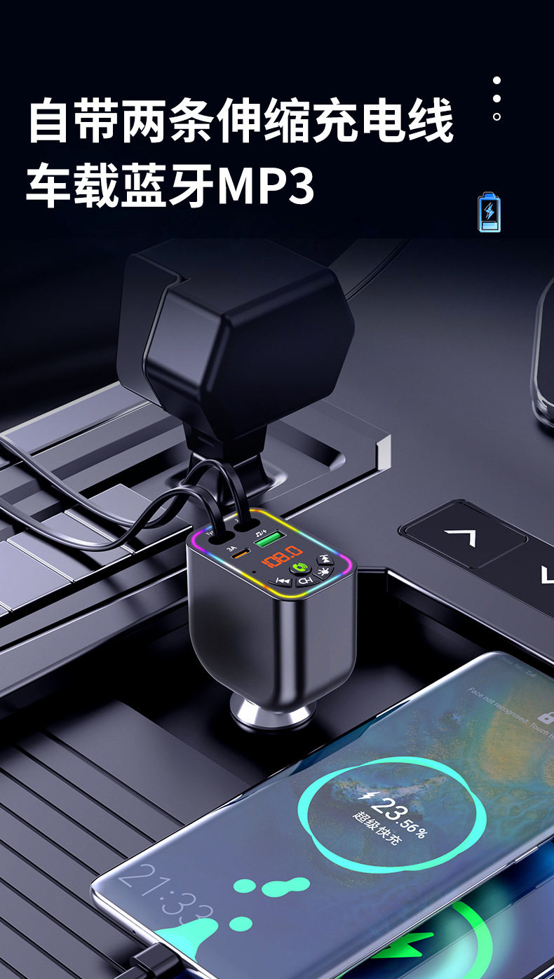 Car Charger Super Fast Charge Y5 Car Bluetooth MP3 Cigarette Light One-to-Four Telescopic Line Car MP3