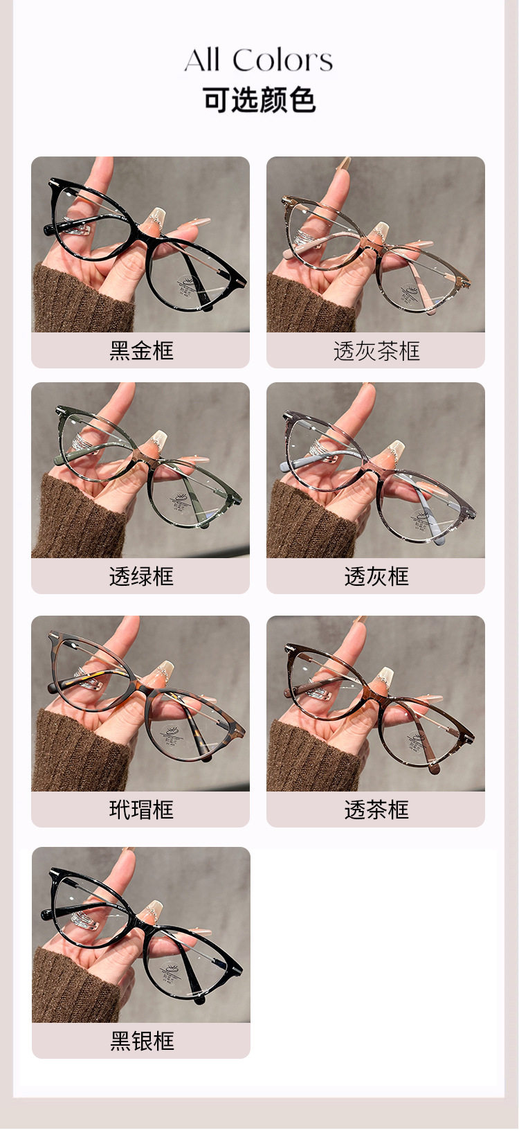| Frame color | Black gold frame,Transparent gray tea frame,Transparent green frame,Transparent gray frame,Tortoiseshell frame,Through tea frame,Black silver frame |
