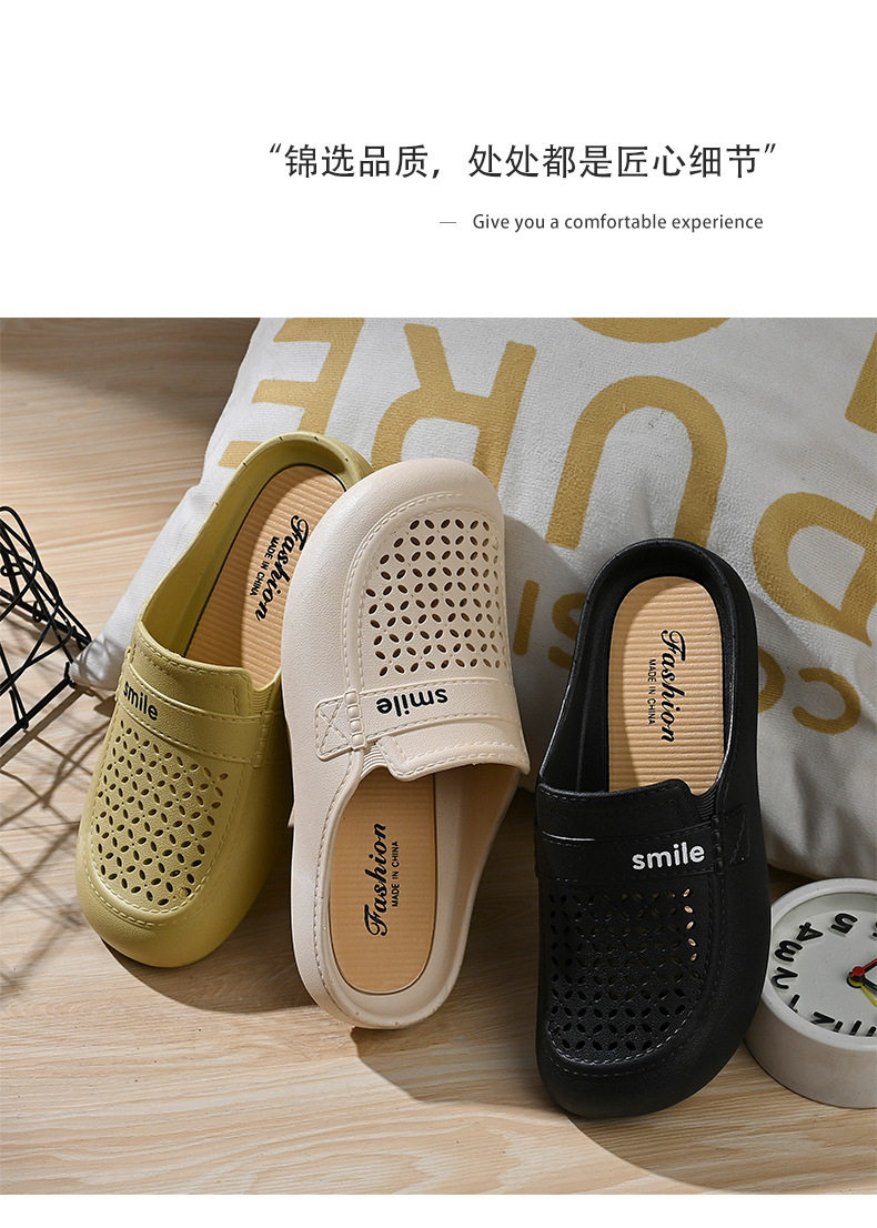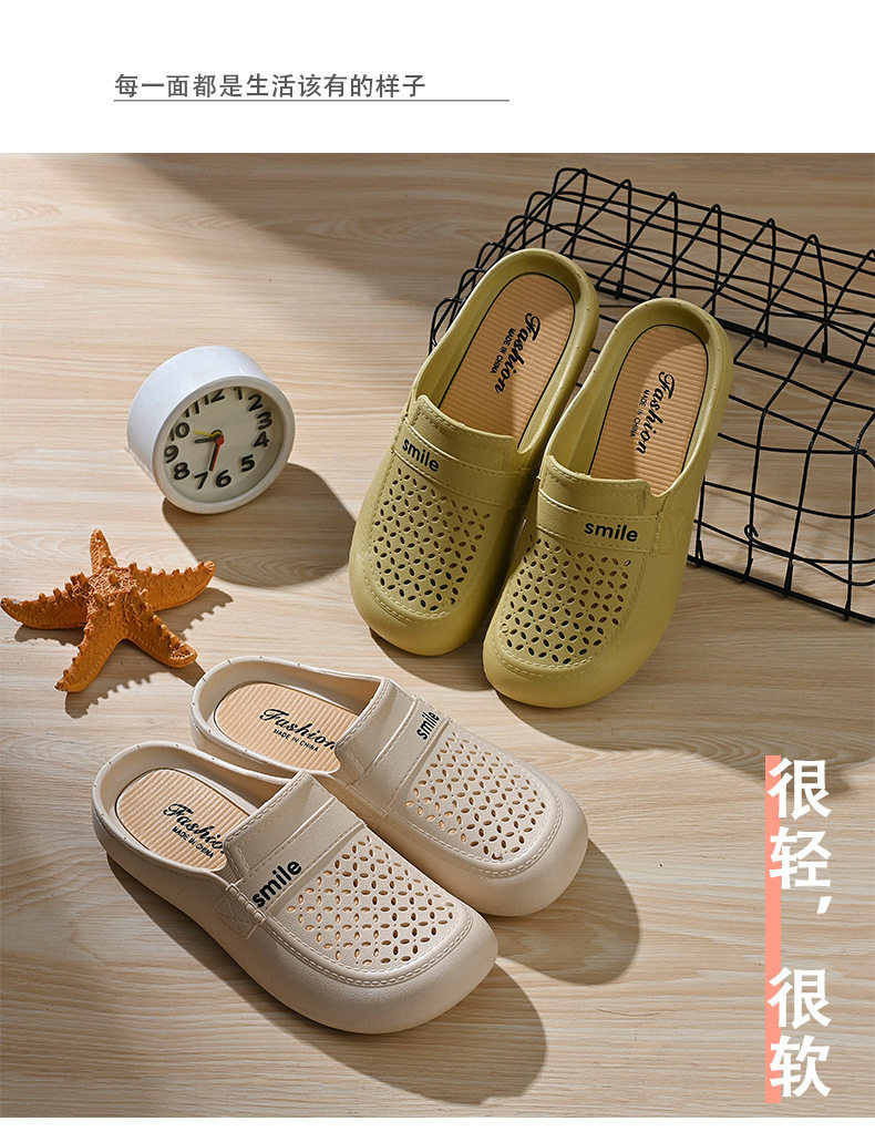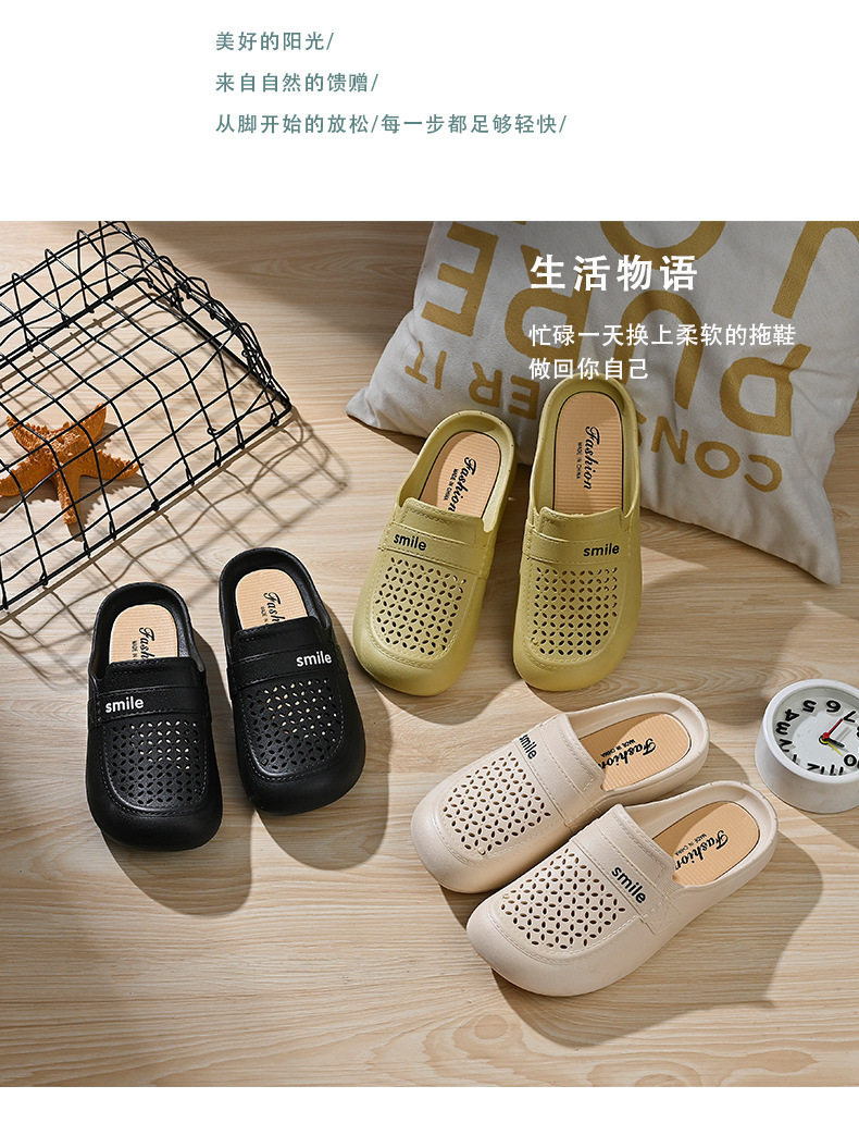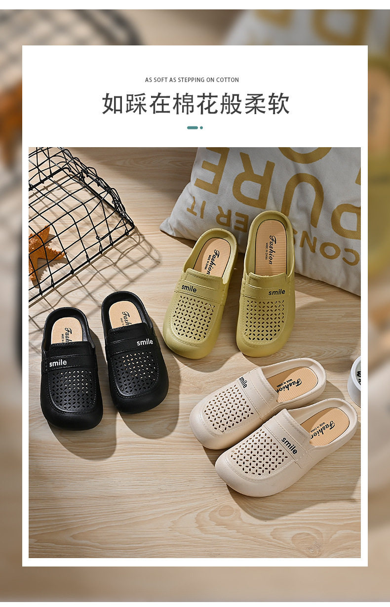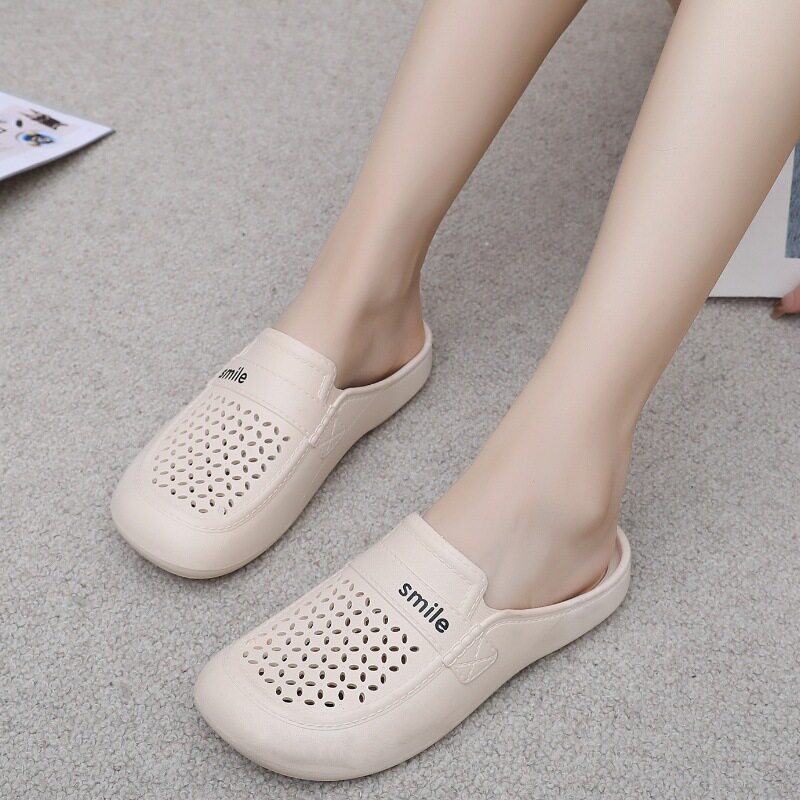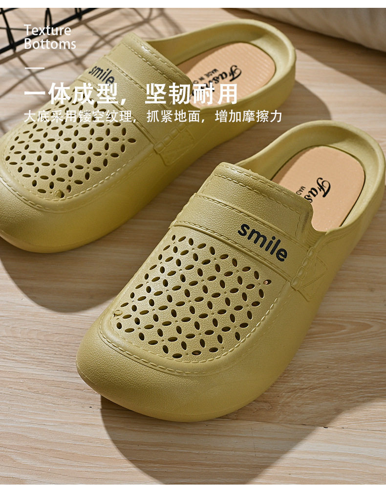 New Flat Non-Slip Middle-Aged Mom Closed-Toe Slippers, Faux Leather Mid-Heel Clogs for Women