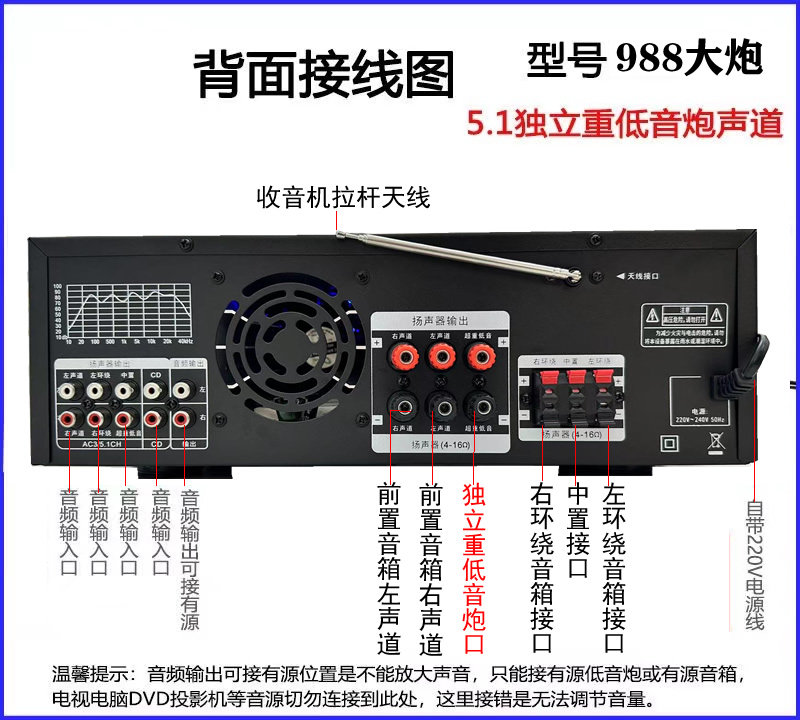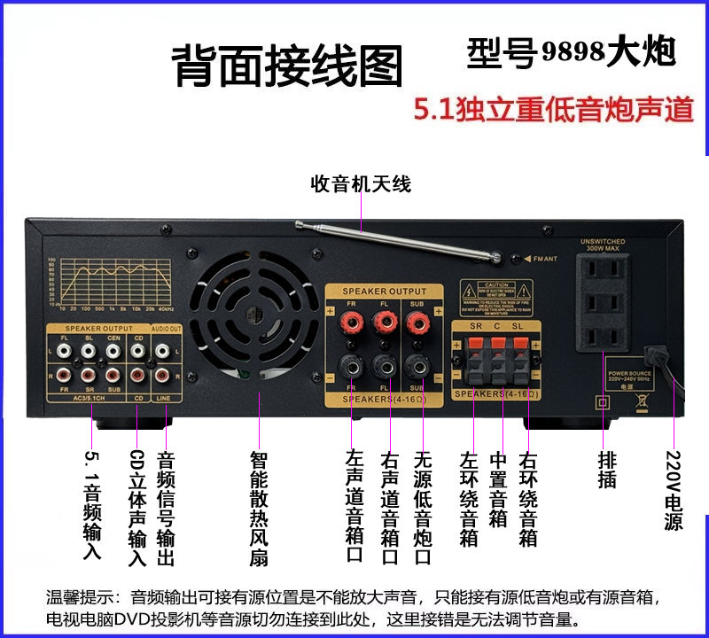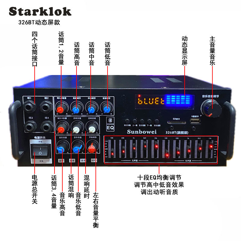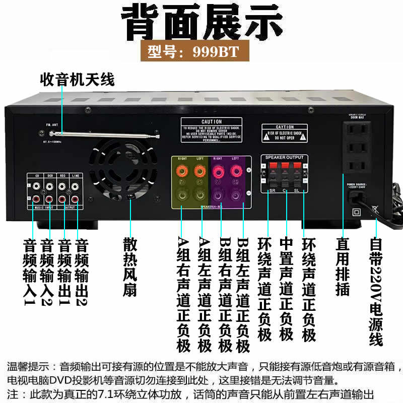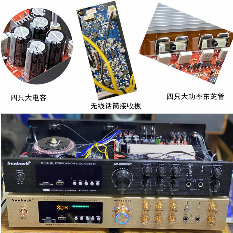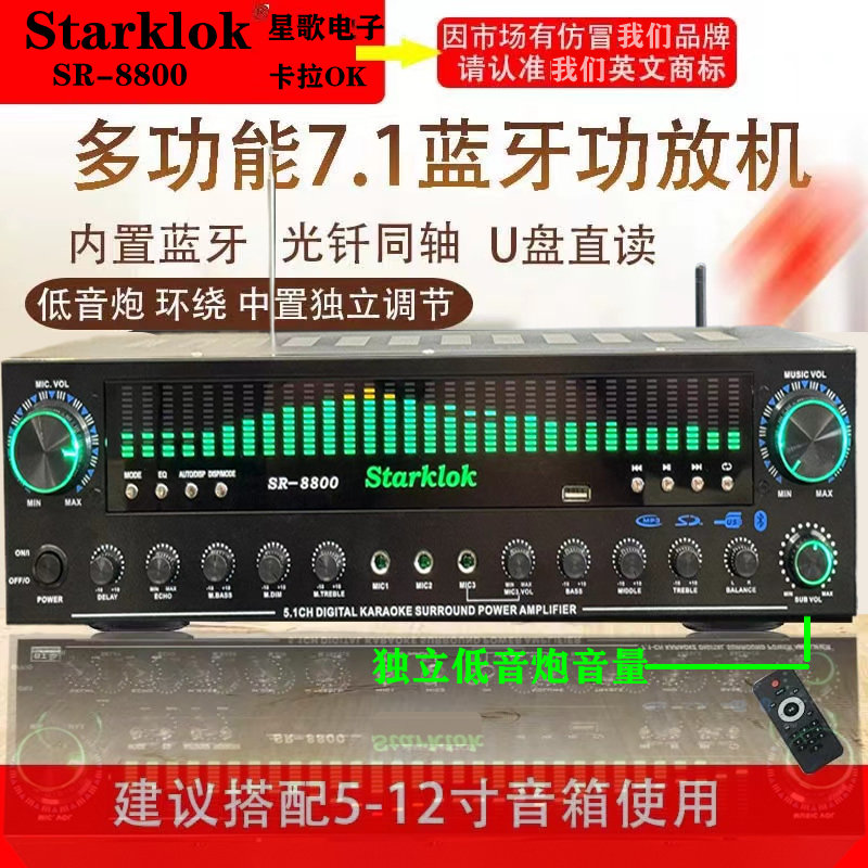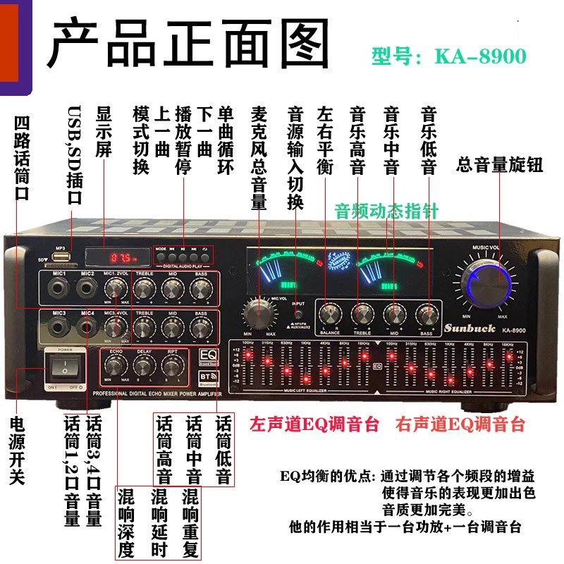 | Color | 338st-400w power amplifier (with bluetooth) comes in random colors,New 338bt gold-500w with screen and left and right balance,New 338bt black-500w with screen and left and right balance,338st-400w (with bluetooth),6th generation 680 black-upgraded large screen optimization line,6th generation 680 gold-upgraded large screen optimization line,Seventh generation gold 298bt-400w (with bluetooth),Seventh generation black 298bt-400w (with bluetooth),Av9898-1000w5.1 independent bass,988bt-8 tube 5.1 independent bass port,Ka8900 mixer amplifier host-1000w,999 fever double bull ultimate edition-1200w,Golden eleventh generation 6399bt-1000w upgraded version,Black eleventh generation 6288-1000w,Gold eleventh generation 6288bt-1000w,The eighth generation 669bt-aluminum alloy panel dynamic screen,Ninth generation 666bt-800w (bluetooth),Tenth generation version 6060-1000w bluetooth,326bt flagship-600w (bluetooth),326z exclusive edition-800w bluetooth,5.1 green screen version-sr8800 independent bass,5.1 independent bass-8 tube large screen 555,5.1 blue screen version-sr8800 independent bass,5.1 red screen version-sr8800 independent bass |
