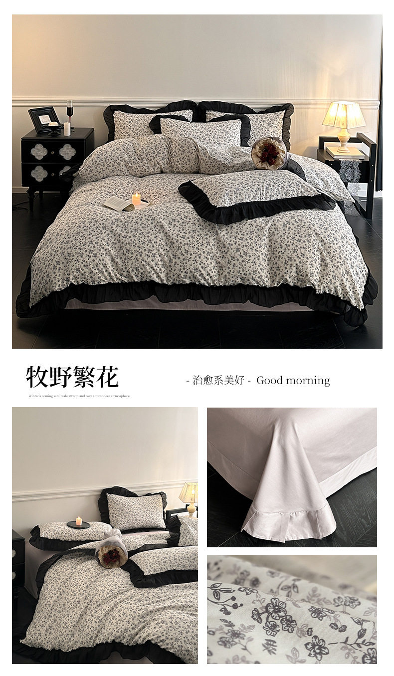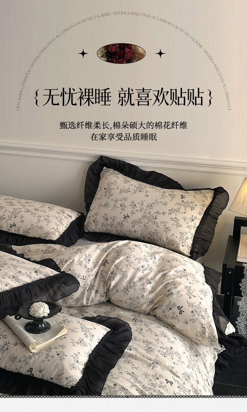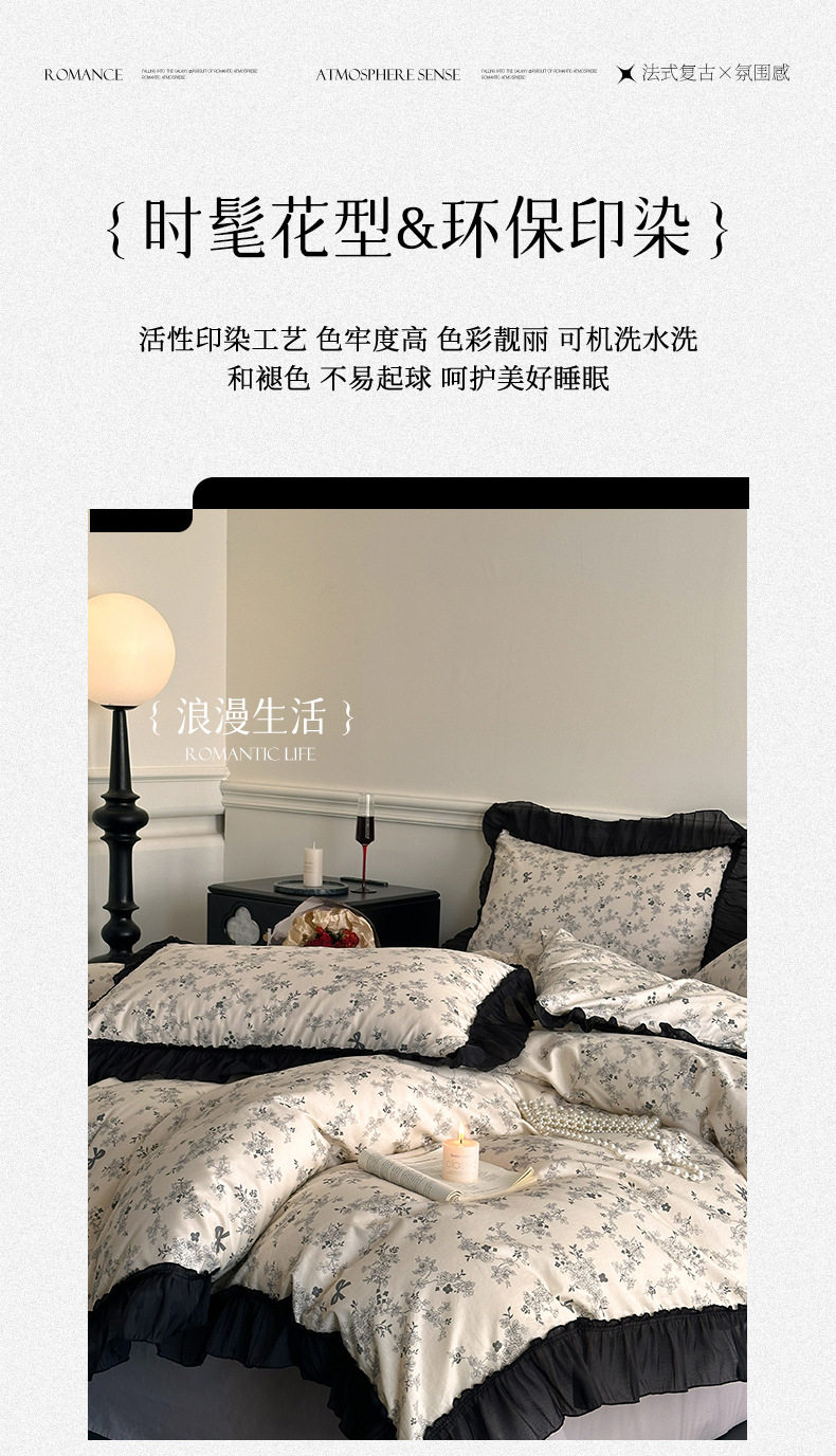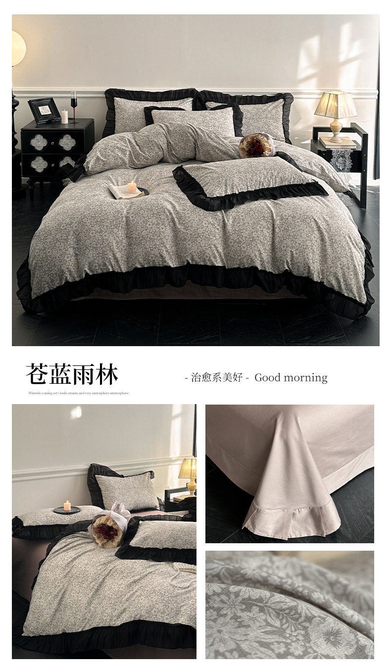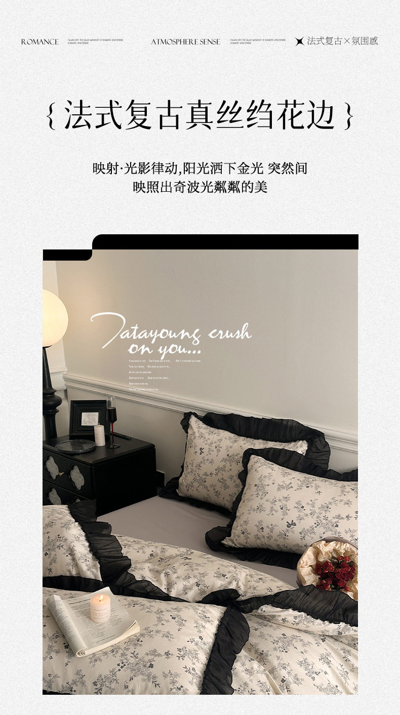 Cotton French Retro Four-piece Princess Style Lace Hepburn Style Cotton Student Dormitory Three-piece Quilt Cover Bed Sheet