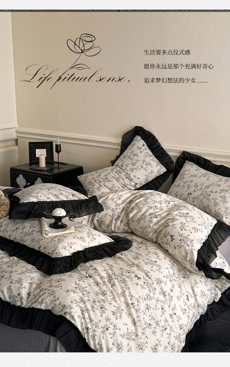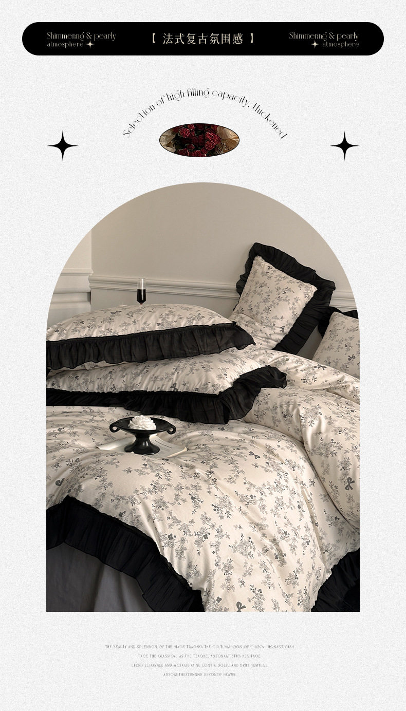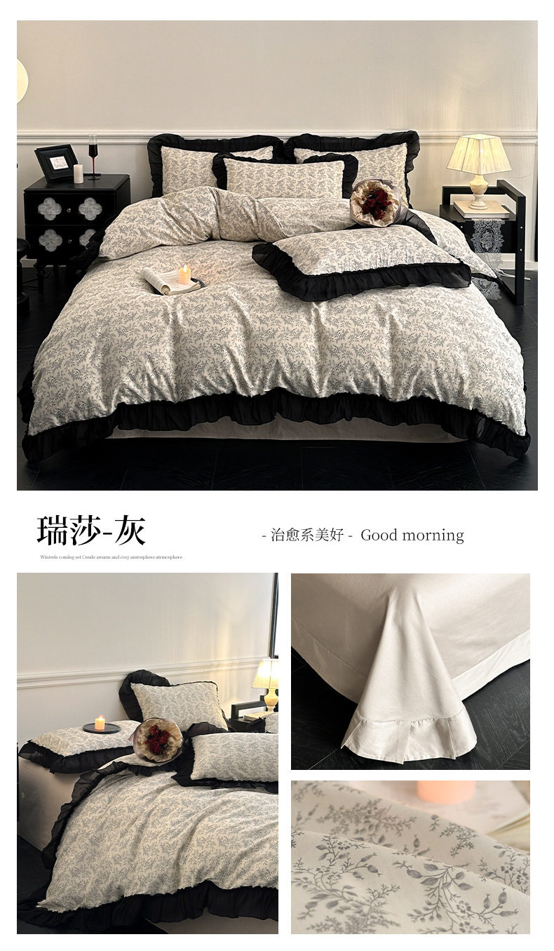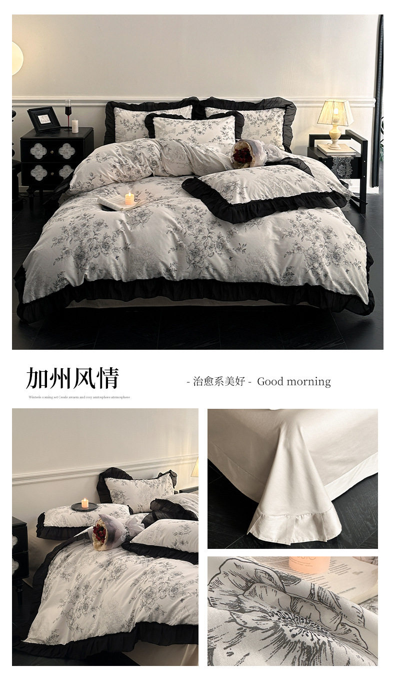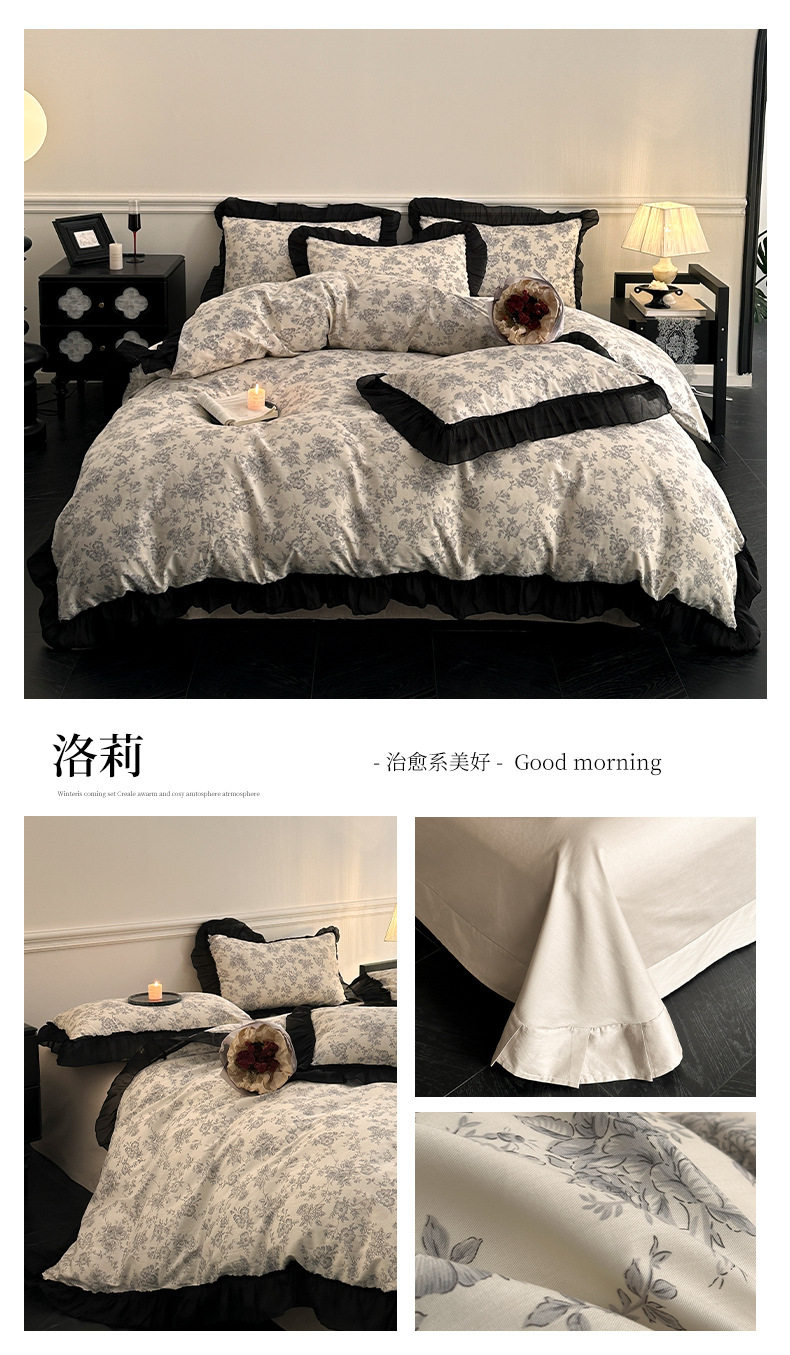 Cotton French Retro Four-piece Princess Style Lace Hepburn Style Cotton Student Dormitory Three-piece Quilt Cover Bed Sheet