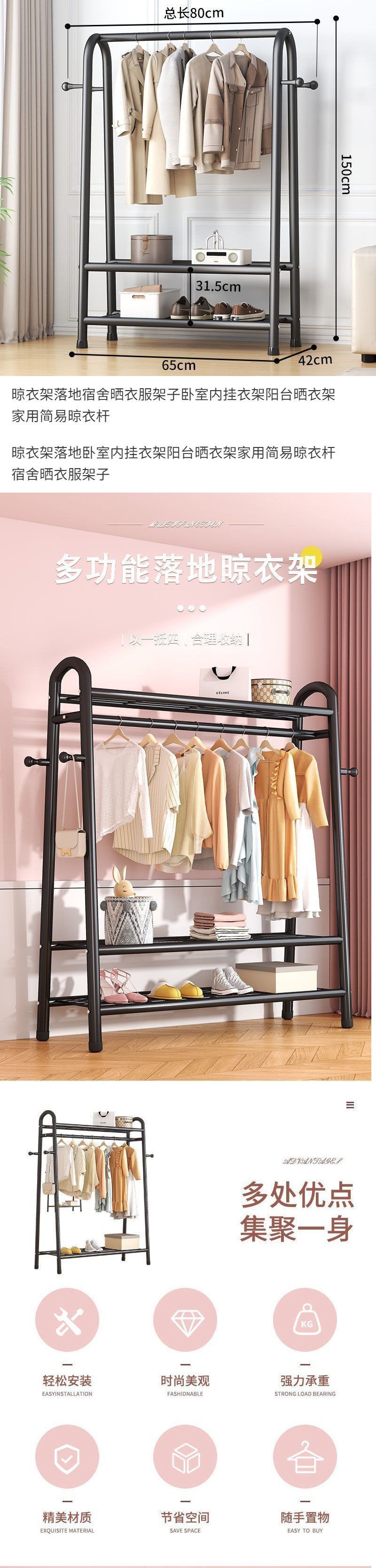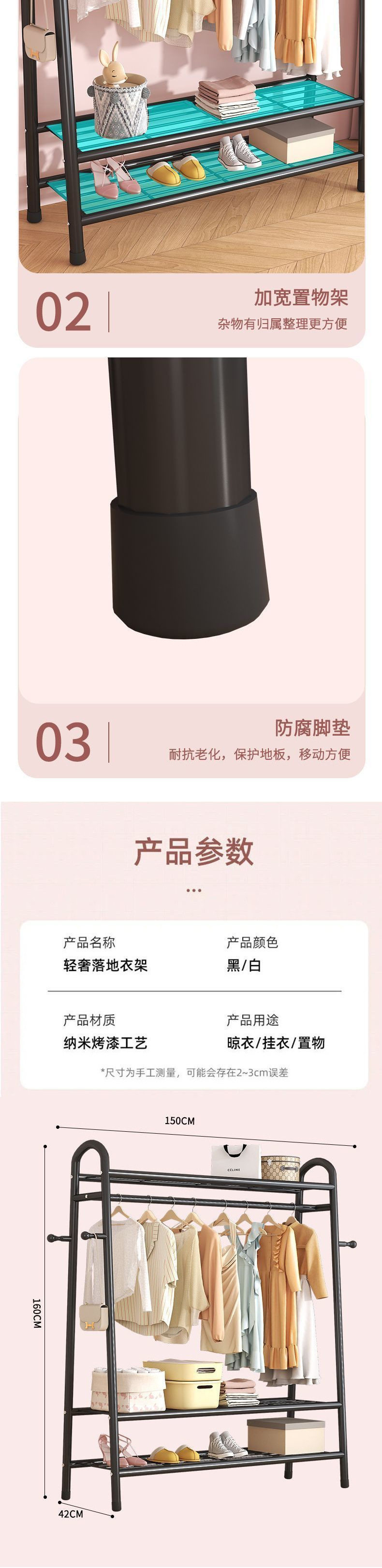 | Color | 75-120.01cm simple telescopic,60.01cm black [single-layer shelf],80.01cm black [single storage net + 4 clothes hooks],80.01cm white [single storage net + 4 clothes hooks],100.01cm black [single storage net + 4 clothes hooks],100.01cm white [single storage net + 4 clothes hooks],100.01cm gold [single storage net + 4 clothes hooks],80.01cm black [double storage net + 4 clothes hooks],80.01cm white [double storage net + 4 clothes hooks],120.01cm black [single storage net + 4 clothes hooks],120.01cm white [single storage net + 4 clothes hooks],120.01cm gold [single storage net + 4 clothes hooks],100.01cm black [double storage net + 4 clothes hooks],100.01cm white [double storage net + 4 clothes hooks],100.01cm gold [double storage net + 4 clothes hooks],100.01cm black [upper and lower double nets + 4 clothes hooks],100.01cm white [upper and lower double nets + 4 clothes hooks],120.01cm black [double storage net + 4 clothes hooks],120.01cm white [double storage net + 4 clothes hooks],100.01cm gold [upper and lower double nets + 4 clothes hooks],120.01cm gold [double storage net + 4 clothes hooks],120.01cm black [upper and lower double nets + 4 clothes hooks],120.01cm white [upper and lower double nets + 4 clothes hooks],120.01cm gold [upper and lower double nets + 4 clothes hooks],Large capacity 100.01cm black [upper and lower three nets + 4 clothes hooks],Large capacity 100.01cm white [upper and lower three nets + 4 clothes hooks],Large capacity 100.01cm gold [upper and lower three nets + 4 clothes hooks],Large capacity 120.01cm black [upper and lower three nets + 4 clothes hooks],Large capacity 120.01cm white [upper and lower three nets + 4 clothes hooks],Large capacity 120.01cm gold [upper and lower three nets + 4 clothes hooks],Large capacity 135.01cm black [upper and lower three nets + 4 clothes hooks],Large capacity 135.01cm white [upper and lower three nets + 4 clothes hooks],Large capacity 135.01cm gold [upper and lower three nets + 4 clothes hooks],132.01-black [upper and lower double nets + side nets + coat hooks],132.01-white [upper and lower double nets + side nets + coat hooks],132.01-gold [upper and lower double nets + side nets + coat hooks] |