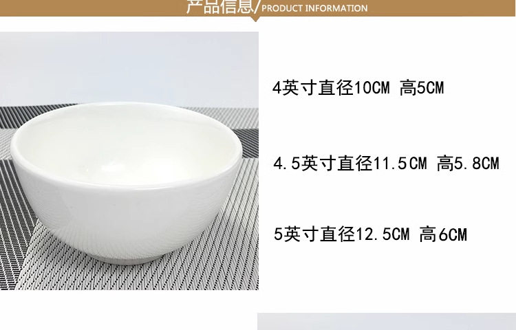 | Color | 4inch small soup bowl, diameter 10cm,4inch small soup bowls (pack of 5),4inch small soup bowl (thickened) 5 pieces,4inch small soup bowl (thickened) diameter 10cm,4.5inch rice bowls (pack of 5),4.5inch rice bowl diameter 11.5cm,4.5inch rice bowls (thickened) 5 pieces,4.5inch rice bowl (thickened) diameter 11.5cm,5inch straight bowl diameter 12.5cm,5inch straight bowl (thickened) diameter 13cm,6inch straight bowl diameter 15cm,7inch straight bowl diameter 17.5cm,8inch straight bowl diameter 20.3cm,9inch straight bowl diameter 23cm,4.5inch wing bowl cg,4.5inch thickened wing bowl,4.75inch wing bowl cg,4.75inch thickened wing bowl,5inch wing bowl,4inch thick korean bowl,4.25inch thick korean bowl,4.5inch thick korean bowl,4.25inch korean bowl cg,4.75inch korean bowl cg,4.5inch thickened zhengyang bowl,7 shallow plates + 4.5 bowls + curved spoon,7 flat plates + 4.5 bowls + curved spoon,7 shallow plates + 4.5 fin bowls + curved spoon,7 flat plates + 4.5 wing bowls + curved spoon,Curved spoon (pack of 5) |
