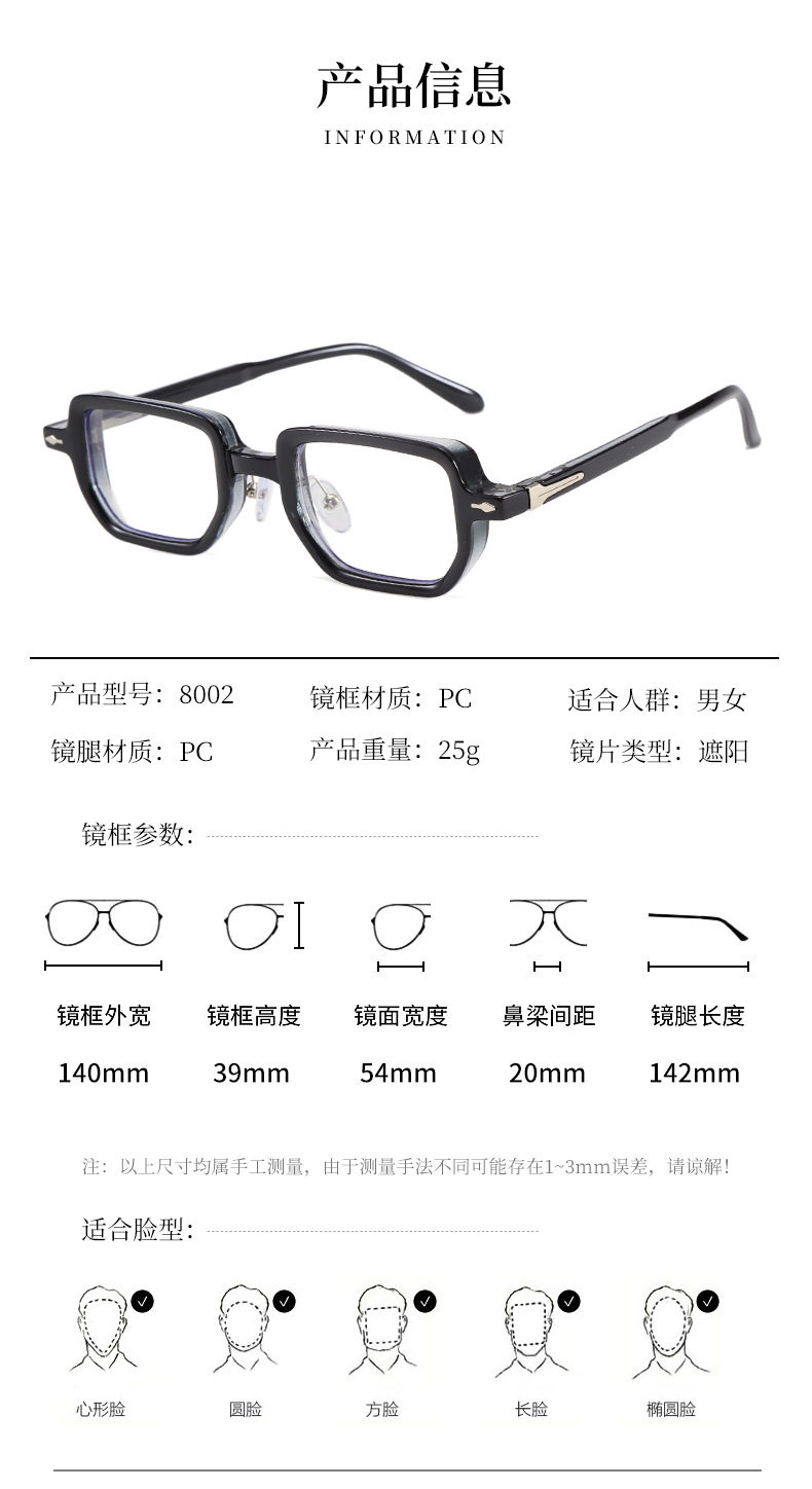 2025 New Fashion Retro Square Frame Anti-Blue Light Sunglasses for Men and Women, Glasses Frames Can Be Matched with Myopia Glasses Frames Wholesale