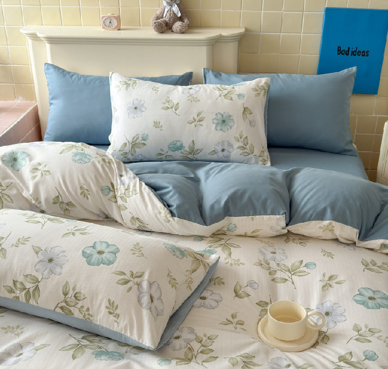 Cross-Border Customized Double-Layer Yarn Four-Piece Jacquard Xiaozhu Cotton Three-Piece Student Dormitory Fresh Floral Bedding