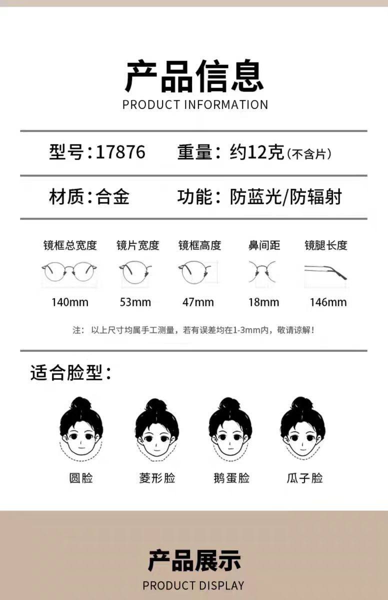 | Frame color | Golden milky white,Frosted milk tea,Silver frame black legs,Premium black silver,Premium black gold,Textured pure black frame |
