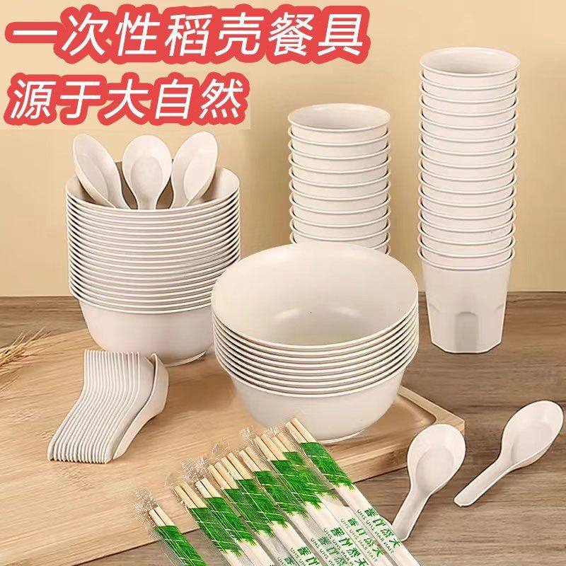Rice Husk Tableware Disposable Tableware Food-Grade Household Rice Bowl Thickeneded High Temperature Resistant Dinner Plate Set Outdoor